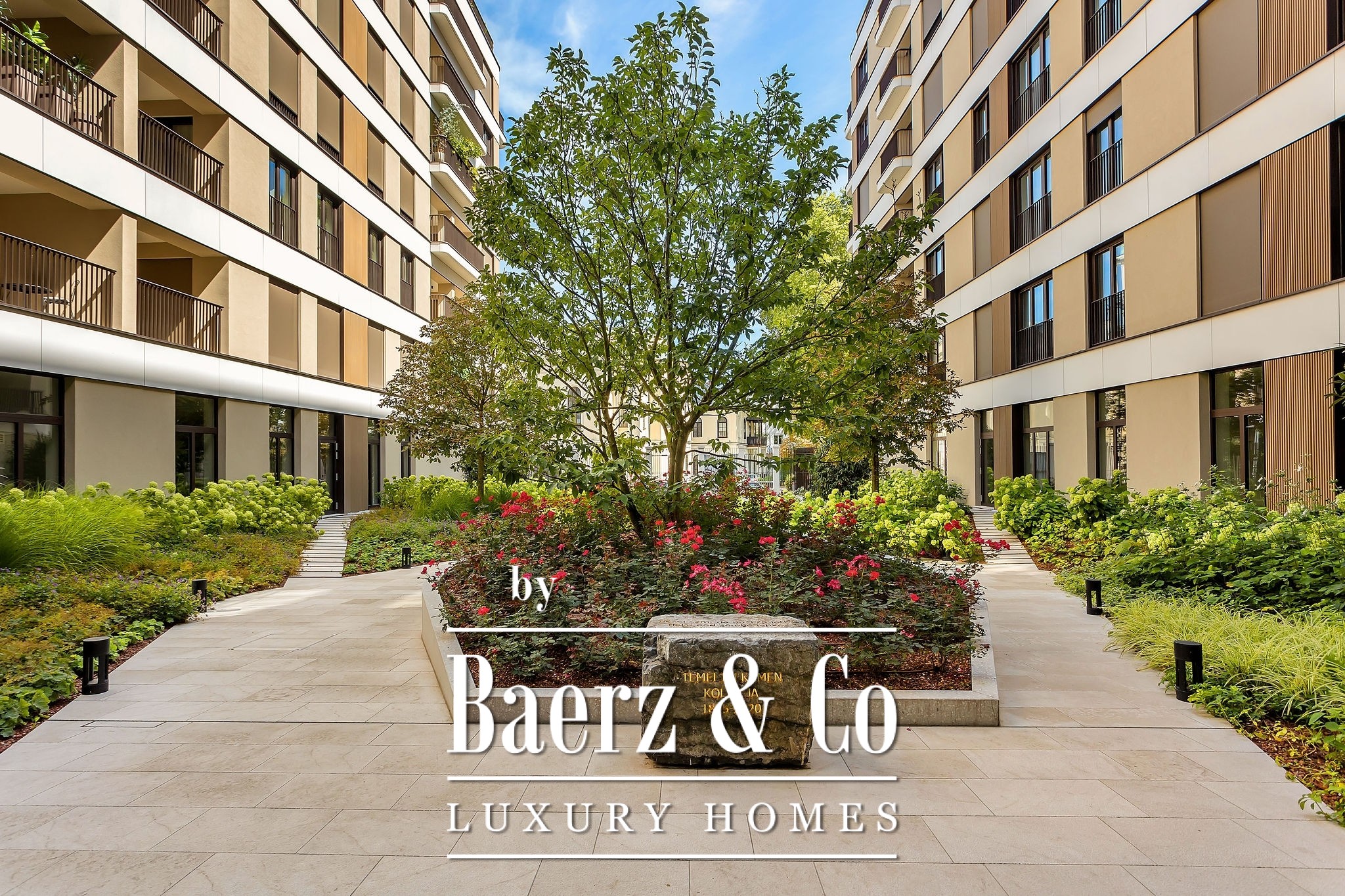The apartment features elevated ceilings and floor-to-ceiling windows up to 230 cm. It is partially furnished with high-end furniture and Bosch appliances. Bathrooms and sanitary areas are equipped with premium fixtures and ready for immediate move-in.