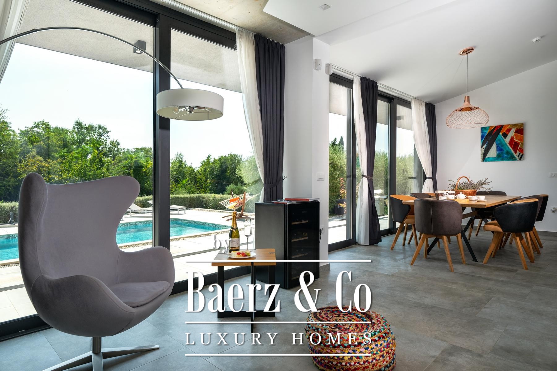 Villa Marčana in Istria presents an ultra-modern sanctuary between Labin and Pula, uniting architectural clarity with the tempo of Croatian coastal life. This villa, with a living area of 350 m², is set within a discreet village location, commanding a 4009 m² plot where privacy flourishes among 60 olive trees.