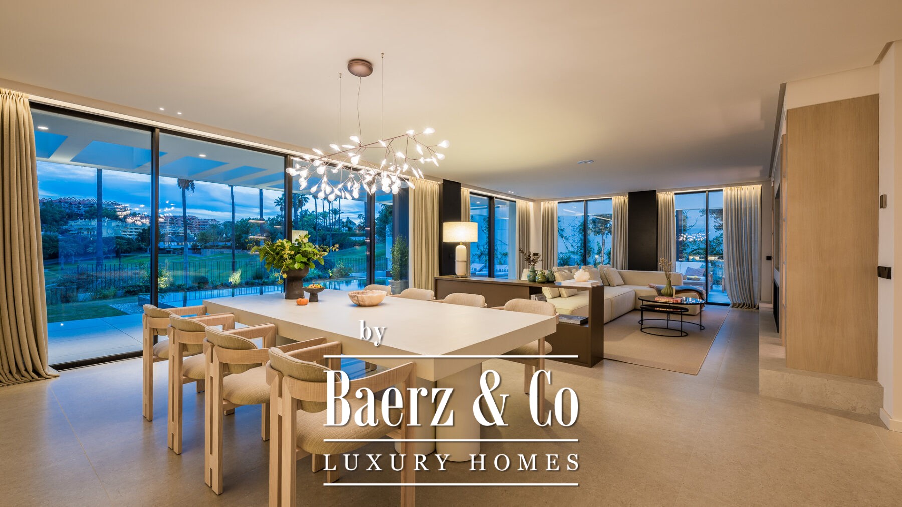 Villa Marbella front line golf presents an architectural experience where privacy and panoramic golf views converge. This 373 m² villa offers a seamless transition from the sophisticated, open-plan kitchen and living area to the broad terrace, framing the fairways of Los Naranjos beyond floor-to-ceiling glass. Each of the four en-suite bedrooms leads privately to its own terrace, with the master suite extending nearly 40 m², including a walk-in closet and a designer bathroom that lends the atmosphere of a boutique retreat.