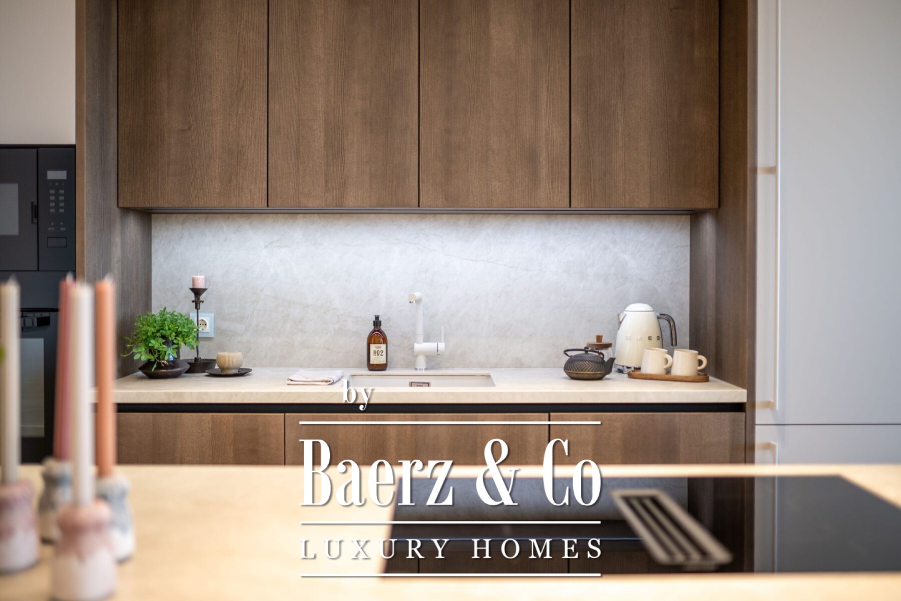 Inside, 124 m² of living space unfolds with clarity and intent. A seamless open-plan layout leads to a modern kitchen where premium appliances and generous work surfaces shape both daily ritual and celebratory moments. Three bedrooms provide distinct zones of privacy, the master suite elevated as a sanctuary with commanding views and an exceptional master bathroom. Two refined bathrooms offer functionality and serenity in equal measure.