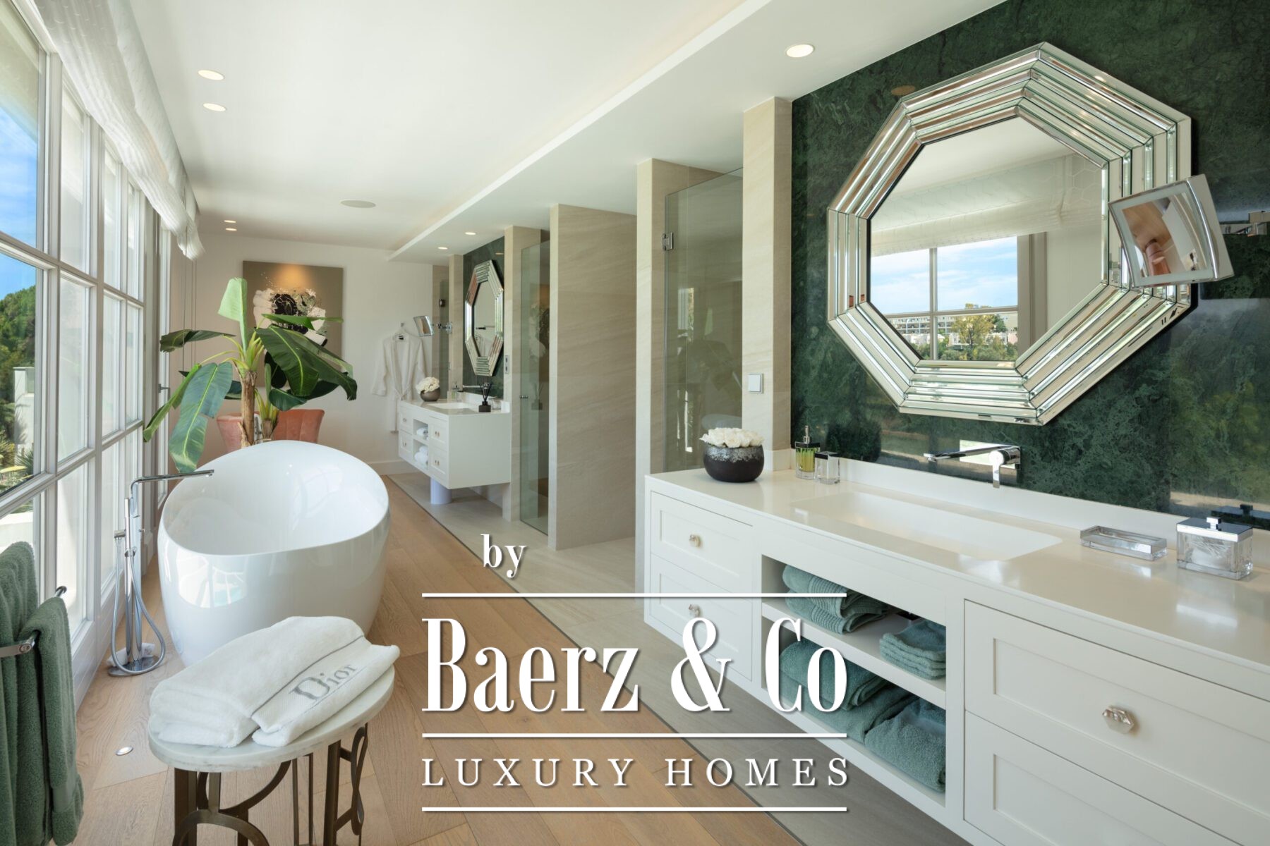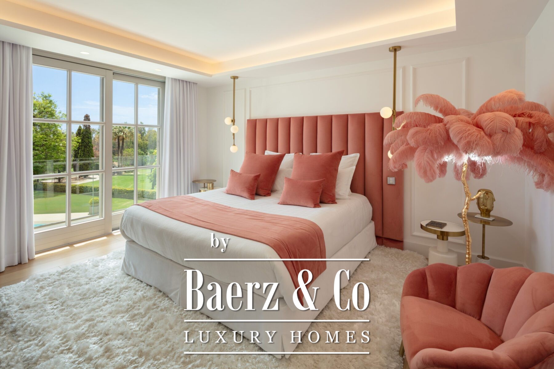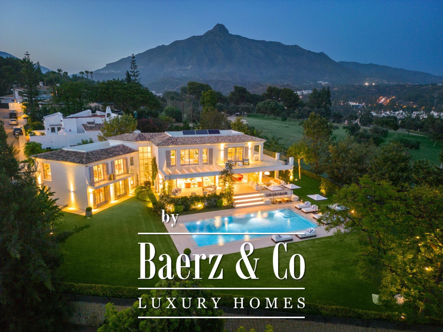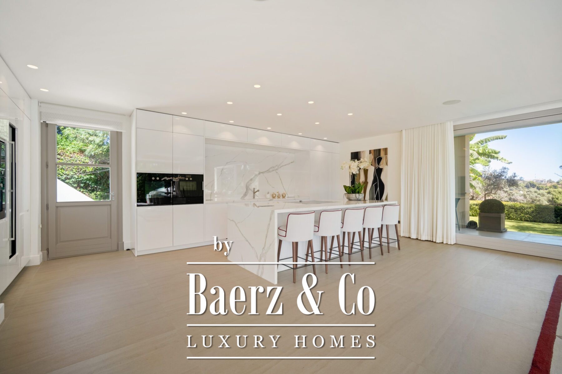 A private oasis nestled in the luxurious area of Marbella's Golf Valley. This magnificent mansion sits in a prestigious gated community and boasts an enviable front-line position overlooking Aloha Golf Course. Its timeless exterior and top-of-the-line interior finishes strike the perfect balance between classic elegance and modern sophistication. The property strikes a perfect balance between classic elegance and modern sophistication, featuring a timeless exterior and top-of-the-line interior finishes. The colour pallet used to decorate the interior is soft and inviting, exuding a calming atmosphere that one expects when coming back home.