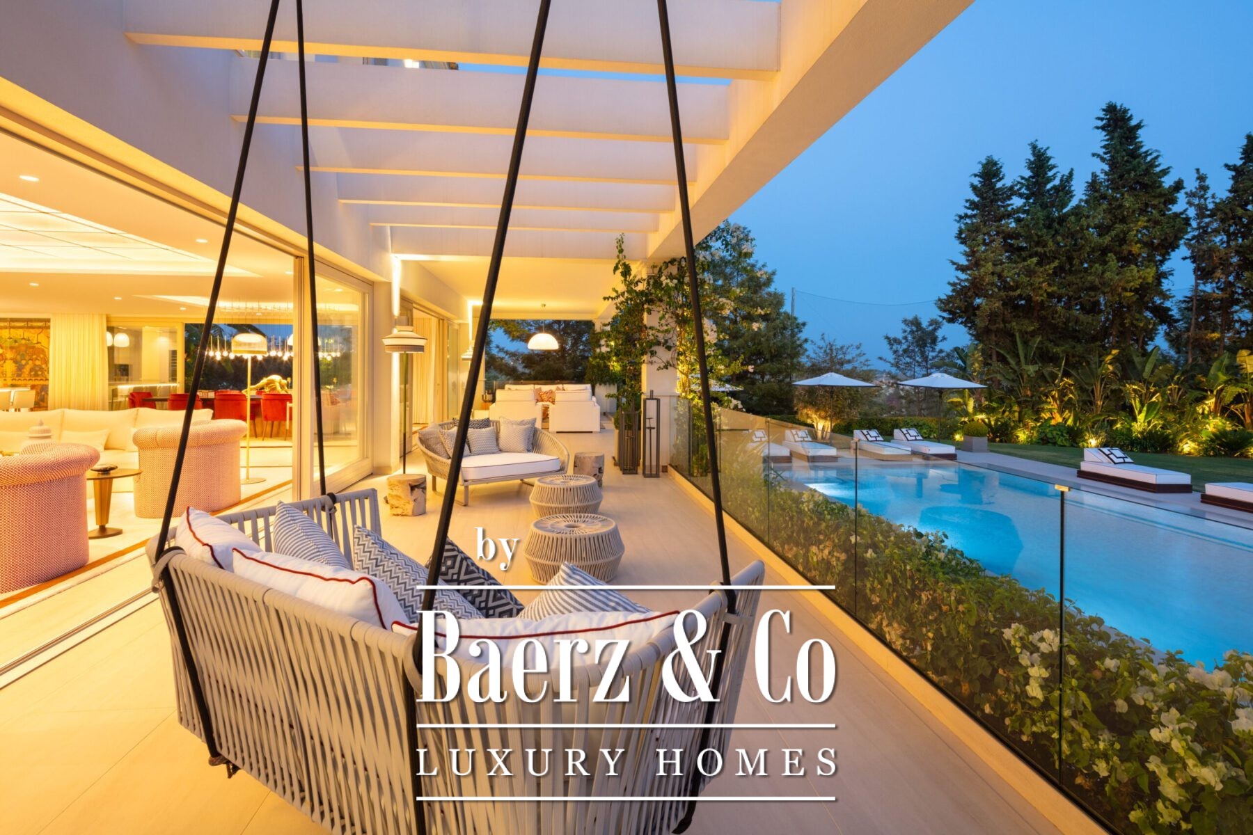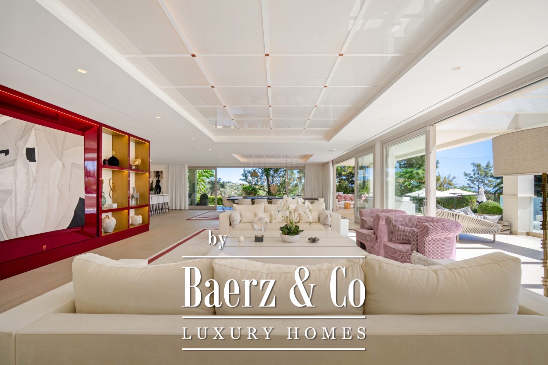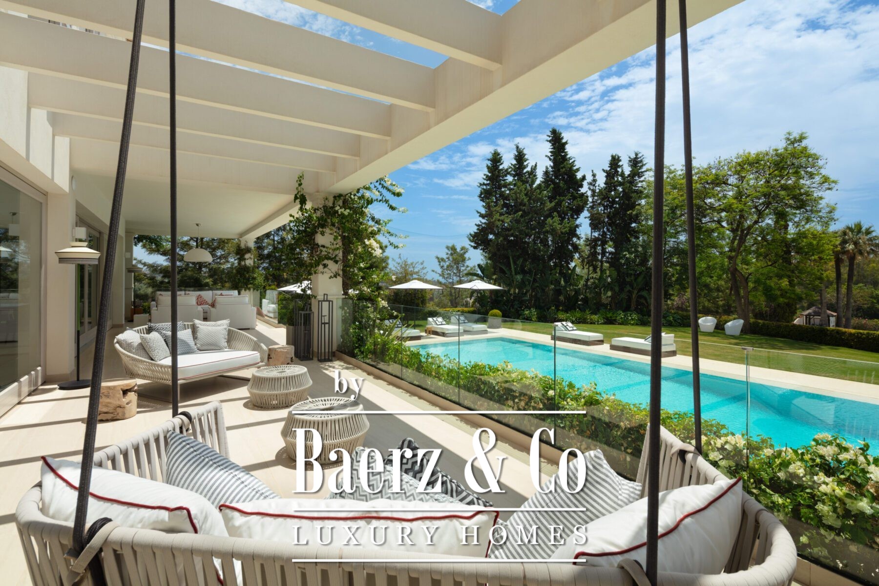 The property comprises a main residence with 5 generously sized bedrooms, including a luxurious master suite with a dressing room. The bedrooms exude individuality with their distinct touches, yet their cohesiveness is a testament to the clever design decisions. There is a separate 1-bedroom guest house, perfect for accommodating staff or visitors. The allure of this property lies in its enchanting outdoor areas, where a lush green garden and spacious terraces offer the ideal setting for enjoying Marbella's perfect climate throughout the year. The verdant surroundings of the main house are adorned with greenery, which seamlessly blends with the other green areas of the property. This unique mansion boasts spectacular views and luxurious amenities, making it an unparalleled gem in the highly sought-after area of Marbella.