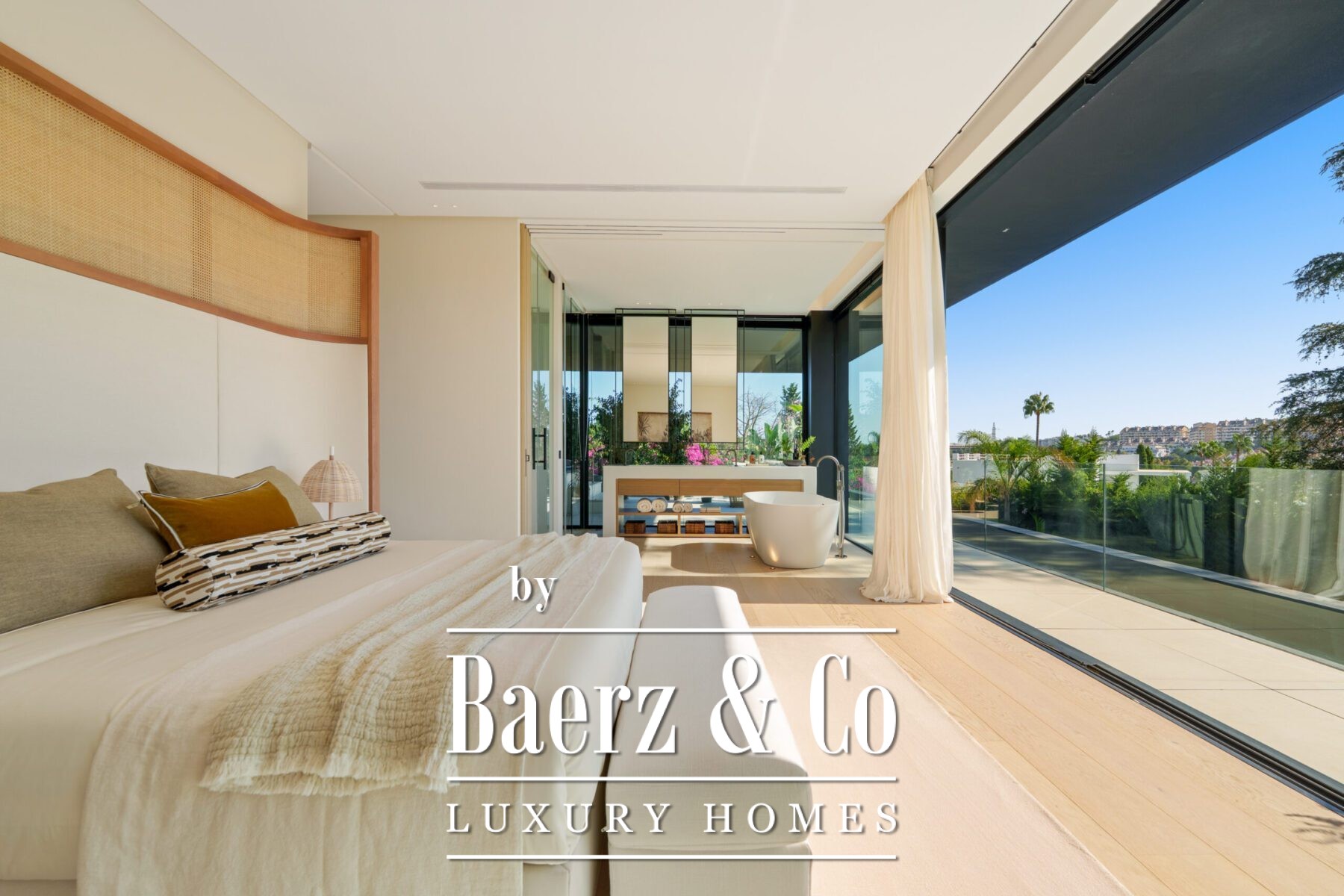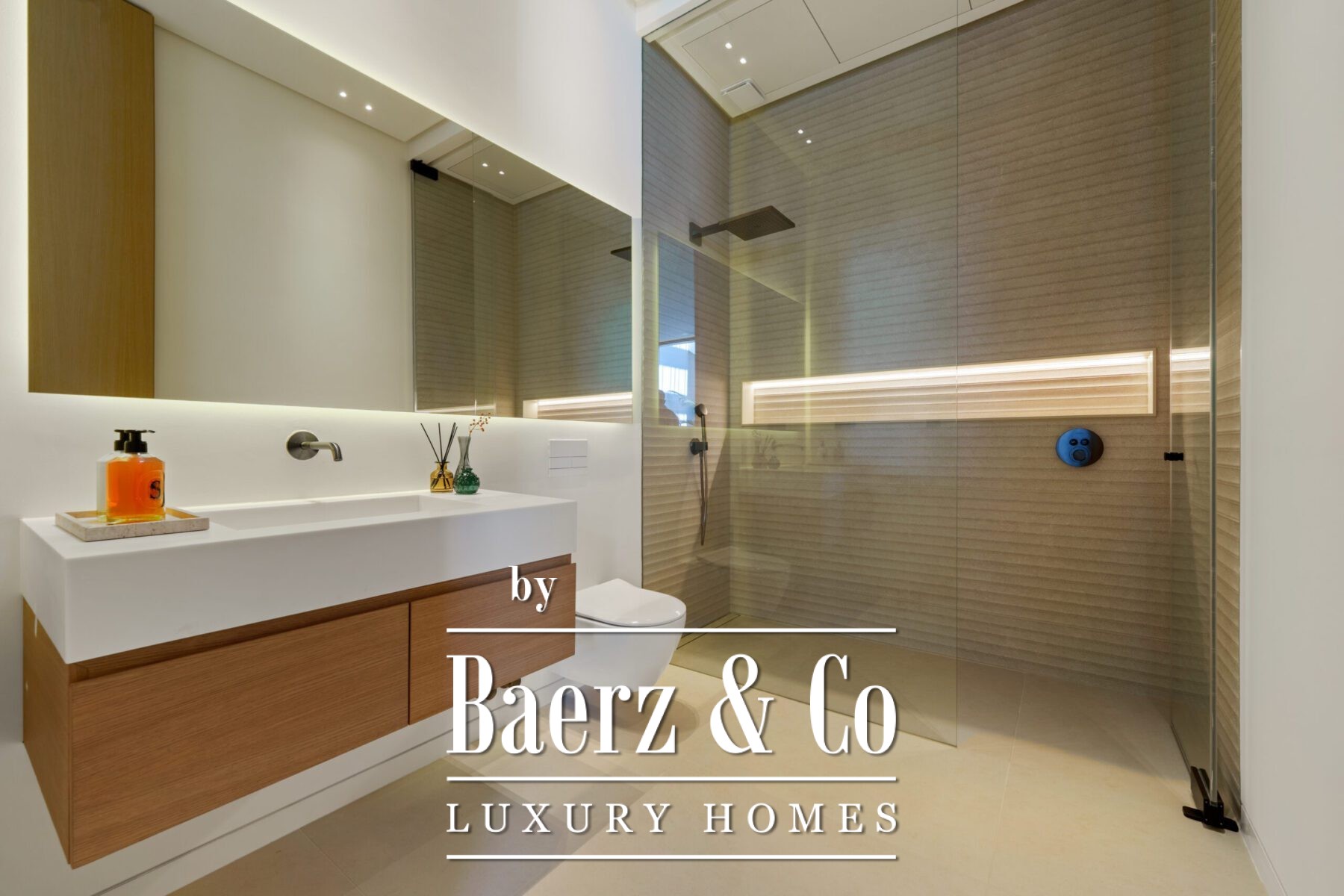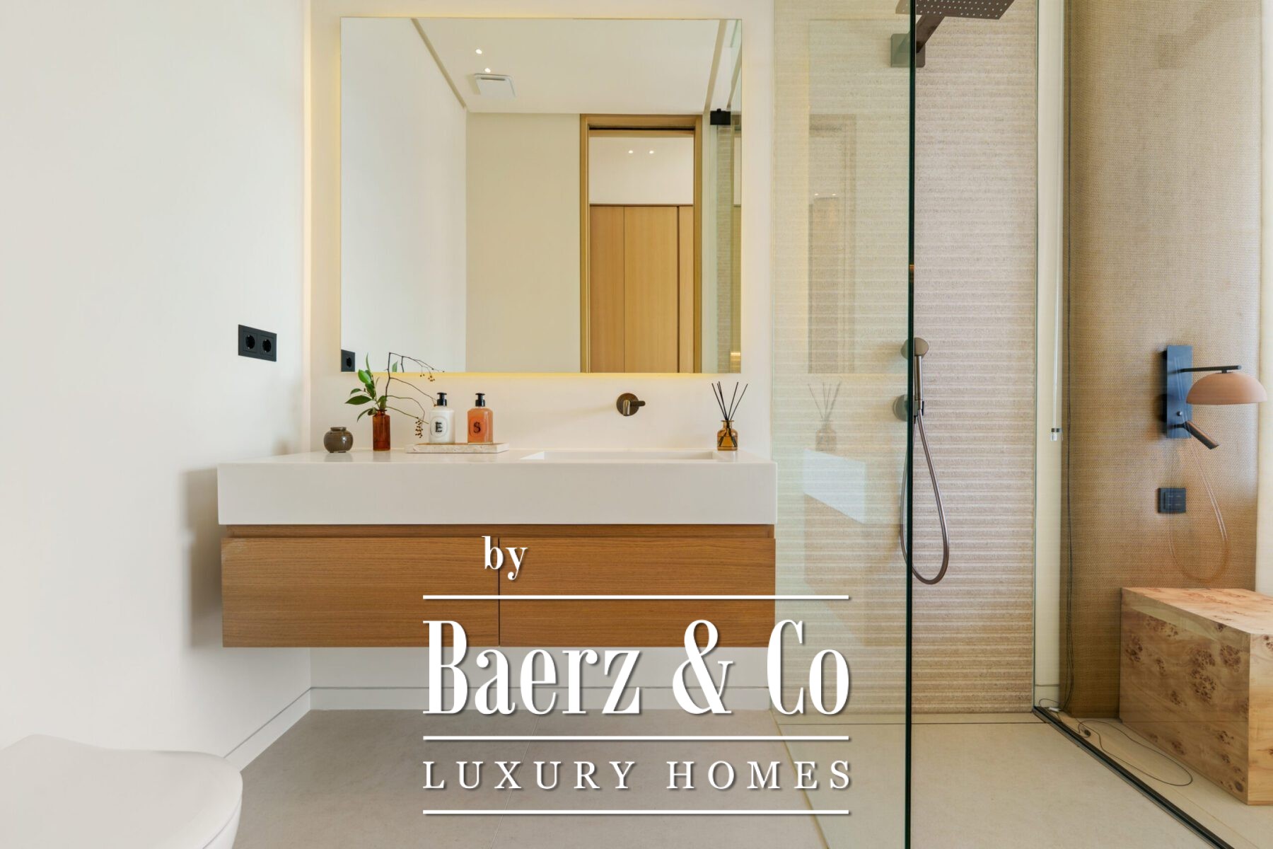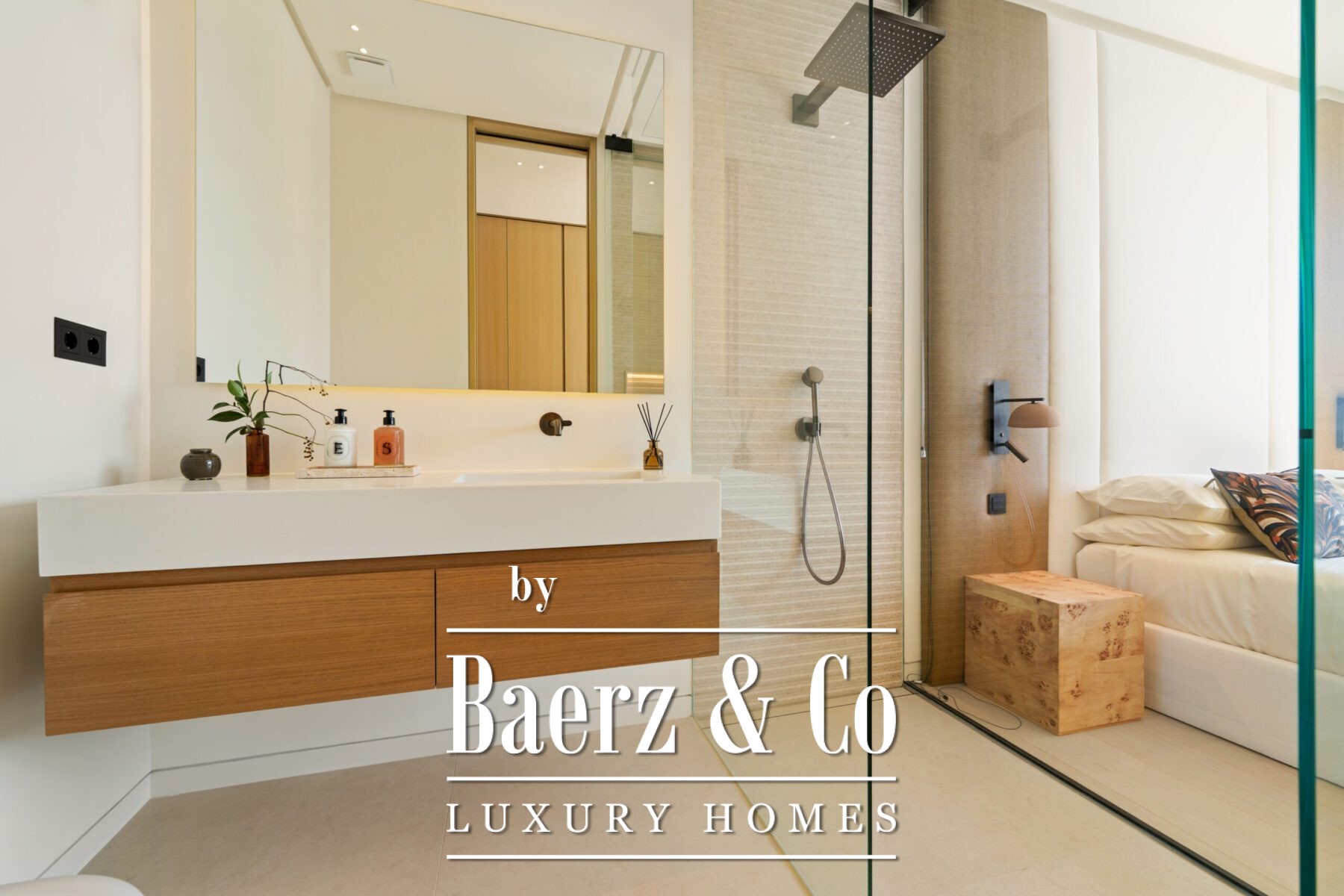 Upstairs, you’ll find three elegant en-suite bedrooms. The master suite is a private retreat, complete with a walk-in closet, luxurious bathroom, and a private terrace with its own jacuzzi.