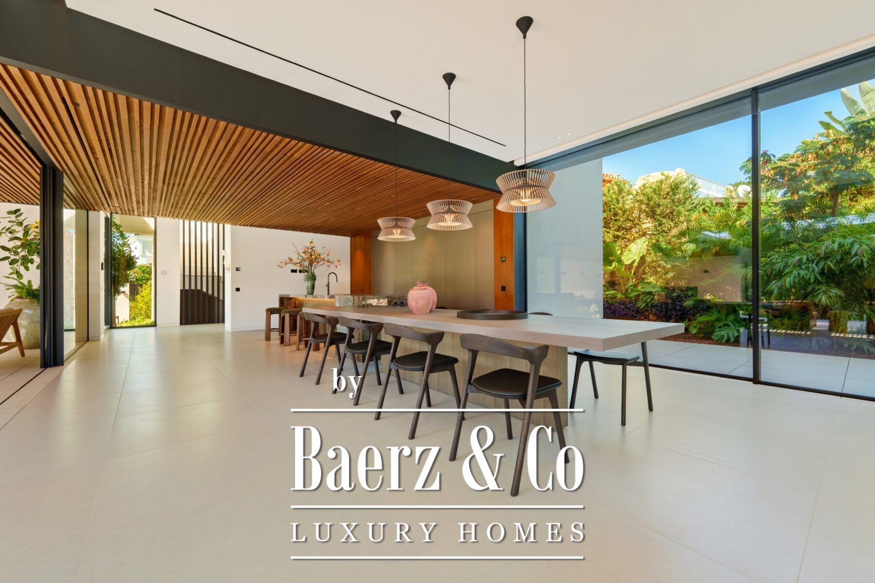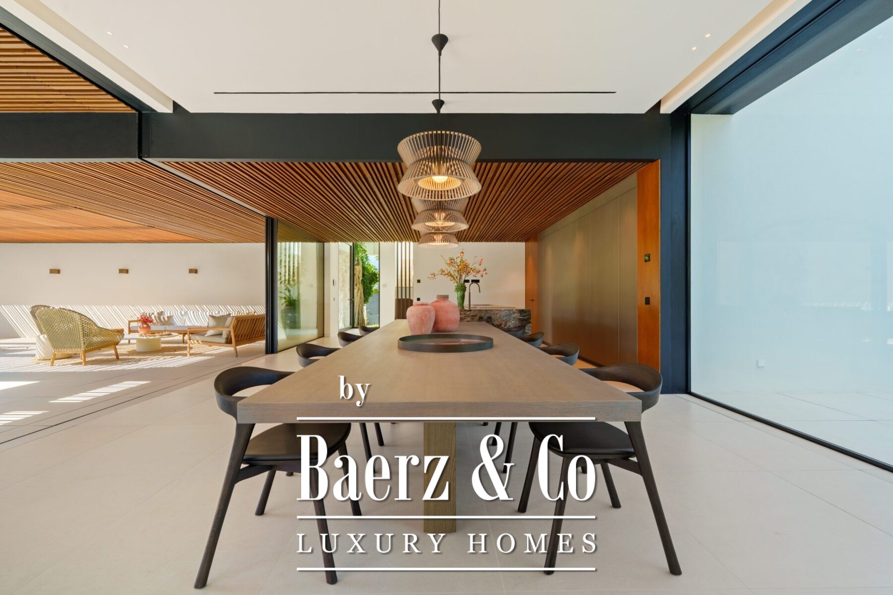 From the moment you step inside, you are welcomed by a sense of harmony and sophistication. The open-plan layout seamlessly integrates the kitchen, dining, and lounge areas, with expansive sliding glass doors that disappear into the walls to create a fluid transition between indoor and outdoor living. This level also features a stylish en-suite bedroom for guests.