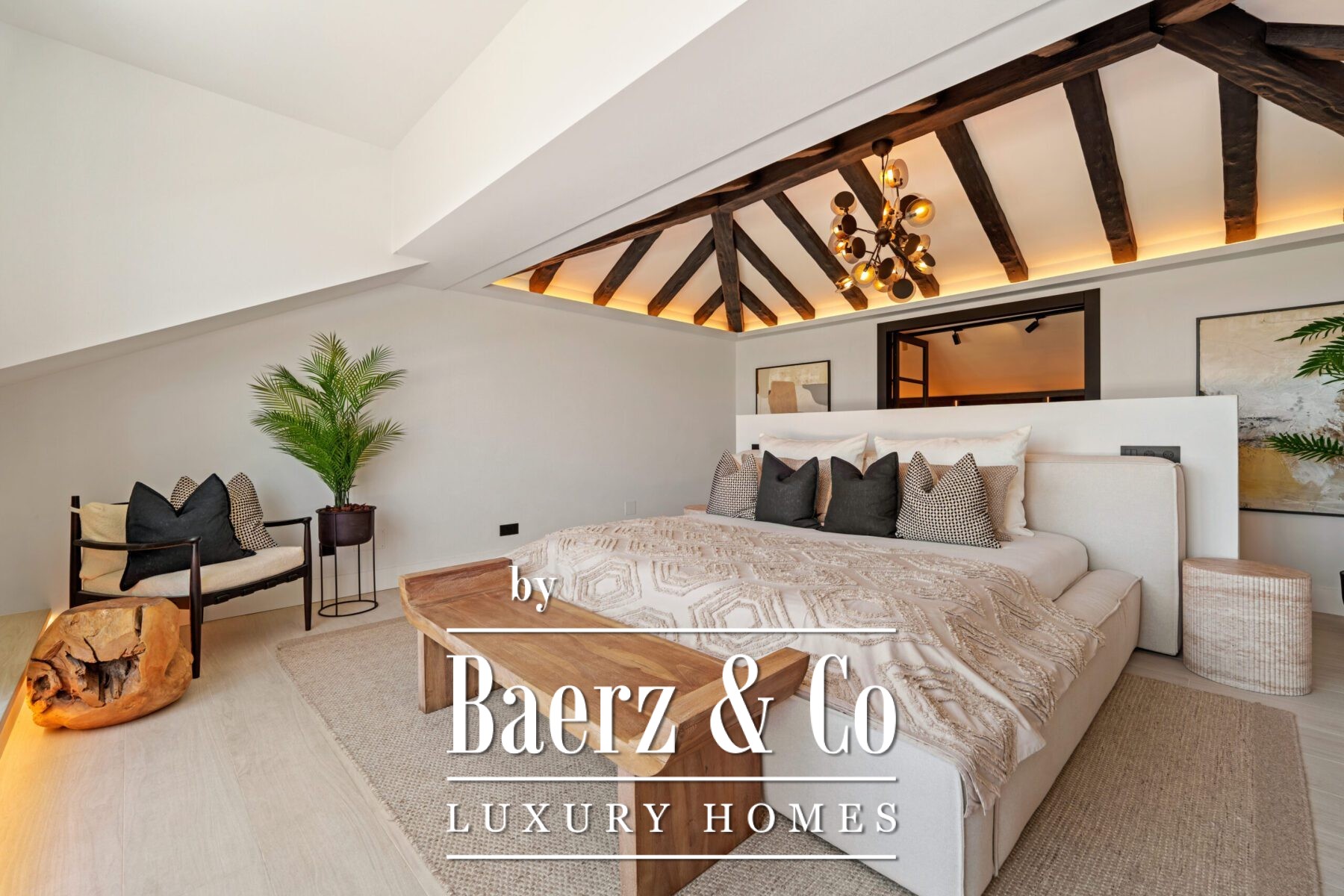 The property offers six luxurious bedrooms and seven impeccably designed bathrooms, each crafted with the highest-quality materials and finishes. Expansive open-plan living areas flow effortlessly onto sun-drenched terraces, creating a seamless connection between indoors and out. A state-of-the-art gourmet kitchen, flooded with natural light, serves as the perfect hub for both intimate family meals and grand entertaining.