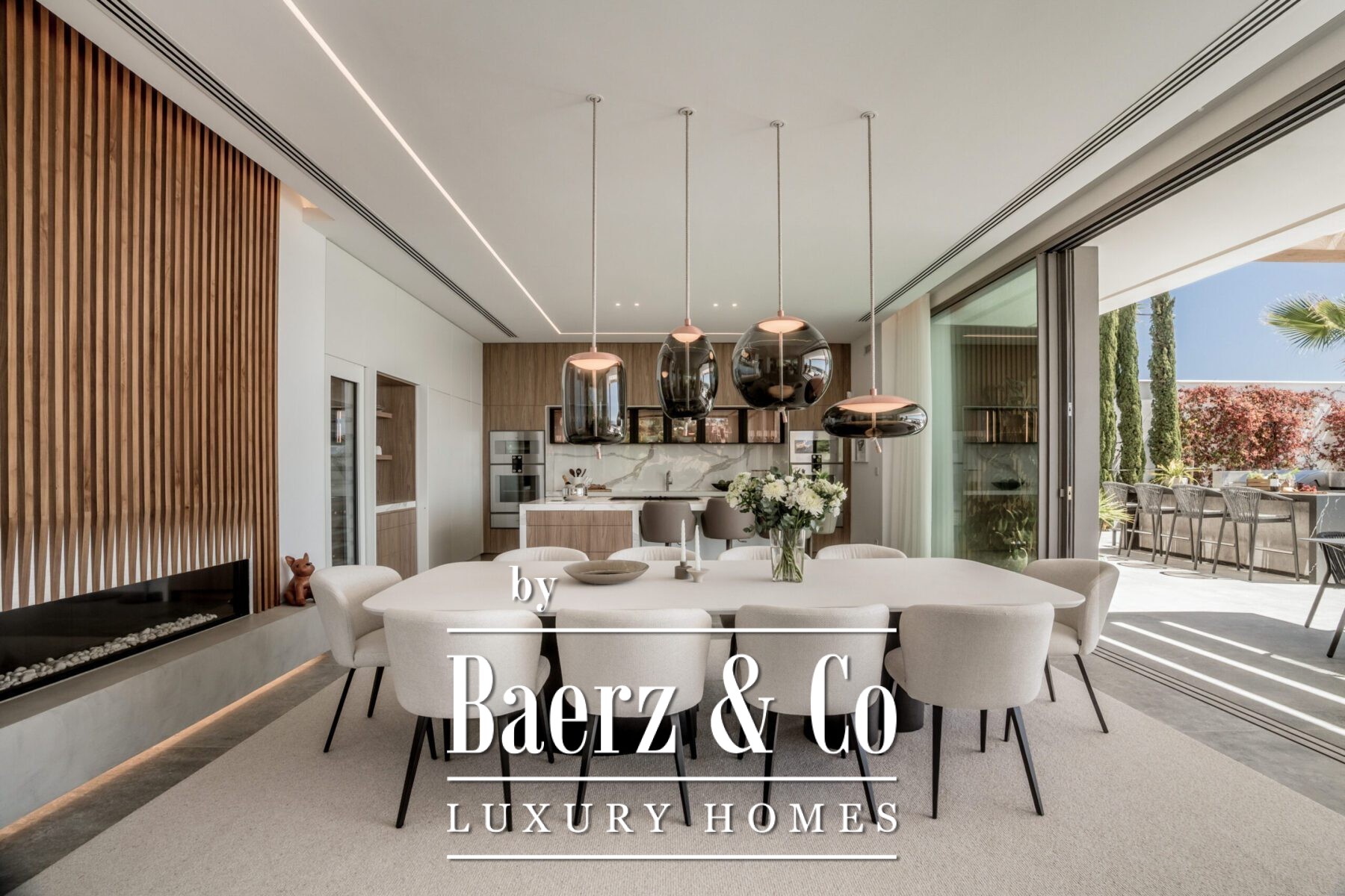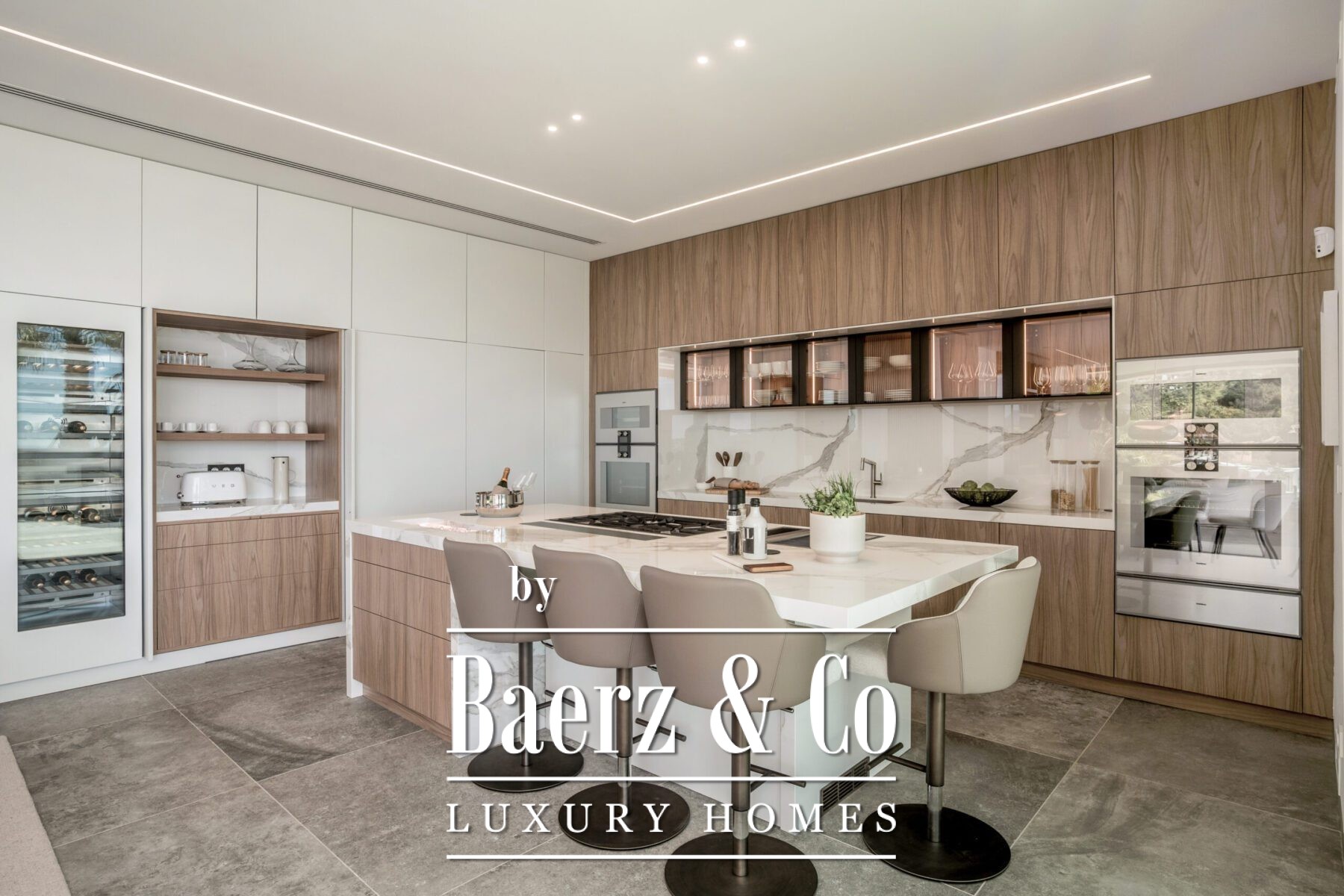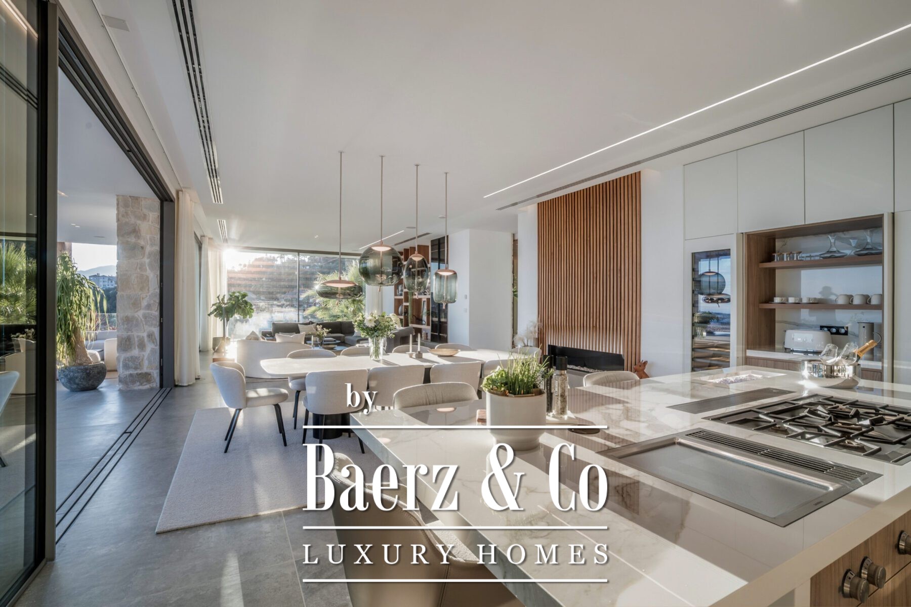 Crafted for contemporary demands, the kitchen features Gaggenau appliances and cabinetry by Danespan, while an adjacent home office ensures space for quiet productivity. The villa is situated within a gated community and benefits from 24-hour security, an alarm, and proximity to golf courses, amenities, and the coast. Every detail conveys understated opulence and an effortless connection to Marbella’s coastal setting.