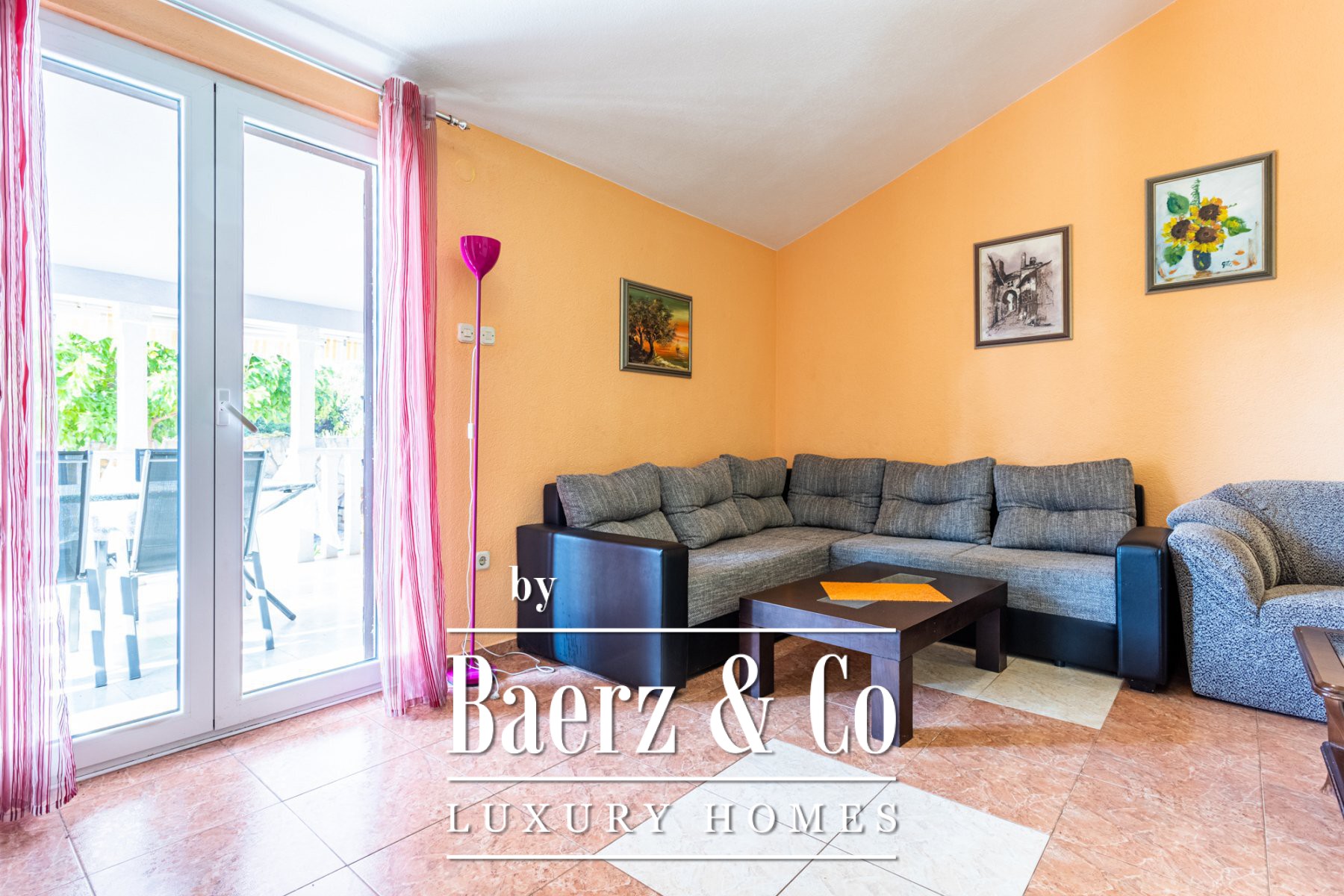 Built in 2005 with modern materials and first-rate insulation, the residence provides a calm, sunlit environment in a traditional Dalmatian architectural style. The ground floor of 190 m² is anchored by a three-bedroom apartment with expansive living and dining spaces, opening to terraces ideal for relaxation or gatherings. The first and second floors feature a selection of one and two bedroom apartments, each with direct access to wide balconies offering sea views. The adjacent duplex house extends the potential for privacy, with its own covered terrace, large living area, bedrooms upstairs, and private amenities.