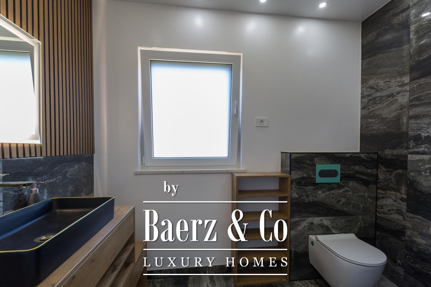 throughout the staircase. This floor houses three elegant and spacious bedrooms, each meticulously furnished with an emphasis on comfort and privacy. Each bedroom features its own modern en-suite bathroom, equipped with premium sanitary ware and designer details, ensuring complete comfort for every resident or guest. The master bedroom particularly stands out, offering generous space, providing a private sanctuary for rest and relaxation. All three bedrooms have direct access to a large covered terrace, offering views of the surroundings and ideal for morning coffee or evening relaxation in the fresh air.This exceptional property is equipped with the latest 'smart home' system, allowing you full control over lighting, temperature, security, and other villa functions via smartphone or tablet, achieving an unprecedented level of comfort and energy efficiency. The fireplace in the living room provides additional warmth and ambiance during cooler months, while a dedicated storage room within the villa offers a practical solution for belongings. The villa comes fully furnished and ready for immediate occupancy, with carefully chosen furniture and decorations that reflect a modern yet warm style.The villa's entrance courtyard is cleverly designed with ample space for parking three vehicles, discreetly located in a lower terrain section, thus not disturbing the aesthetic harmony of the entire property. This is an ideal property for anyone seeking a luxurious family home, a peaceful holiday retreat, or an exceptional investment opportunity for tourism purposes. Medulin, with its rich amenities, beautiful beaches, and proximity to Pula and the Brijuni National Park, offers inexhaustible possibilities for enjoying nature, culture, and active leisure. This villa represents the pinnacle of contemporary living in the heart of Istria, offering privacy, comfort, and incomparable beauty.Do not miss the opportunity to become the owner of this architectural gem in Medulin, where luxury meets nature, and modern design meets the warmth of a home. For more information about this beautiful villa and to arrange a viewing, we are at your disposal.