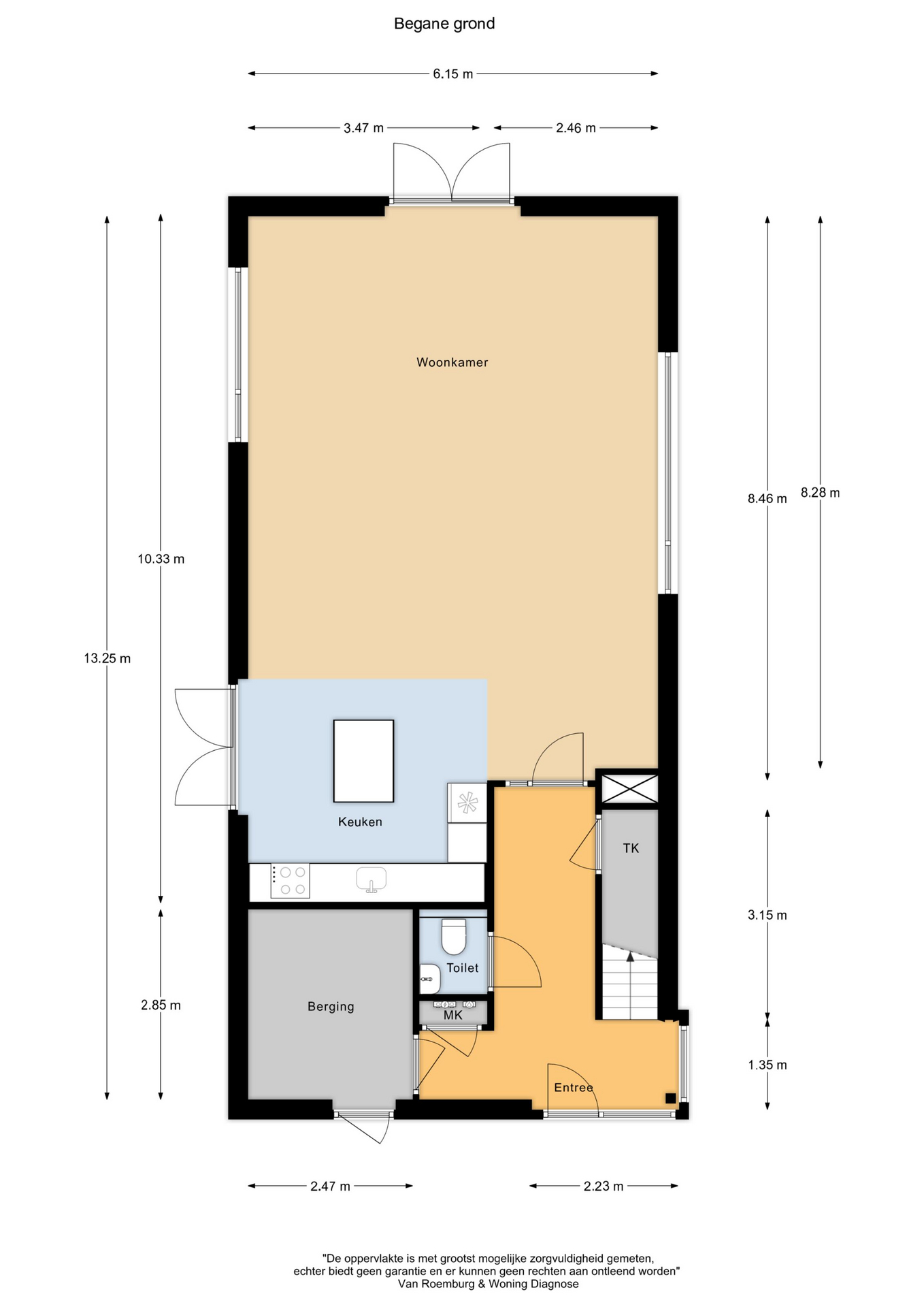 To the left of the entrance is a versatile room currently used as an office, also ideal as a hobby room or indoor storage. This room even has its own entrance from the front. Adjacent is the meter cupboard with fiber-optic connection, followed by a modern guest toilet in grey-white tones with wash basin. A practical storage closet sits under the stairs, with plenty of space for coats and shoes.