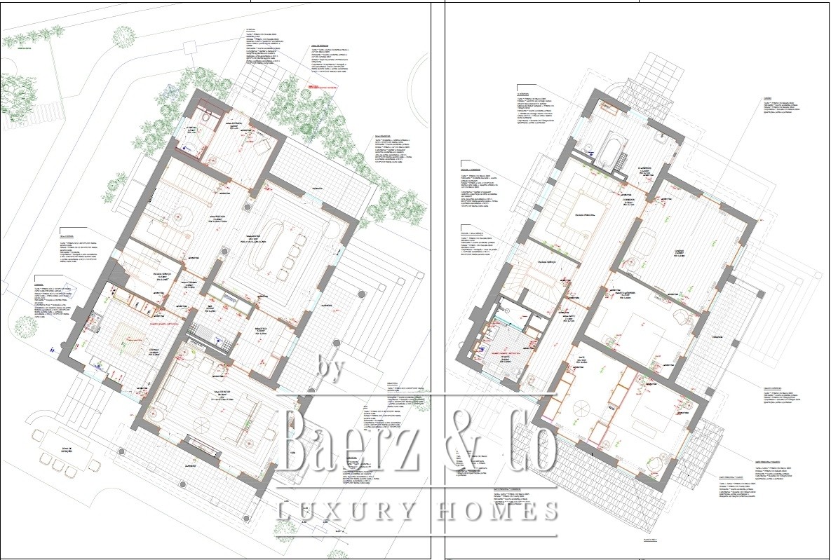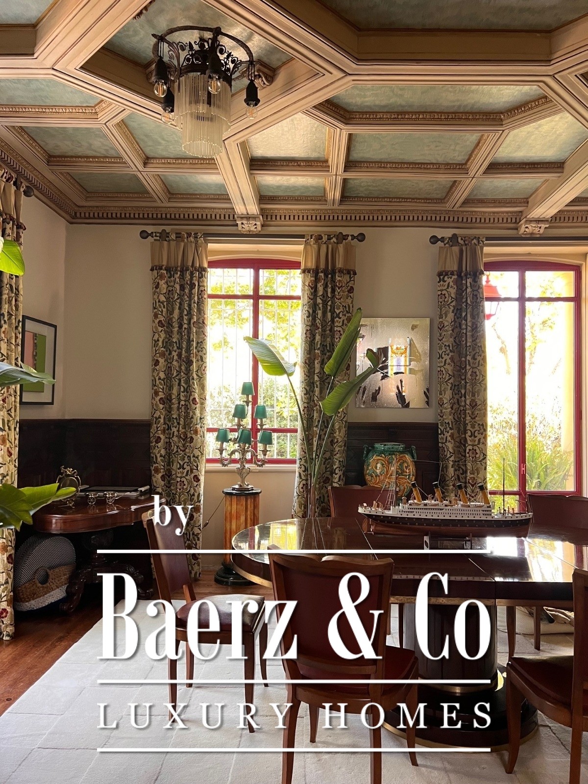 Within 576 m² of refined living space, the main house presents 5 bedrooms and 5 bathrooms. Two suites highlight contemporary luxury, while the interiors exude timeless elegance through crafted ceilings, a striking stained glass staircase, and airy volumes that bring a luminous atmosphere throughout. Fluid transitions connect the living room, dining area, and a modern kitchen with a central island; comforts include underfloor heating and select air conditioning, alongside a fire place for seasonal ambiance.
