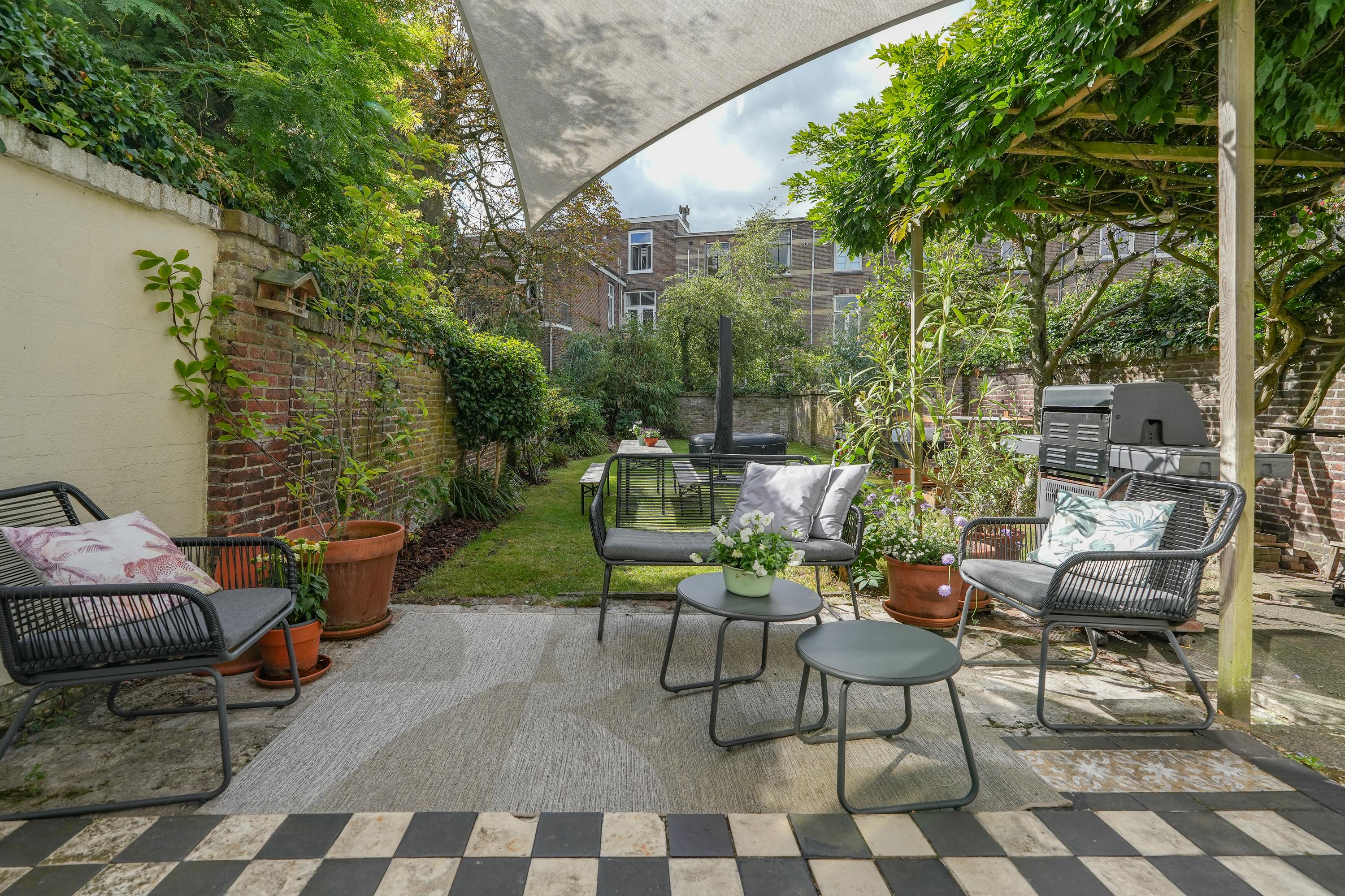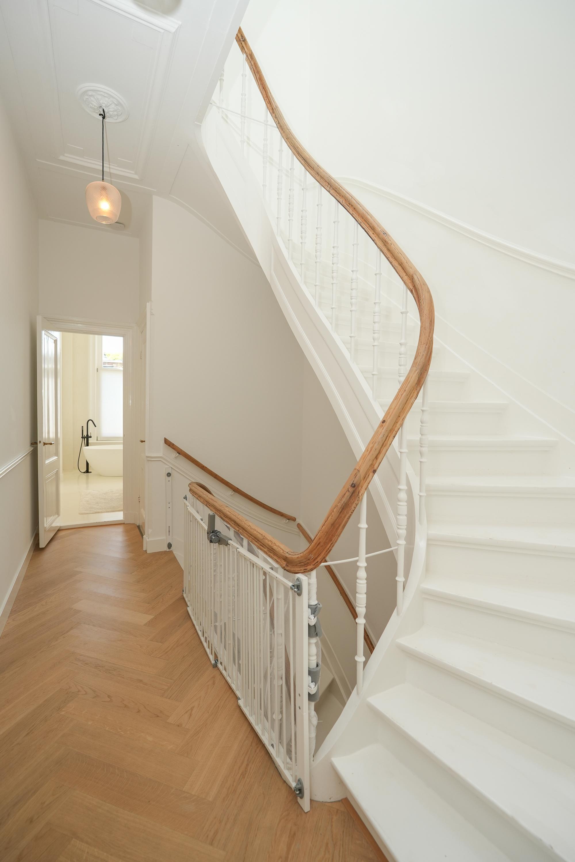 This beautiful and luxurious townhouse is a property that really makes an impression. The property was completely renovated in 2020, preserving and restoring many authentic details such as high ceilings with ornate mouldings, en-suite doors and stained glass. This house exudes atmosphere and elegance, while at the same time offering modern living comfort. With no fewer than five spacious bedrooms, the possibility for a sixth bedroom, two bathrooms, three toilets and a spacious basement, this house offers all the space a family could wish for. The stately double front door, the wide balcony at the front, the deep and quiet south-facing back garden and the excellent state of maintenance give this house an extra sense of grandeur and living pleasure. Thanks to its good insulation, the house has an energy label A and is energy efficient.