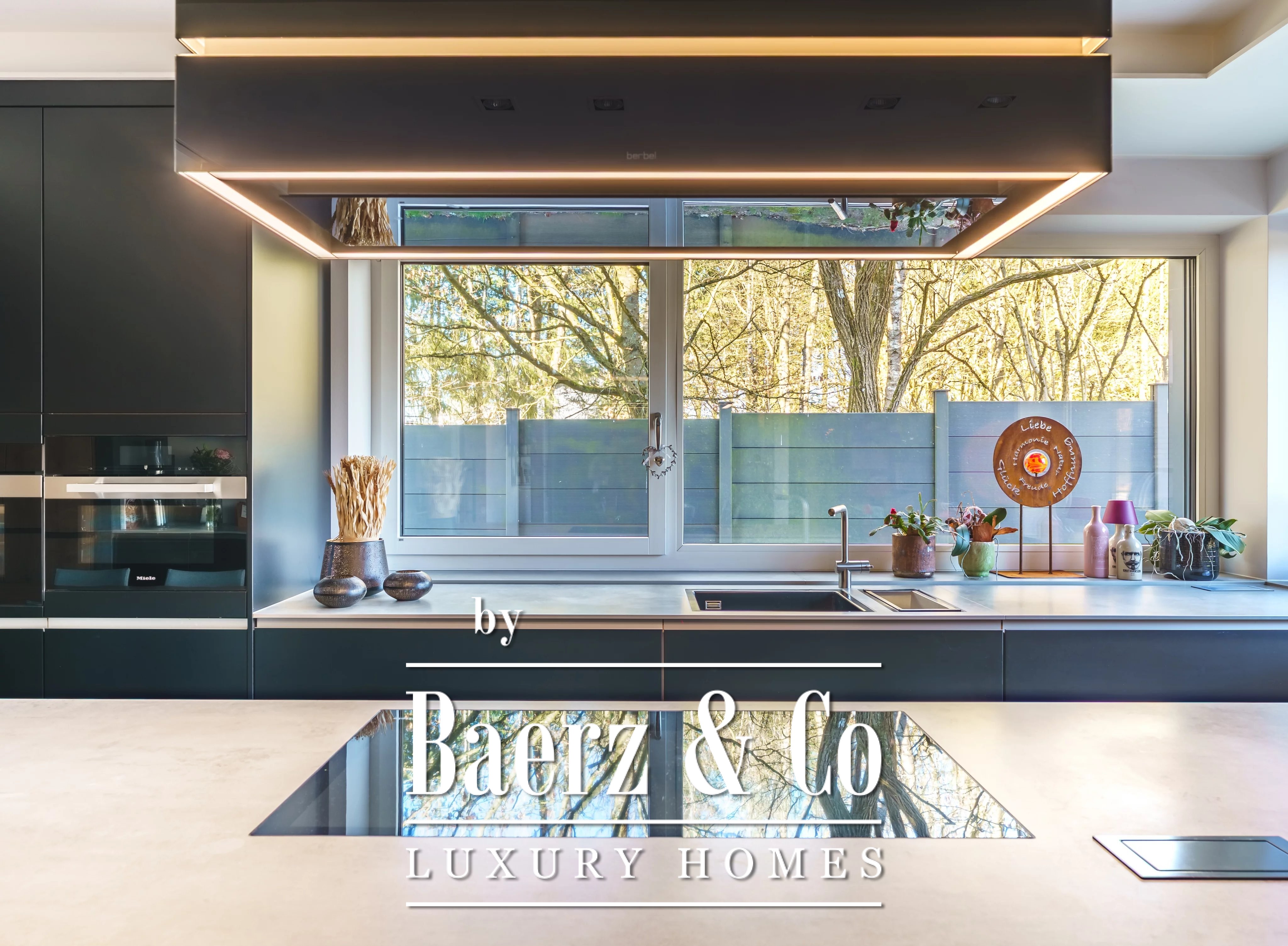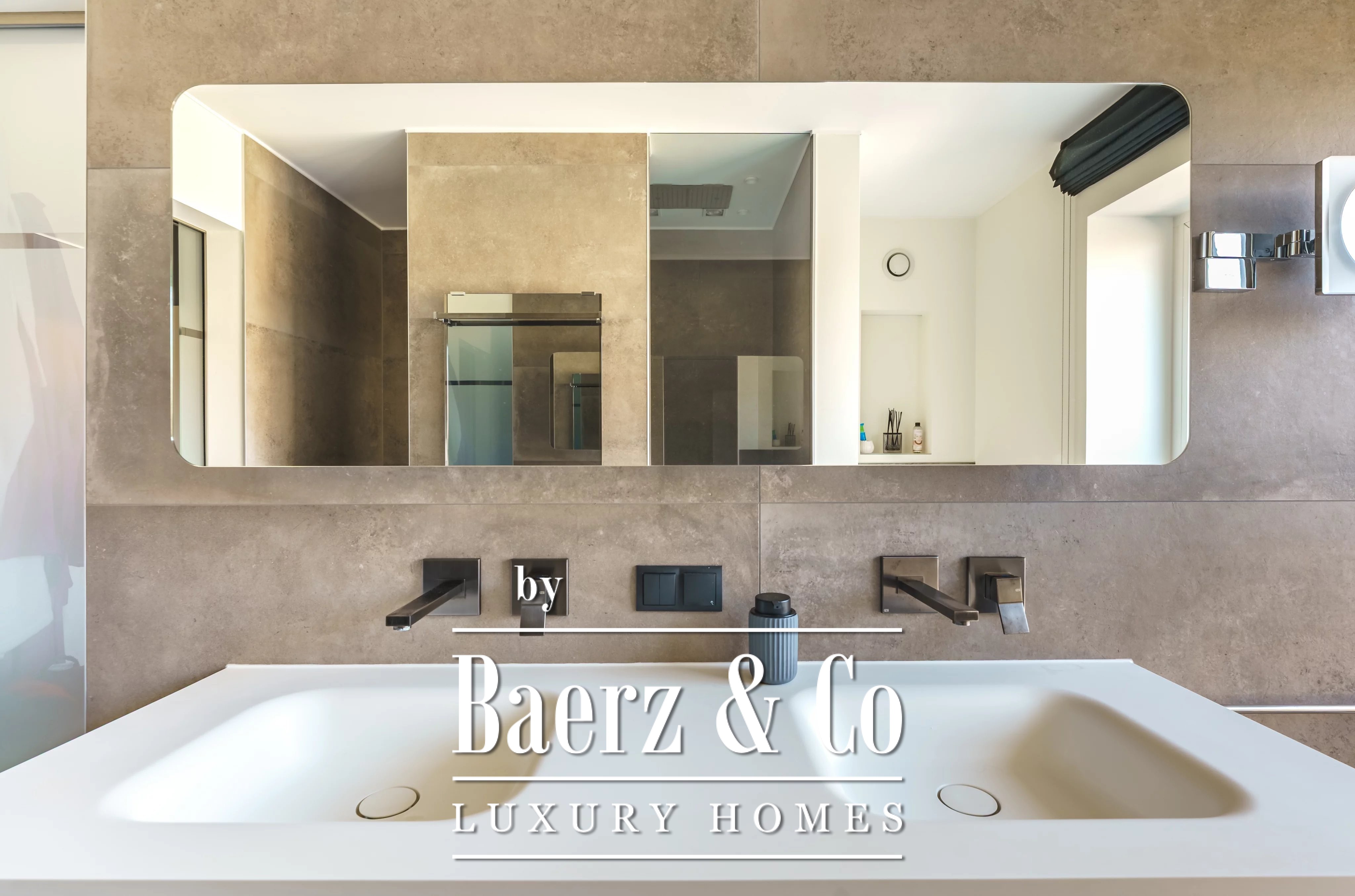 Upstairs, an additional living room creates a private retreat for family gatherings. There are five bedrooms and four bathrooms, including a master suite with a dressing room, private shower room, and a guest bedroom with en-suite. The laundry room is discreet and efficient, supporting daily comfort.