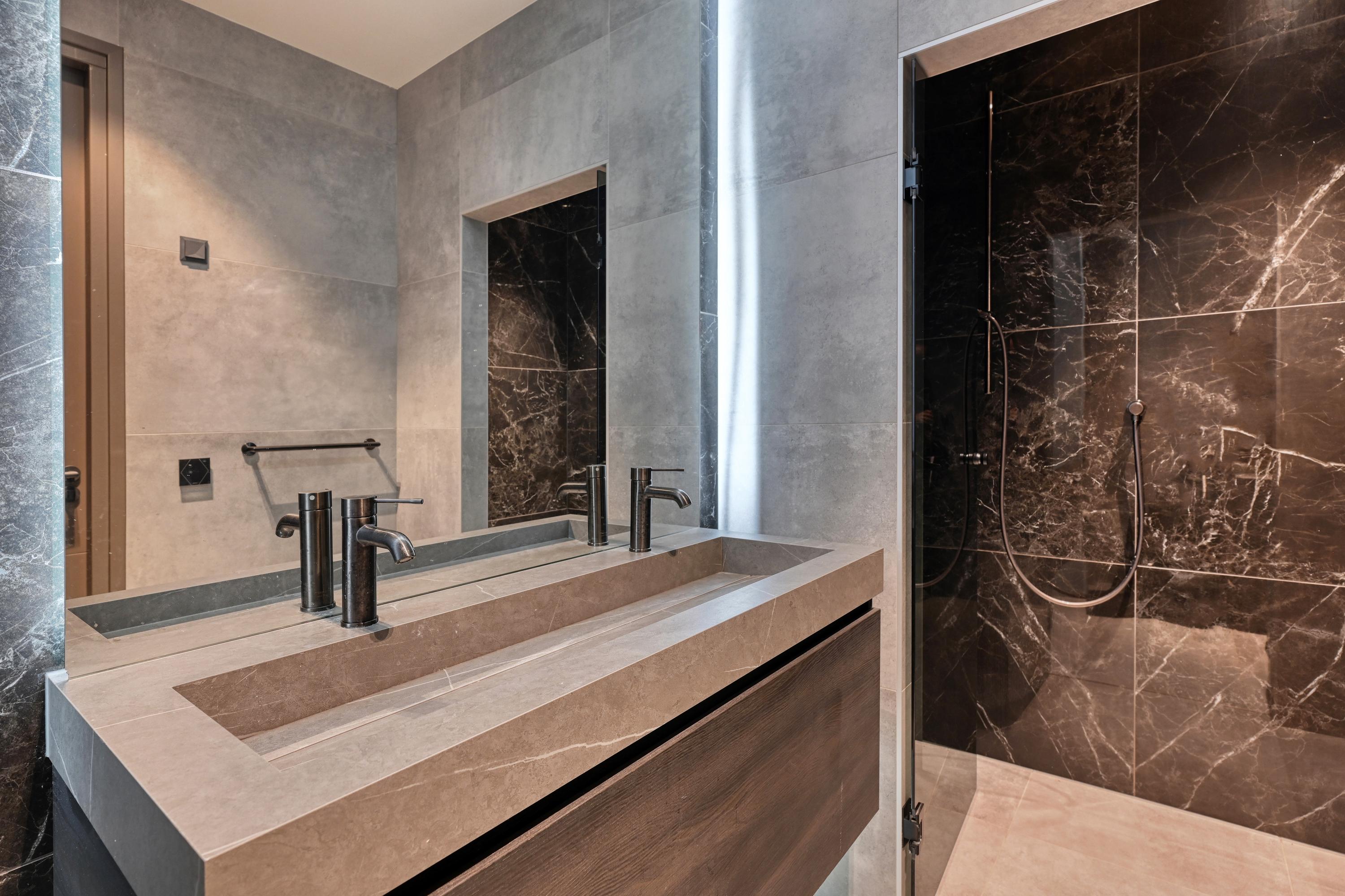 Upon entering, you’ll find a spacious entryway with a loft and a beautiful staircase; it immediately becomes clear that this villa was designed with a sense of space and elegance. Steel doors with smoked glass provide access to the living room.