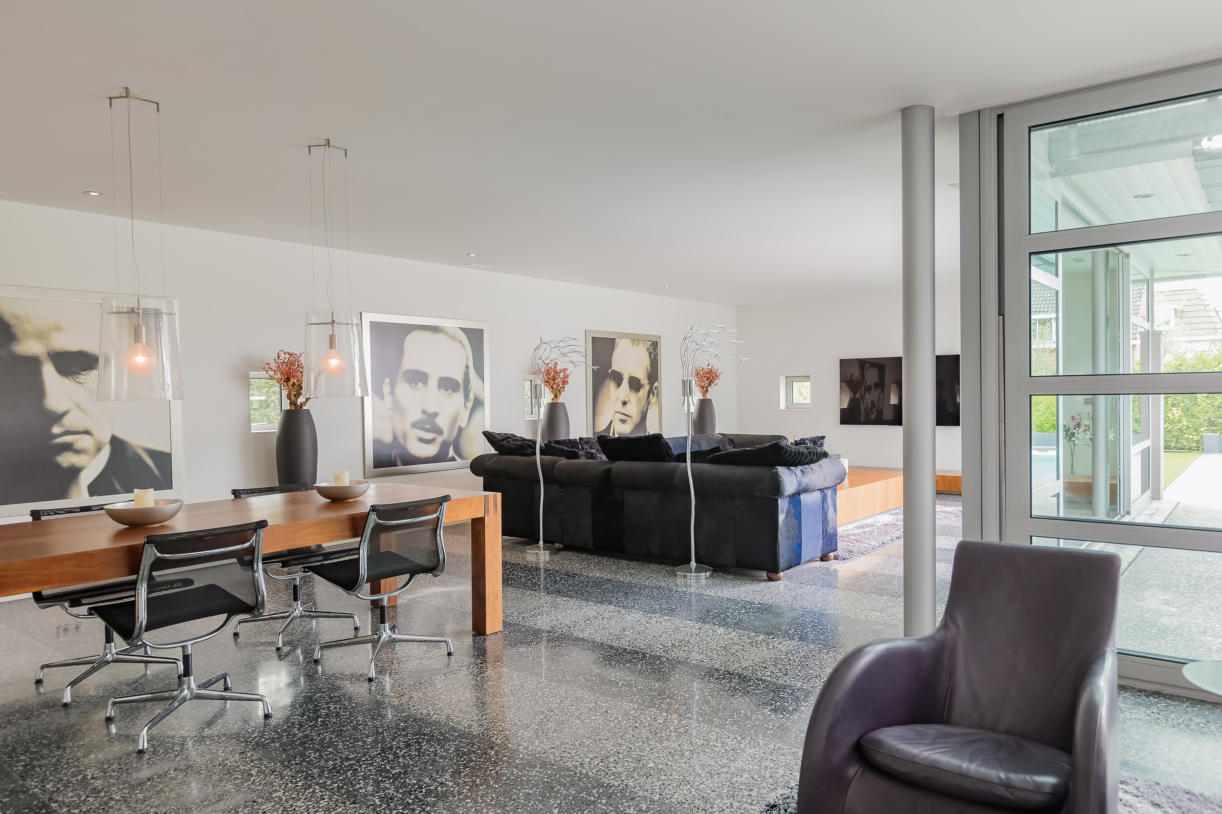 The large living room has a span of up to 18 meters. Enough space for a generous sitting area and a large dining table for cozy dinners.
