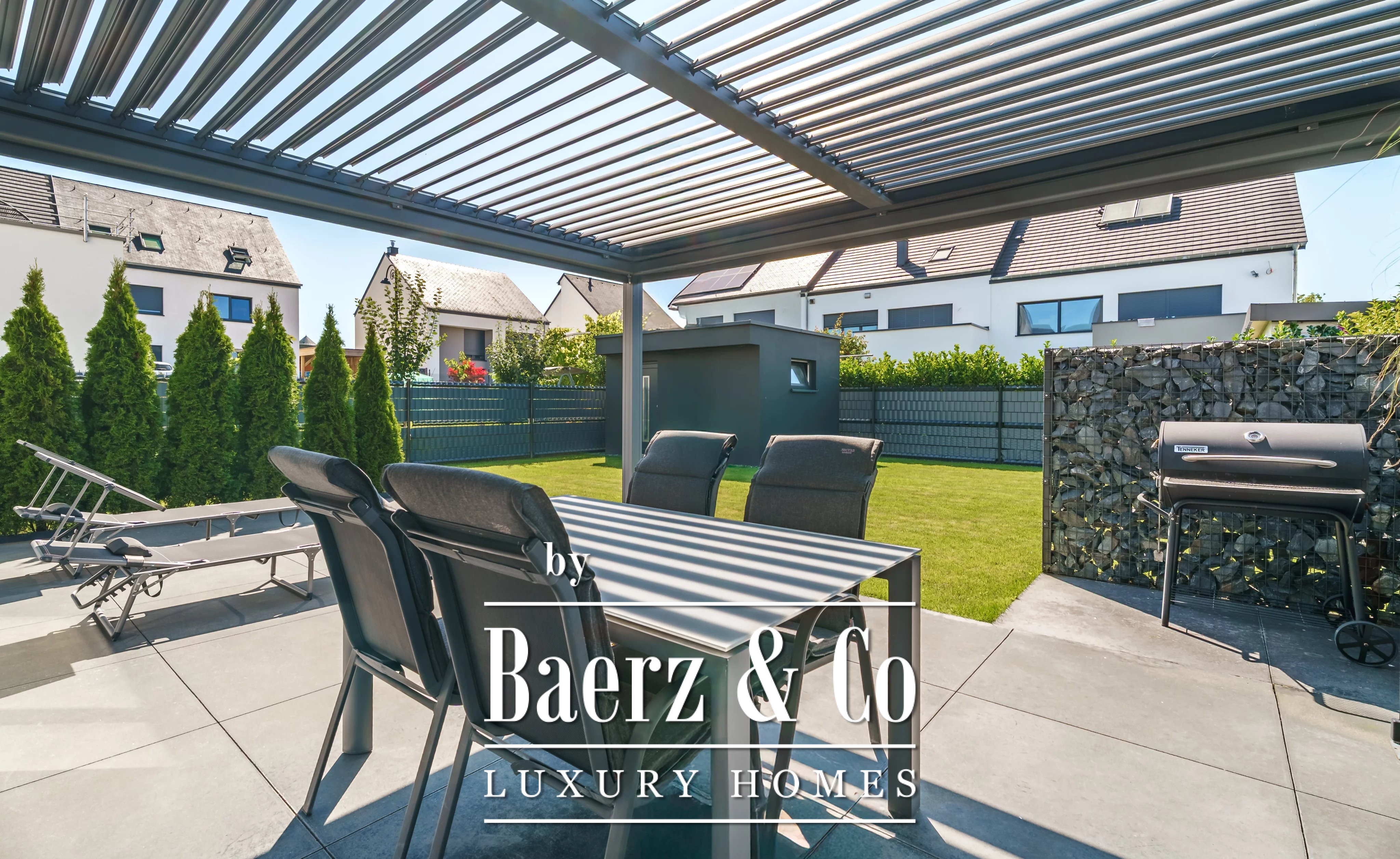 Built in 2015 by Cardoso Construction, the house is defined by meticulous maintenance and up-to-date technical aspects. Triple-glazed, break-in-resistant aluminum windows, connected electric shutters, fiber optic internet, and home automation underline the commitment to comfort and security. Underfloor heating powered by a Buderus oil-fired boiler, double-flow ventilation, and solar panels ensure year-round efficiency.