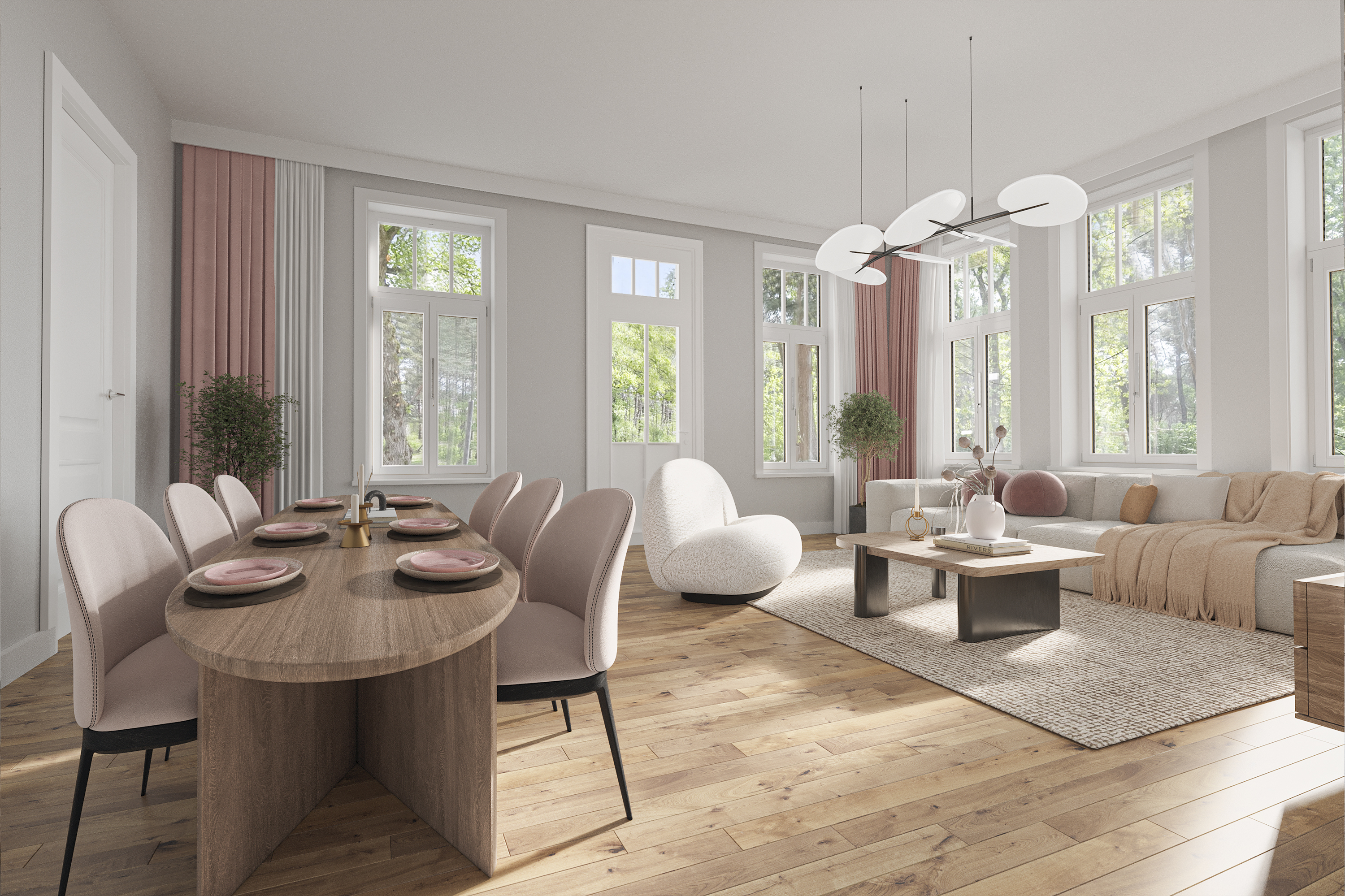 Van de zeven unieke bosvilla’s zijn er reeds drie in de voorverkoop verkocht. De renovatie van de overige woningen is vrijwel afgerond en deze kunnen snel worden betrokken. Maak een afspraak voor een bezichtiging en ontdek hoe u kunt wonen in een historisch pand, midden in de natuur, met alle gemakken van nu.