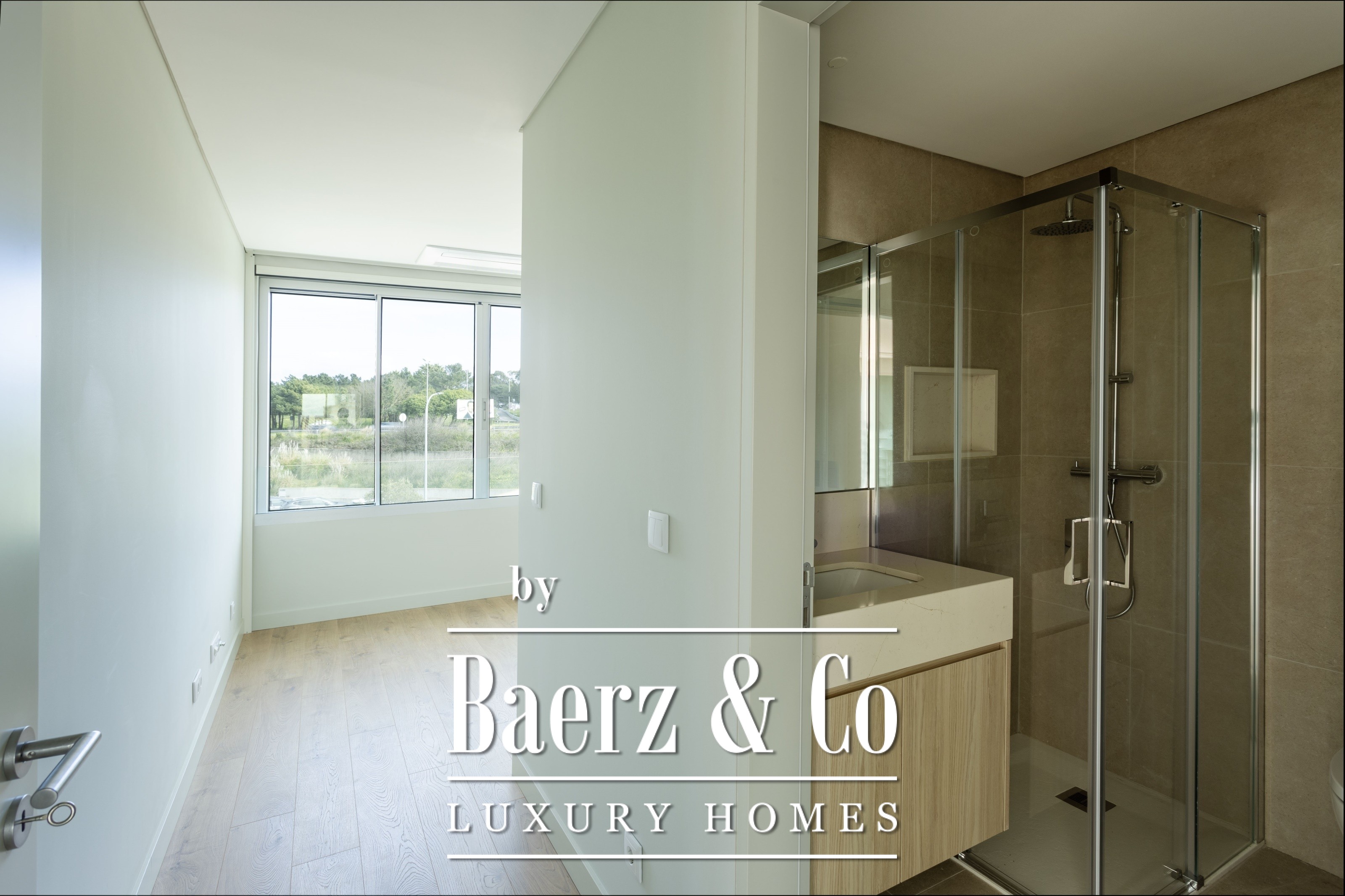 large living room with electric curtains, with access to a balcony, American style kitchen with Electrolux appliances and spacious laundry room with cabinets, sink and washing machine and dryer. All rooms have air conditioning.The condominium is on a quiet street near the Oeiras Parque Shopping Mall and 10 minutes from the beach in Oeiras.