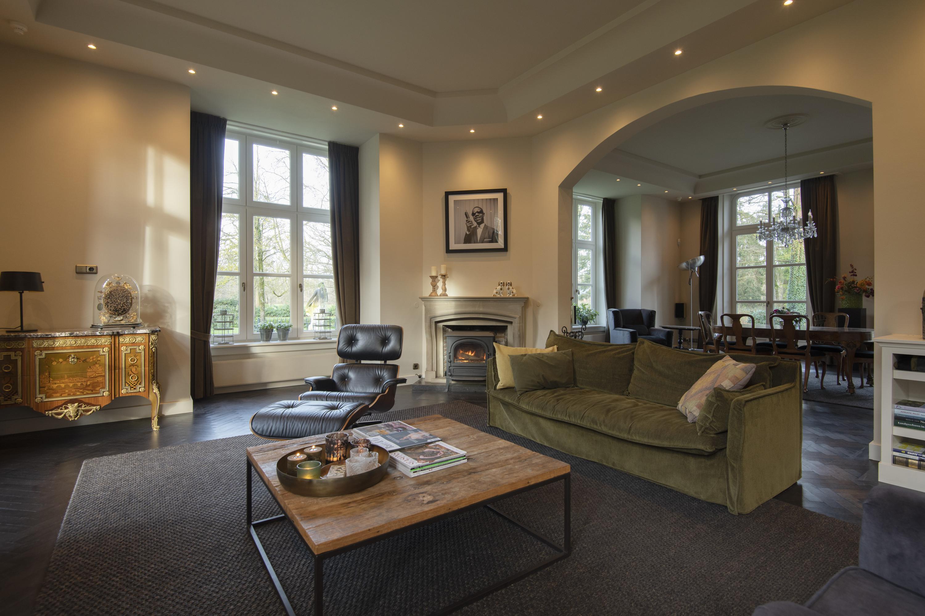 The tranquil yet strategic location of this estate, with its castle-like allure, makes it an ideal residence. Within 30 minutes, Eindhoven Airport, the High Tech Campus and Tilburg are all within easy reach, while ’s-Hertogenbosch is just a 20-minute drive away. The immediate surroundings offer extensive walking trails, perfect for hours of wandering through the beautiful Brabant woodlands. Surrounding the manor house is an English landscape garden with a pond, several lawns and many mature trees, including a magnificent monumental Caucasian wingnut and a Canadian poplar.