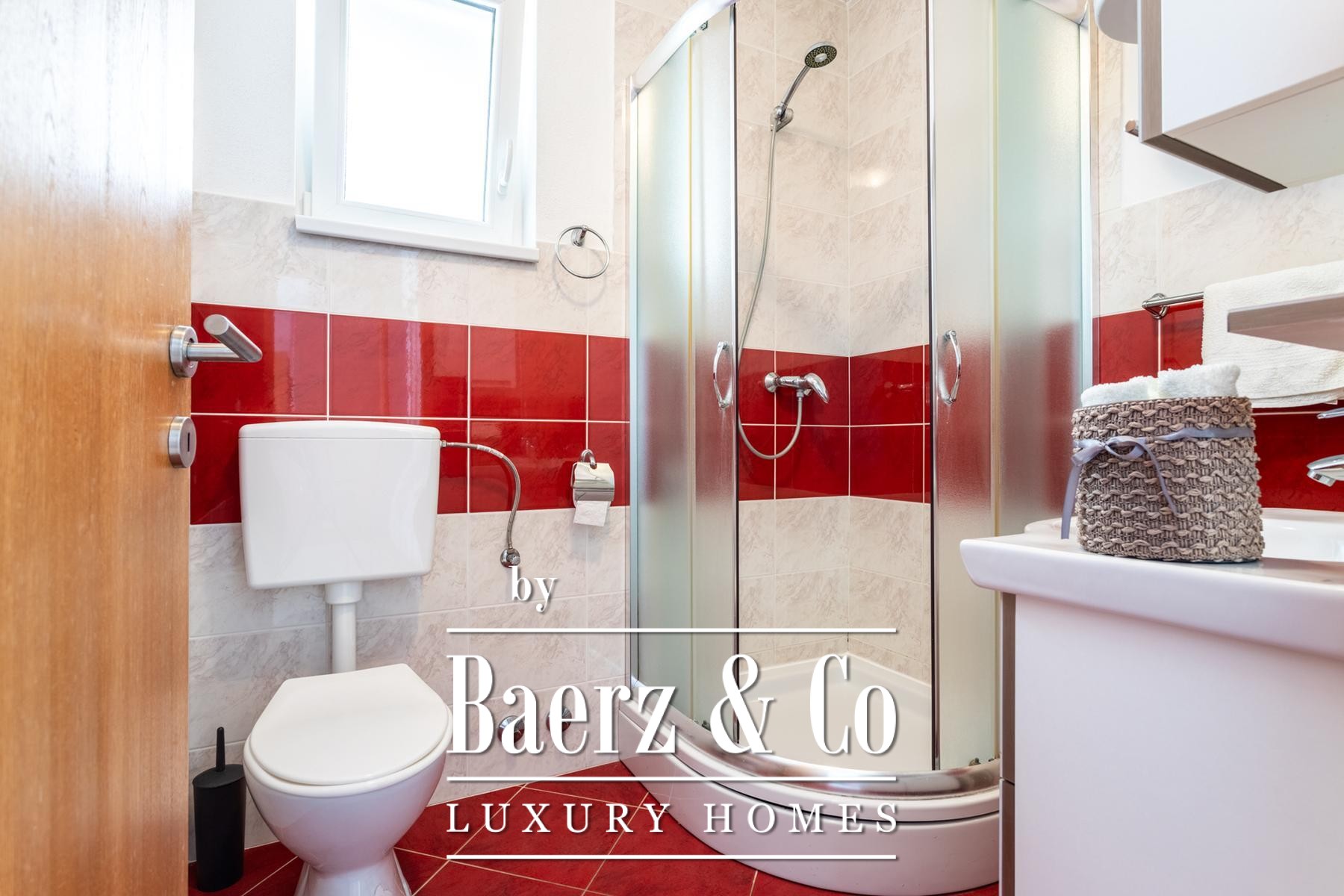 Čiovo, Okrug Gornji - apartment house located on a plot of land measuring 420 m², only 80 m from the sea.It is divided into four fully equipped apartments, which allows the continuation of the already established and profitable tourist rental.Layout: