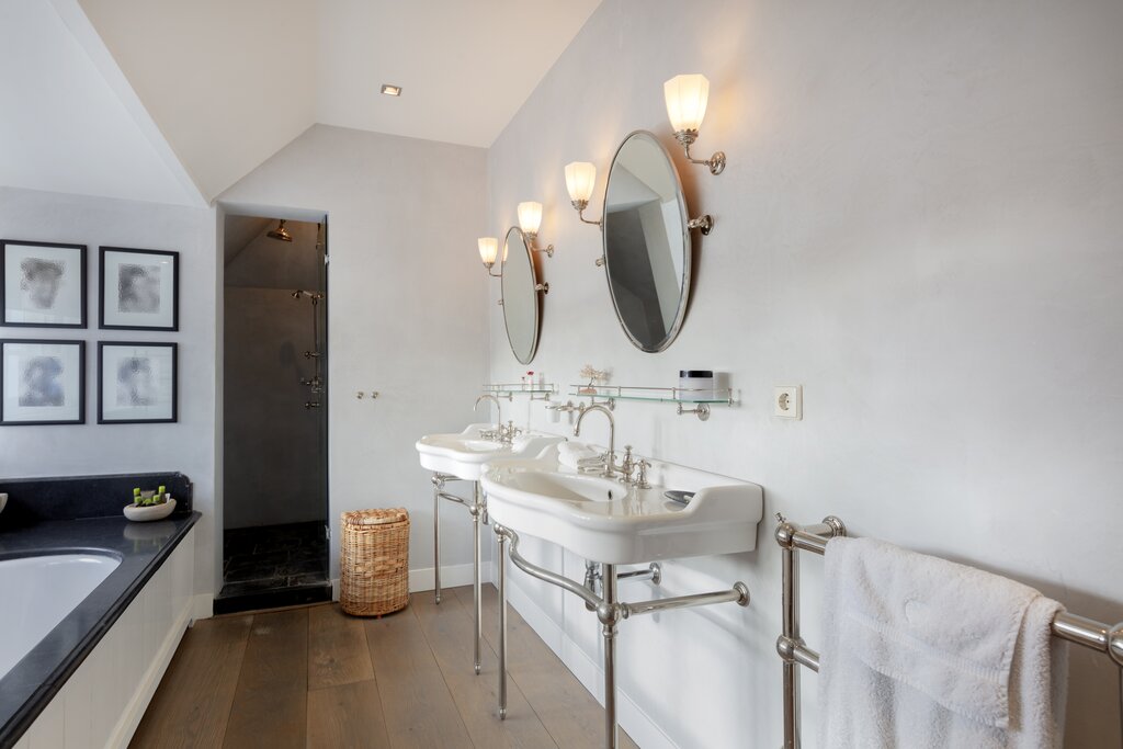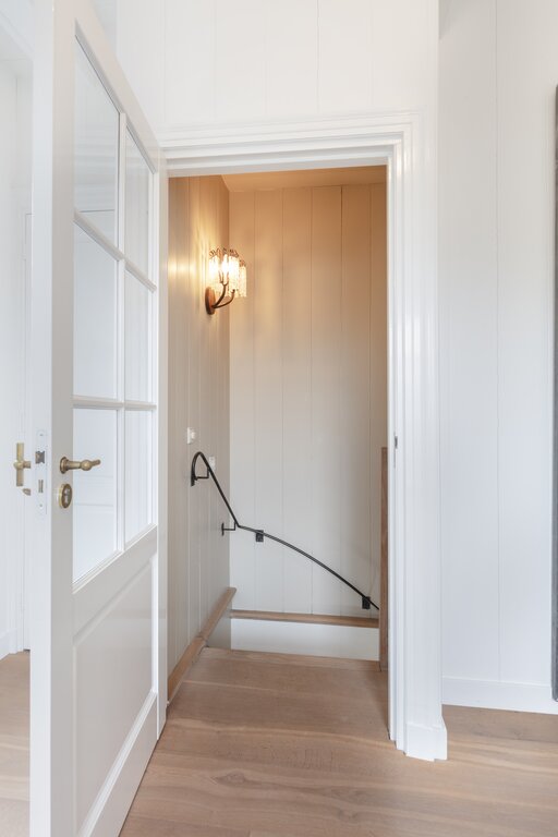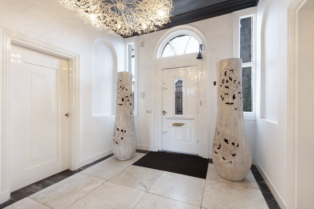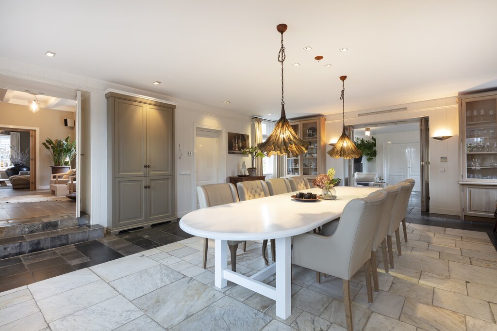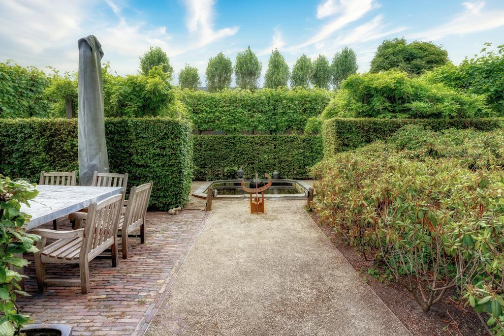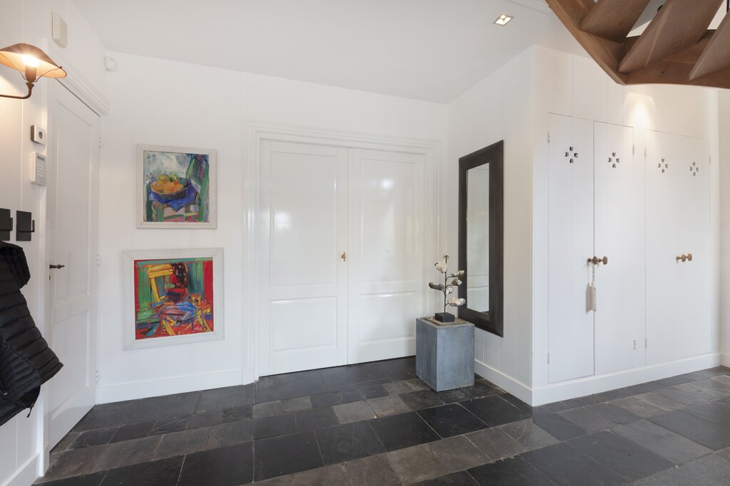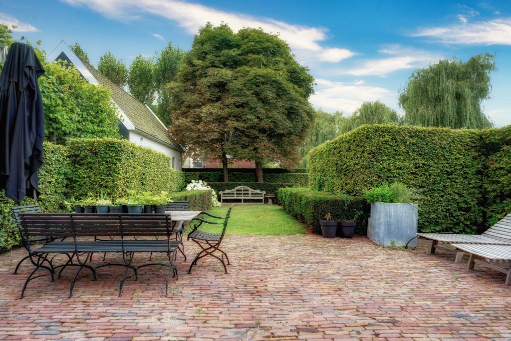 The orphanage is a detached classic mansion. Instantly recognizable by the high gutter line. Inside, the high ceilings immediately come into view. Around the mansion lies the garden to the hand of Marcel Woltering. Tight beech hedge lines, forms the base around some garden rooms. A few old trees, give character to the design. You will also find a wooden deck for a boat and the carport with double barn/garage. Several cars you can park with ease, completely out of sight. The smart garden design certainly takes into account the privacy aspect. The long driveway on the South side of the plot, is closed with an electrically operated wooden gate.