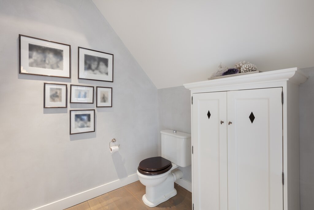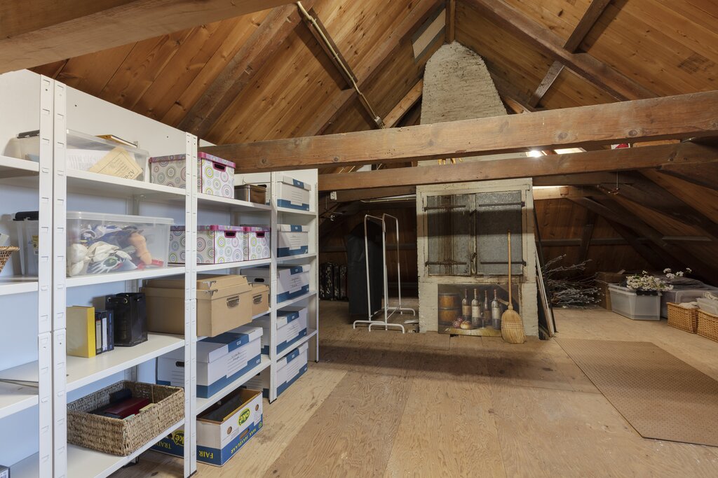 1st floor: Landing, 3 bedrooms in the main building, bathroom with bath, shower, double sink and toilet, stair case to the spacious 2nd floor (now attic). In the side wing of the house (with the ability to close off), 2 bedrooms, 2nd bathroom with bath, shower, toilet and double sink, hall, classic multi-person sauna. Washing machine/dryer/ironing room.