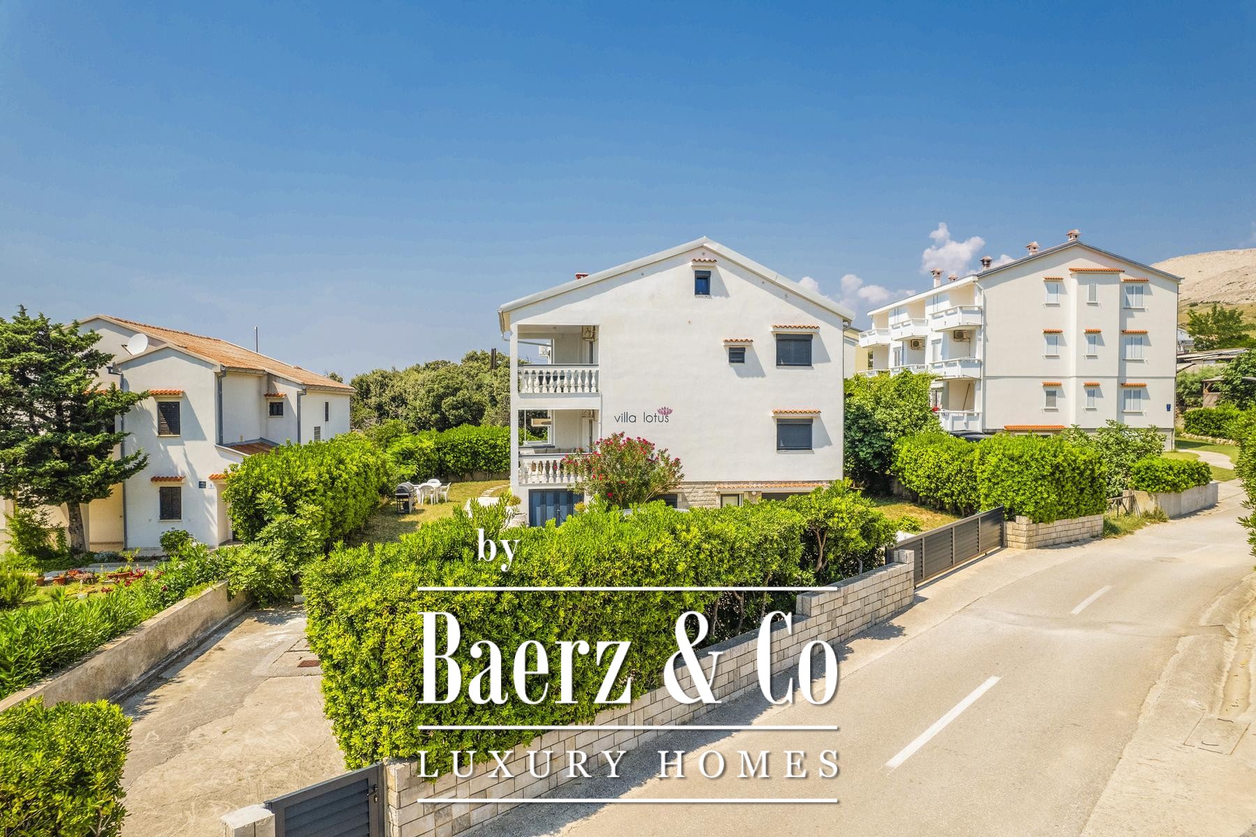 Townhouse Pag stands just 50 meters from the Adriatic, offering eight apartments distributed across four floors, shaped by a 694 m² plot and a total living area of 407 m². This townhouse Pag, set in a peaceful enclave enveloped by greenery, invites a quiet pace of life balanced with coastal accessibility.