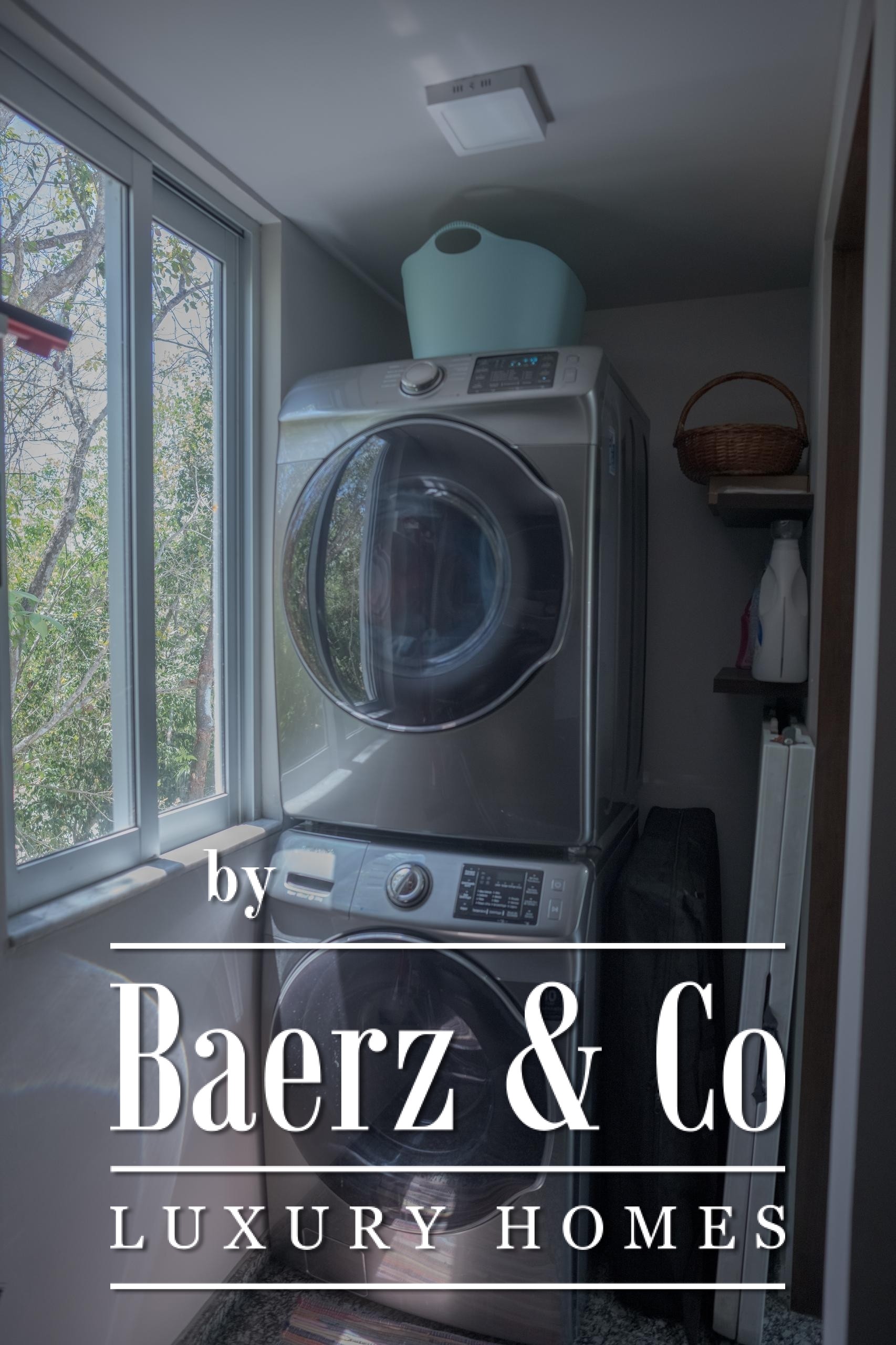 On the main floor, enjoy a spacious living and dining area with sliding glass doors that fully open to a terrace integrated with a beautiful tropical garden, creating the perfect atmosphere for relaxation or entertaining. The fully equipped kitchen features a breakfast bar connected to the dining area, black granite countertops, and fine wood cabinetry — ideal for those who love to cook or host guests.