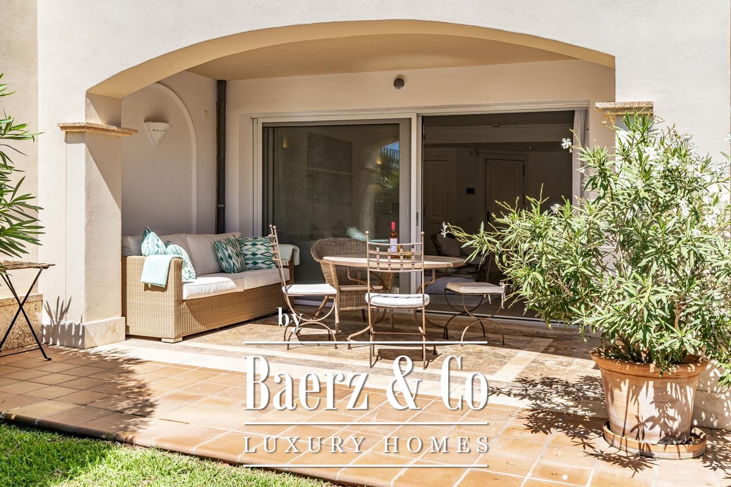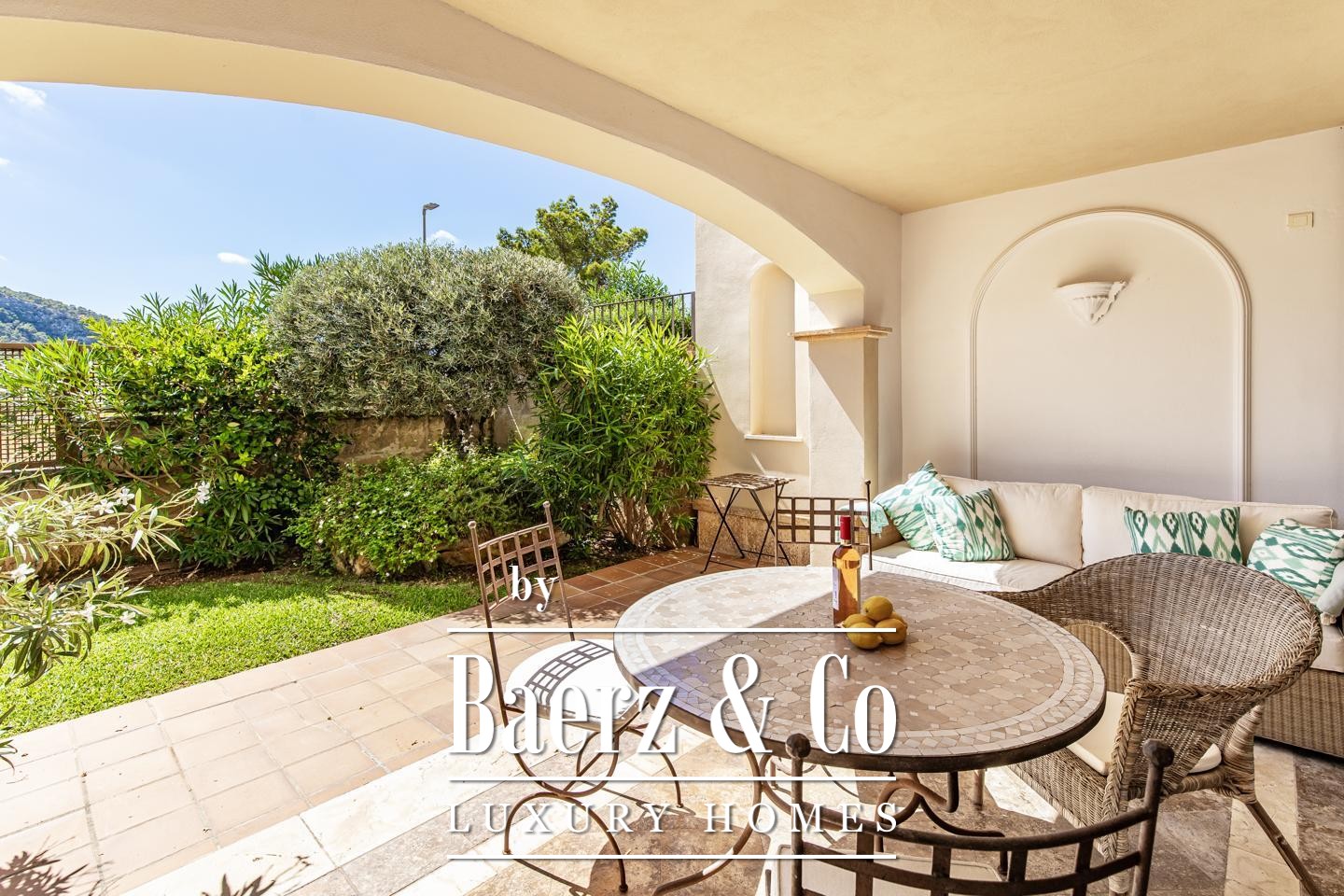 Apartment Port d'Andratx offers a refined blend of architecture and Mediterranean light, set within one of the area’s most distinguished communities. Just moments from Cala Llamp, this residence combines comfort and serenity with a sense of understated luxury. The apartment spans approximately 95 m², with one bedroom and an en-suite bathroom featuring bathtub and shower. Marble floors, underfloor heating, and a Poggenpohl kitchen with Küppersbusch appliances reflect a thoughtful approach to design. The living area and main bedroom both open onto a 33 m² terrace, leading into a private garden—a tranquil space to savour Mallorca’s gentle climate.