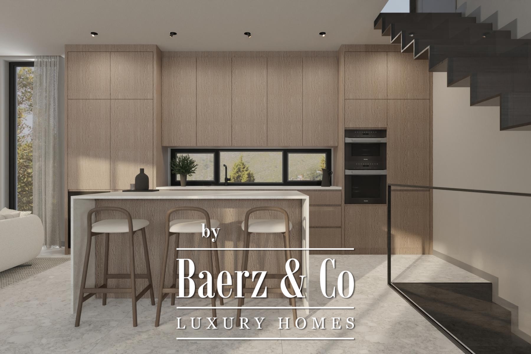 The basement accommodates a multi-car garage and three flexible utility rooms, equally suited for fitness, storage, or a private wine collection. Discreet covered entry ensures privacy from arrival onward. On the ground floor, a single bedroom suite, a full bathroom, and an additional guest toilet complement the centerpiece: an open, light-filled kitchen, dining, and living area. Direct access leads to a covered terrace, easing into an expansive poolside sun terrace, inviting the Mediterranean to infuse daily rhythms.
