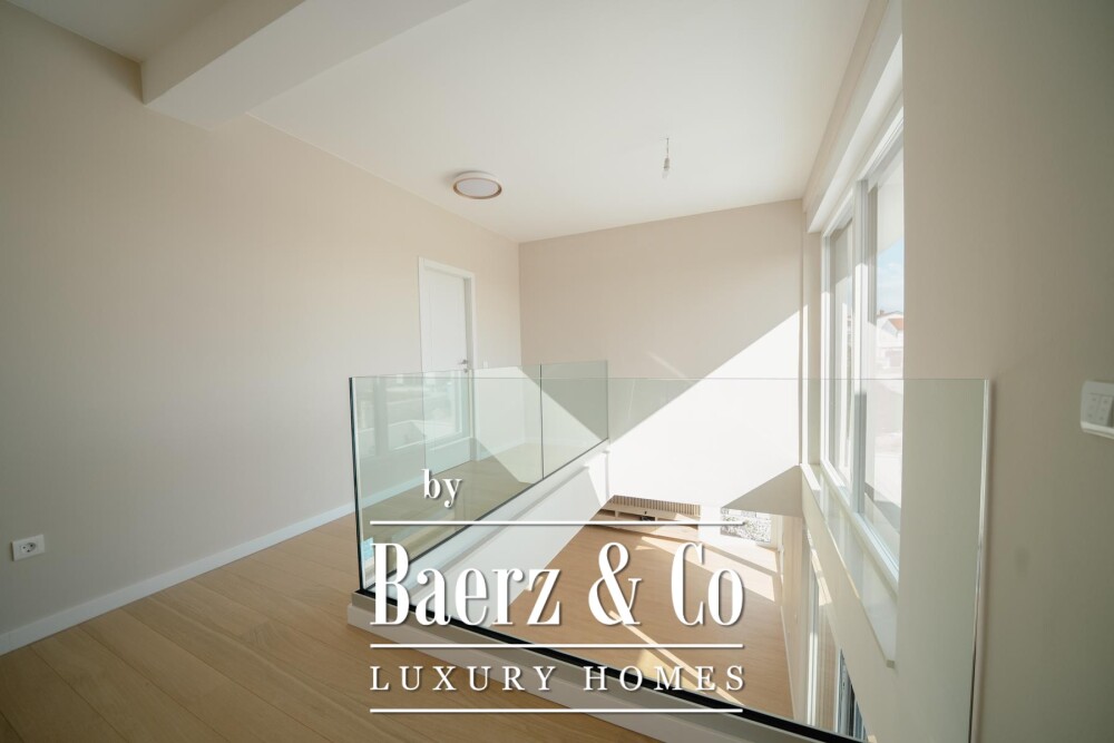 Upstairs, three bedrooms each feature a private bathroom, with the master suite offering a dedicated dressing room. Two of the bedrooms open to their own terraces, offering subtle sea views and a connection to the calm surroundings. Underfloor heating via heat pump, air conditioning in every room, electric shutters, and attentive insulation deliver year-round comfort and efficiency.