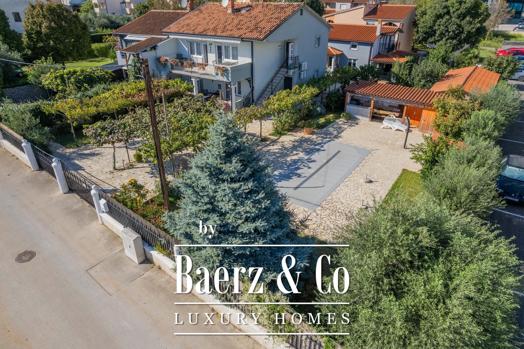 In a quiet and exclusive part of Kaštanjer, there is a rare property that combines comfort, privacy and spaciousness. On a plot of 1000 m2, there are two houses surrounded by greenery and a private swimming pool. The first house consists of two apartments with an identical layout, each of 96 m2, and consists of an entrance hall, kitchen with dining room, living room, two bedrooms, utility room, bathroom and a 30 m2 terrace. The apartments have central heating with pellets and air conditioning, and the new facade and windows from 2021 provide a modern and fresh look.The second house extends over 180 m2, across the ground floor and first floor, and offers a functional and spacious home. The ground floor is the heart of the house, with a spacious kitchen and dining