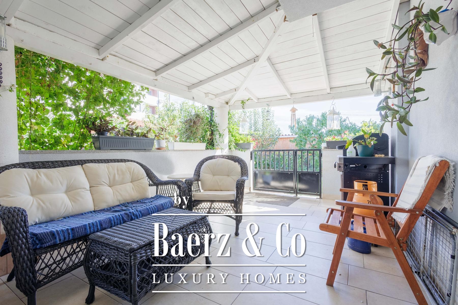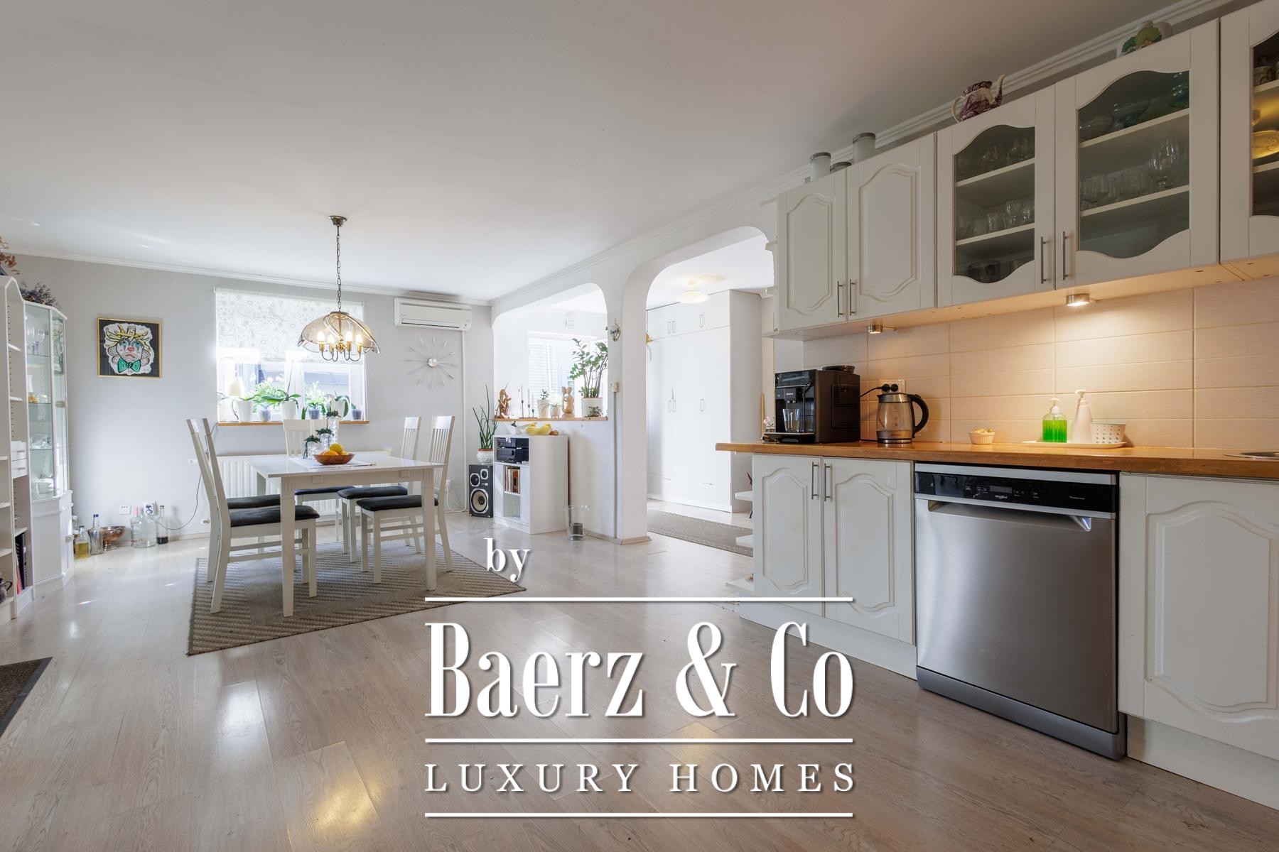 room that open onto a 30 m2 terrace, one bedroom and a bathroom. On the first floor there is a living room, a dressing room and three bedrooms, two of which share a terrace, and an additional bathroom. There is also a 20 m2 laundry room next to the house, which adds practicality to everyday life.The grounds are spacious and carefully landscaped, with a swimming pool and sundeck, an outdoor kitchen and dining area, a garden and ample parking space. Everything is enclosed by a living wall, creating the feeling of a private retreat, completely hidden from view, ideal for family life or enjoying peace and quiet.There is a possibility of negotiating and purchasing only the first house with two apartments.For more information or to arrange a viewing, please contact us.