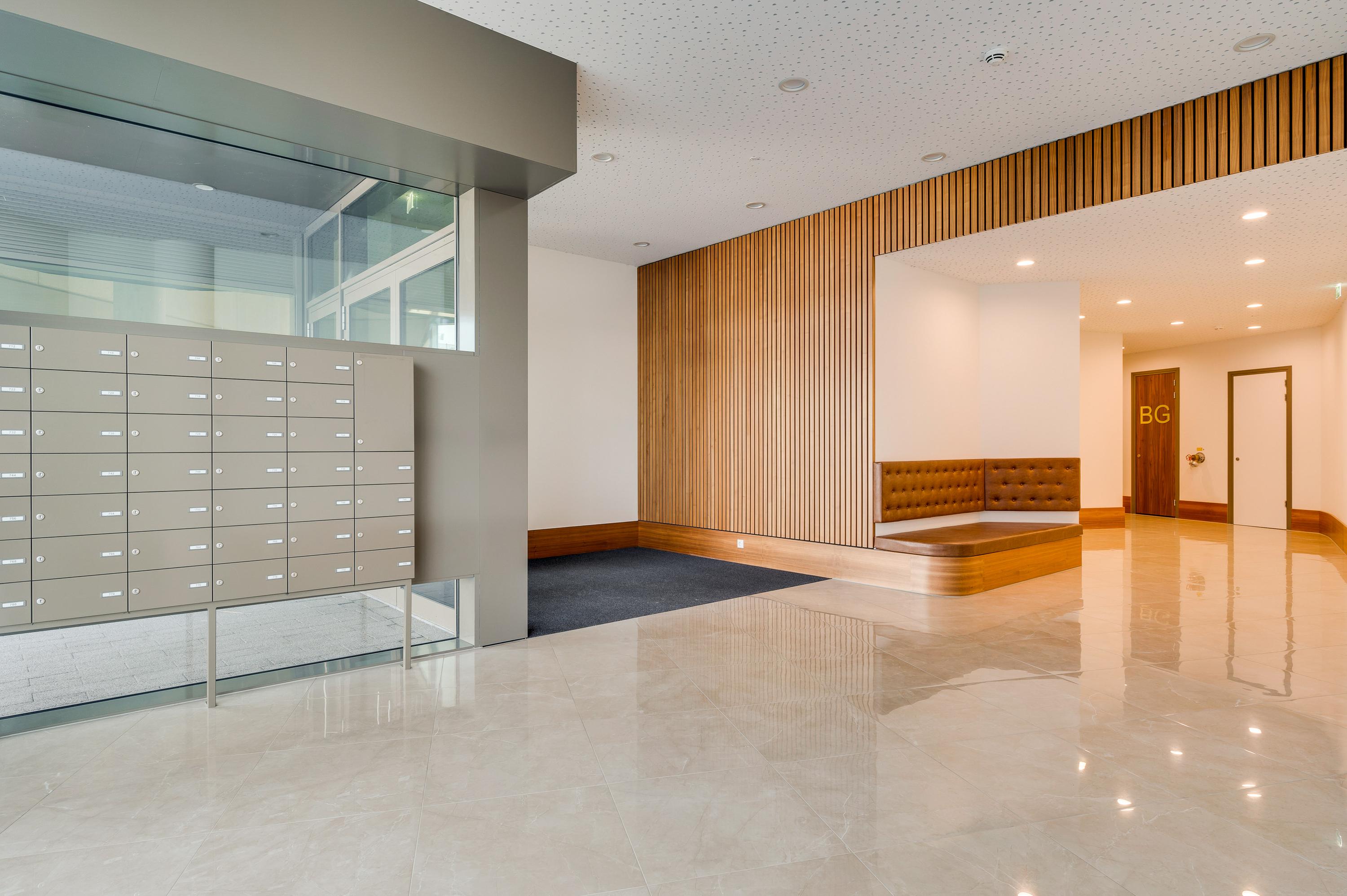 Ground floor: Entrance with doorbells, staircase and lift. All entrance doors, including the apartment, are fitted with an electronic cylinder lock so that the entrance doors can be opened keyless.