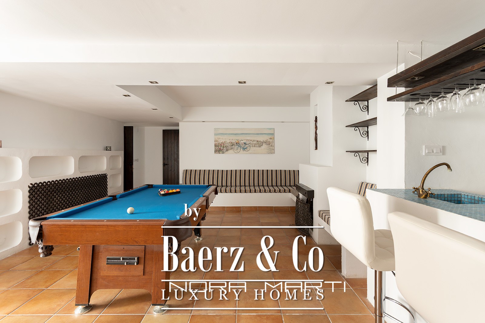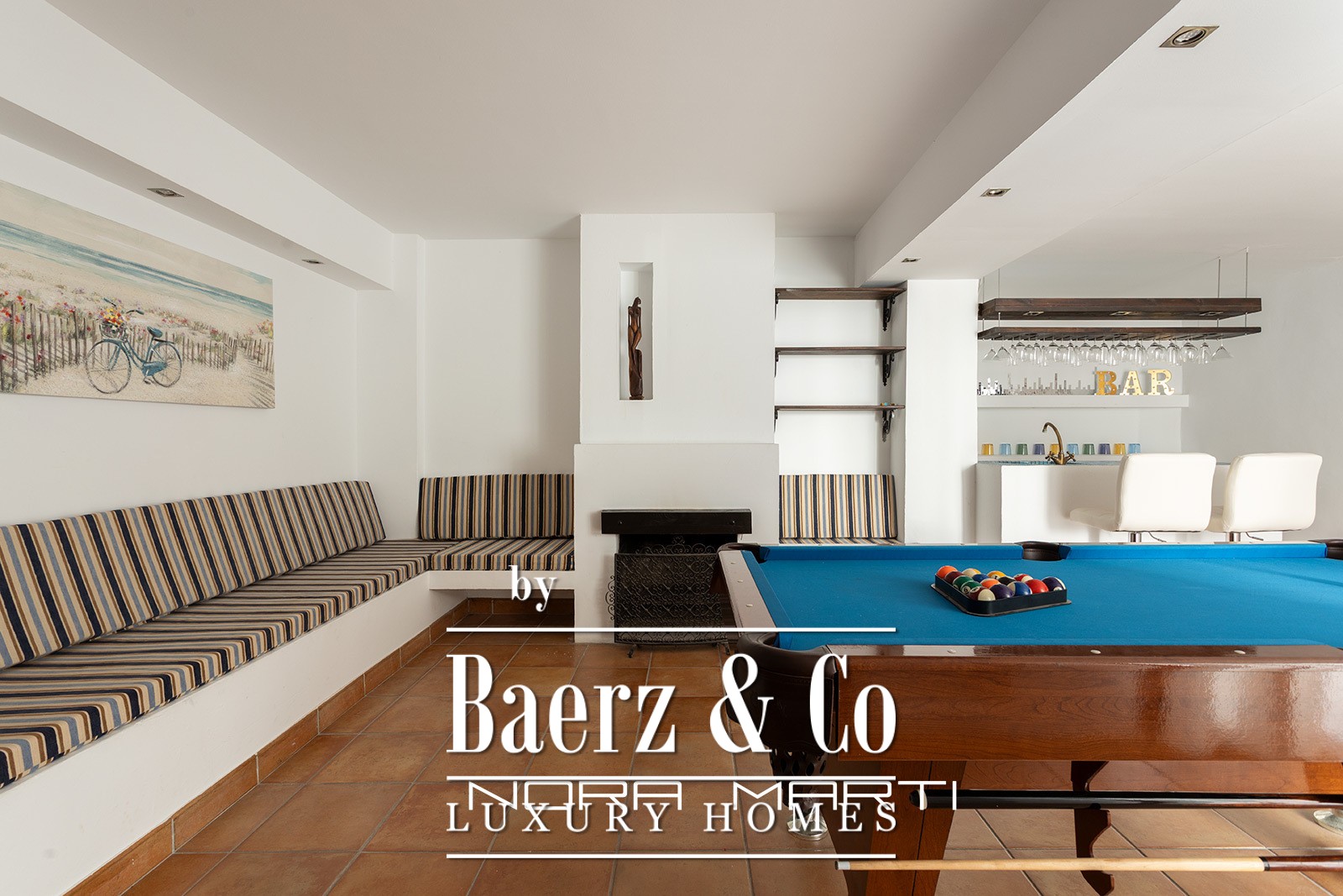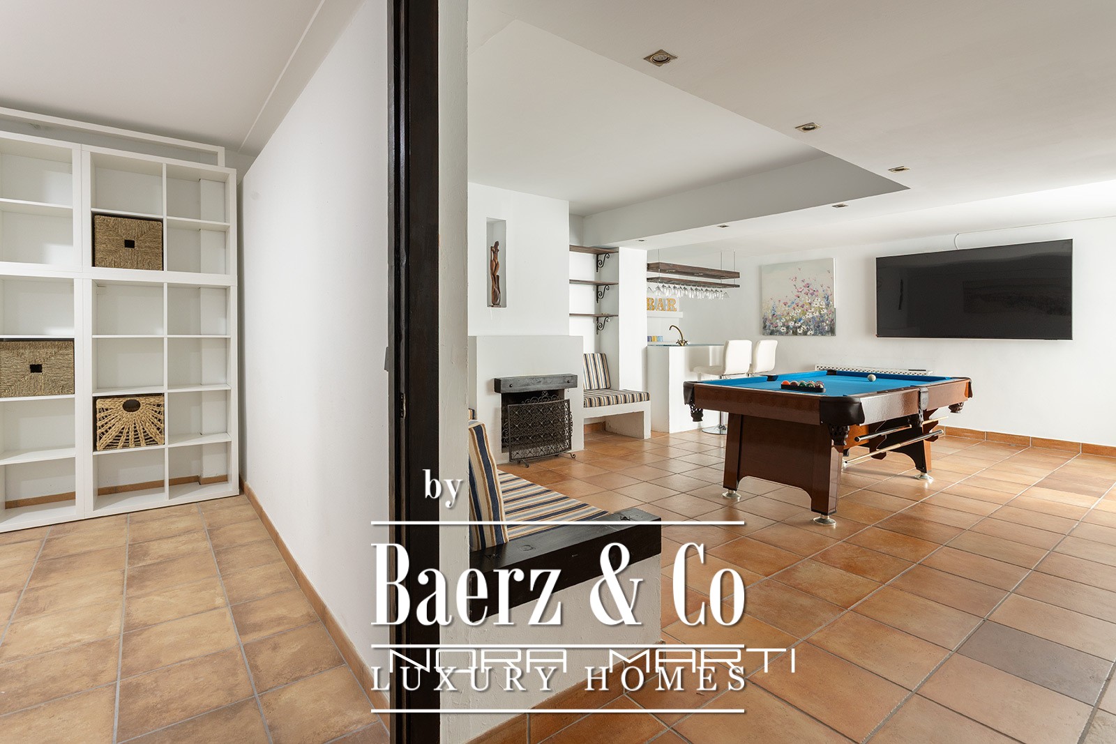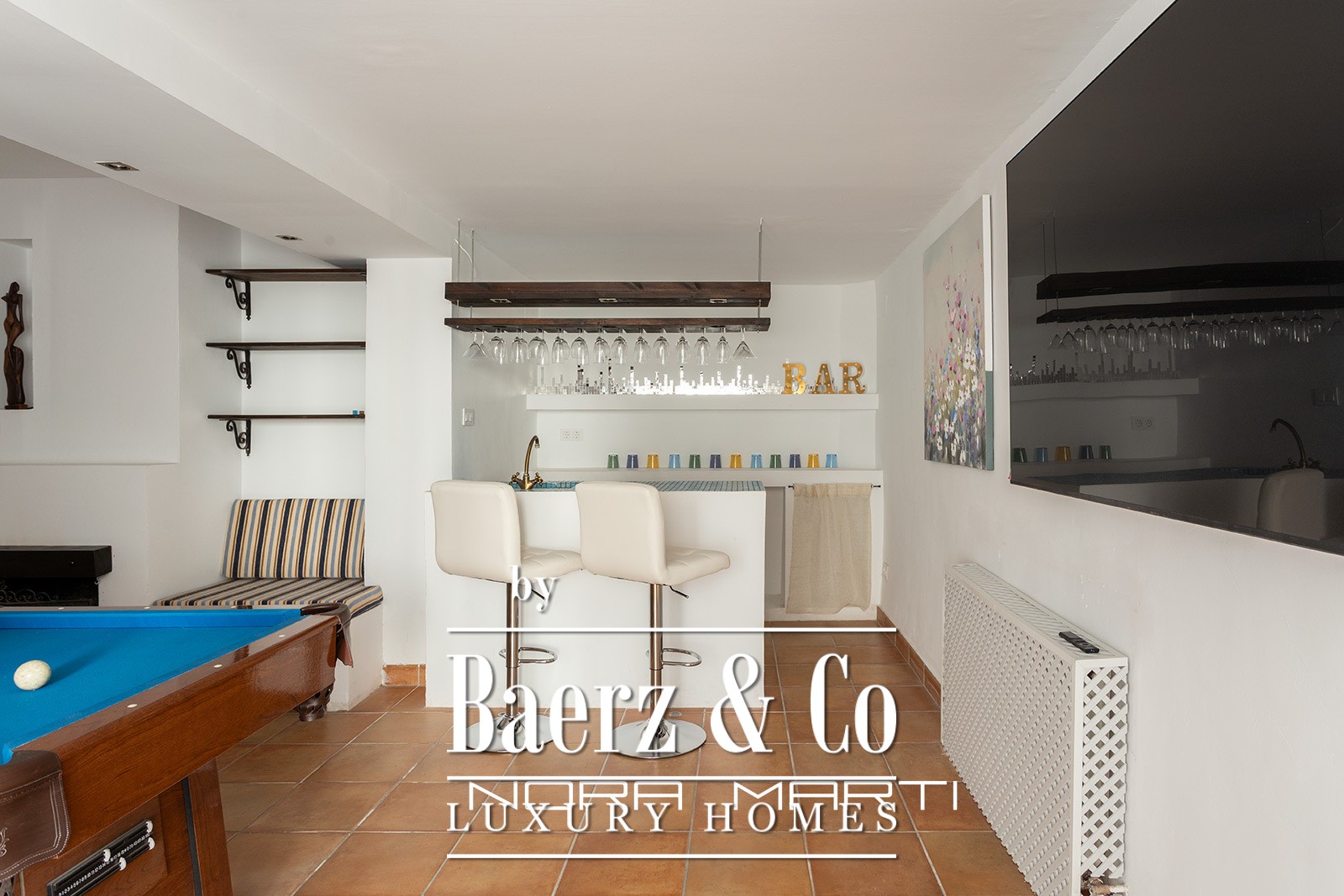 Light fills the central living room, which extends gracefully onto a terrace suited for daily enjoyment of open air and natural light. The private garden, equipped with a barbecue area and expansive table, becomes a natural gathering point for alfresco dining and relaxed social occasions. The ground floor unveils a leisure haven including a bar, TV and games room, toilet, and direct access to the garden, ensuring both intimate family time and effortless hosting.