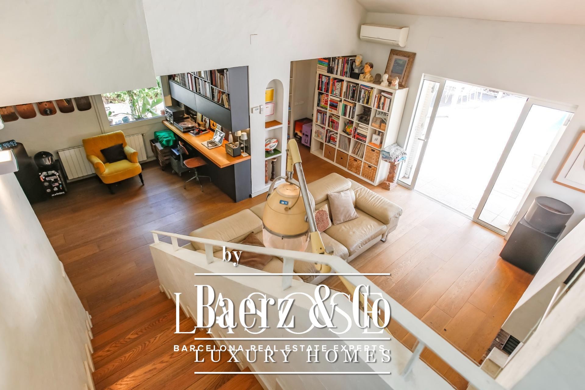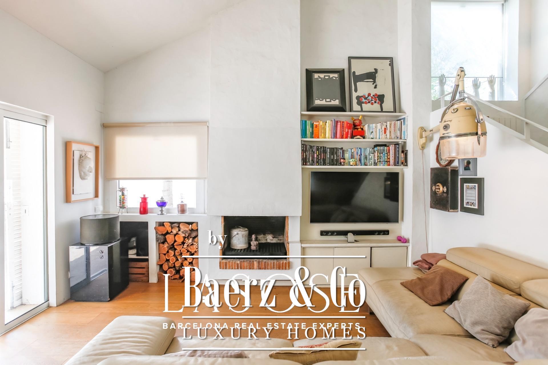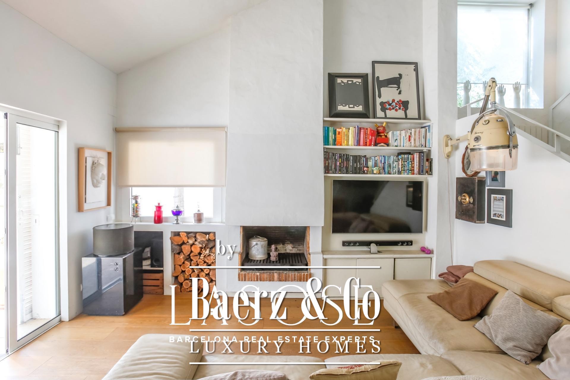 Beyond the landscape, interiors unfold in a harmonious rhythm. An elegant living area with fireplace opens to the garden, while a fully equipped kitchen with central workspace adjoins a private patio and parking. On the ground floor, a guest suite or study complements flexible living, while the upper level features three bright double bedrooms, each with garden views, enhanced by double-height ceilings. Throughout, refined finishes and neutral tones accentuate the architecture’s natural elegance.