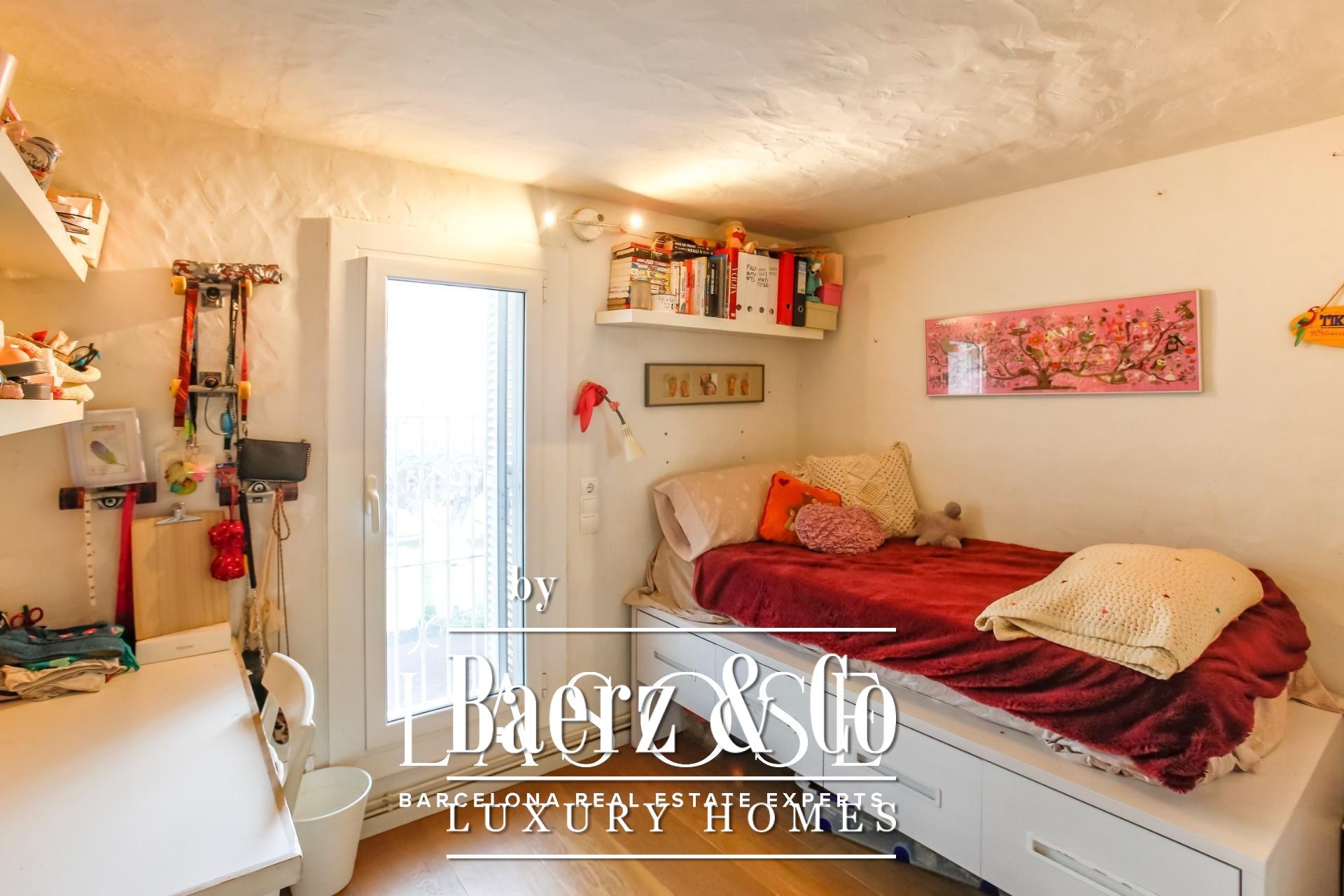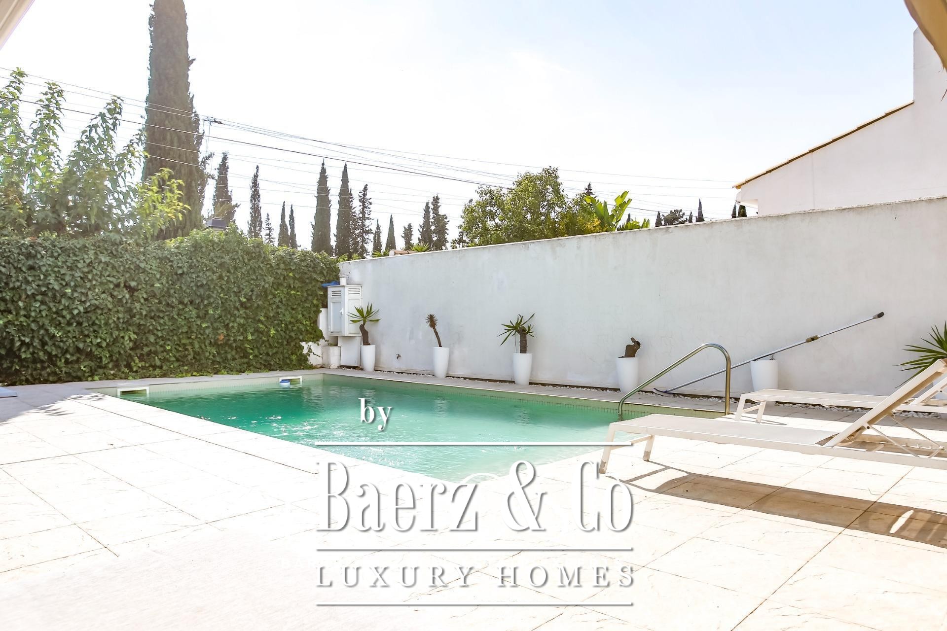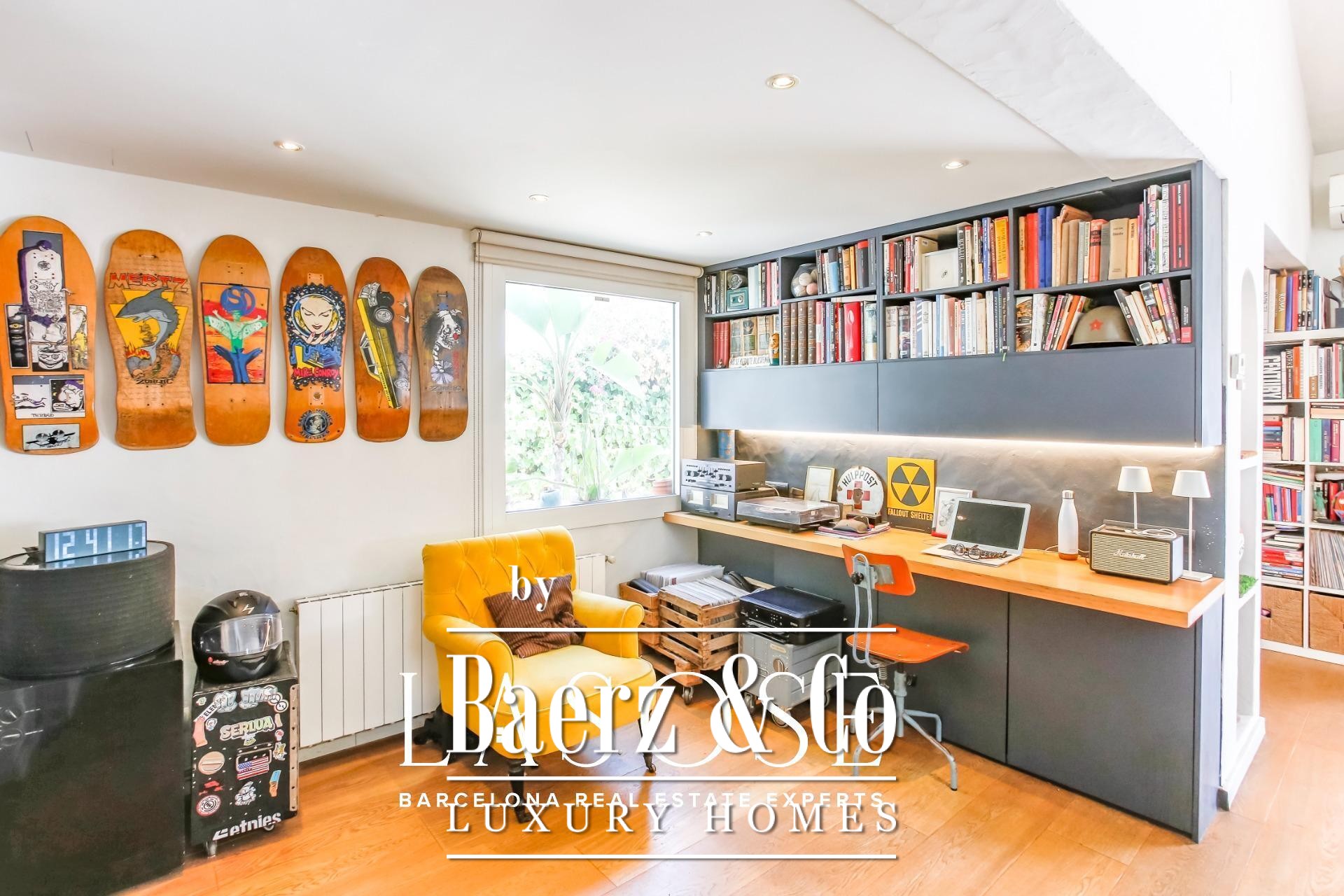 Beyond the landscape, interiors unfold in a harmonious rhythm. An elegant living area with fireplace opens to the garden, while a fully equipped kitchen with central workspace adjoins a private patio and parking. On the ground floor, a guest suite or study complements flexible living, while the upper level features three bright double bedrooms, each with garden views, enhanced by double-height ceilings. Throughout, refined finishes and neutral tones accentuate the architecture’s natural elegance.
