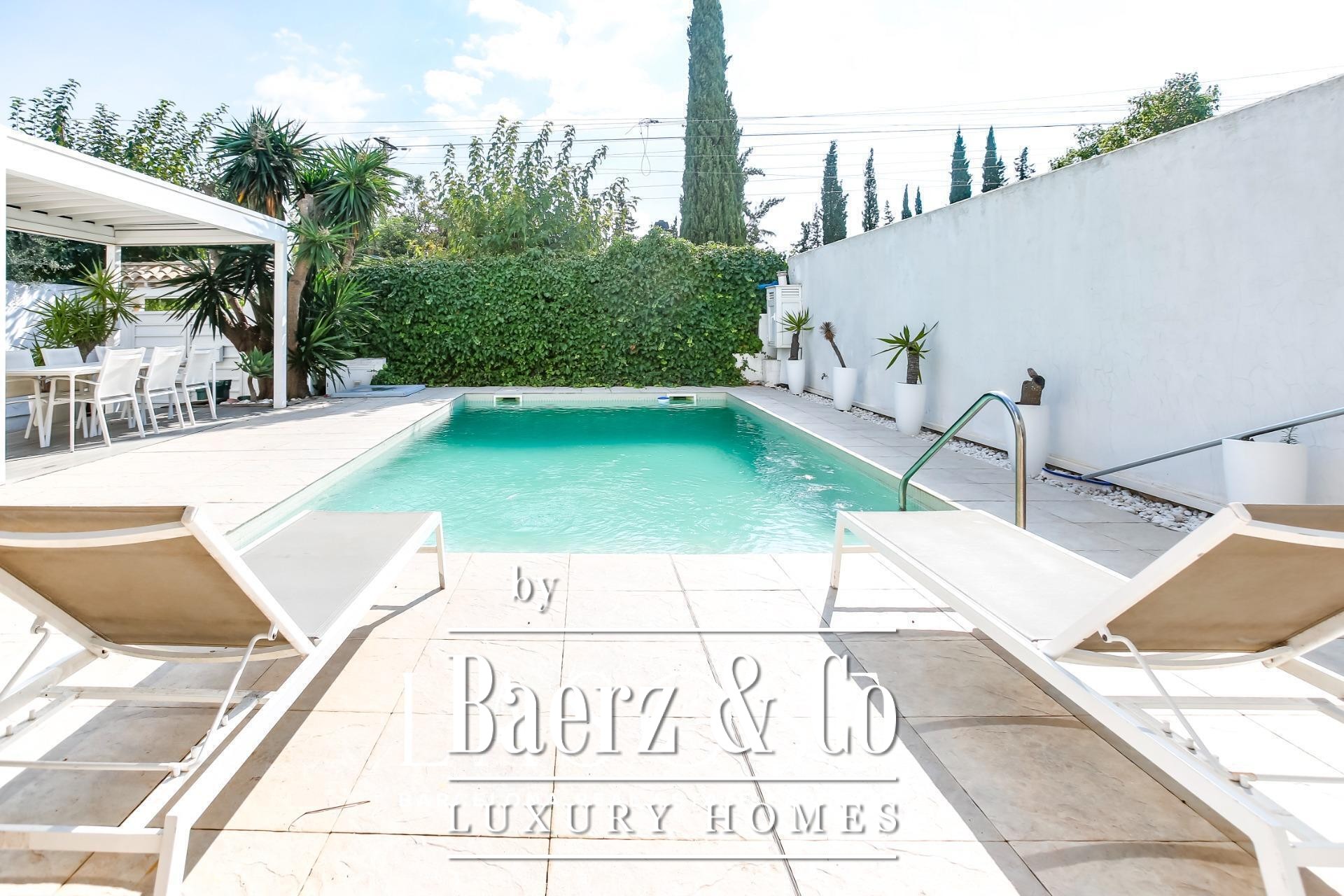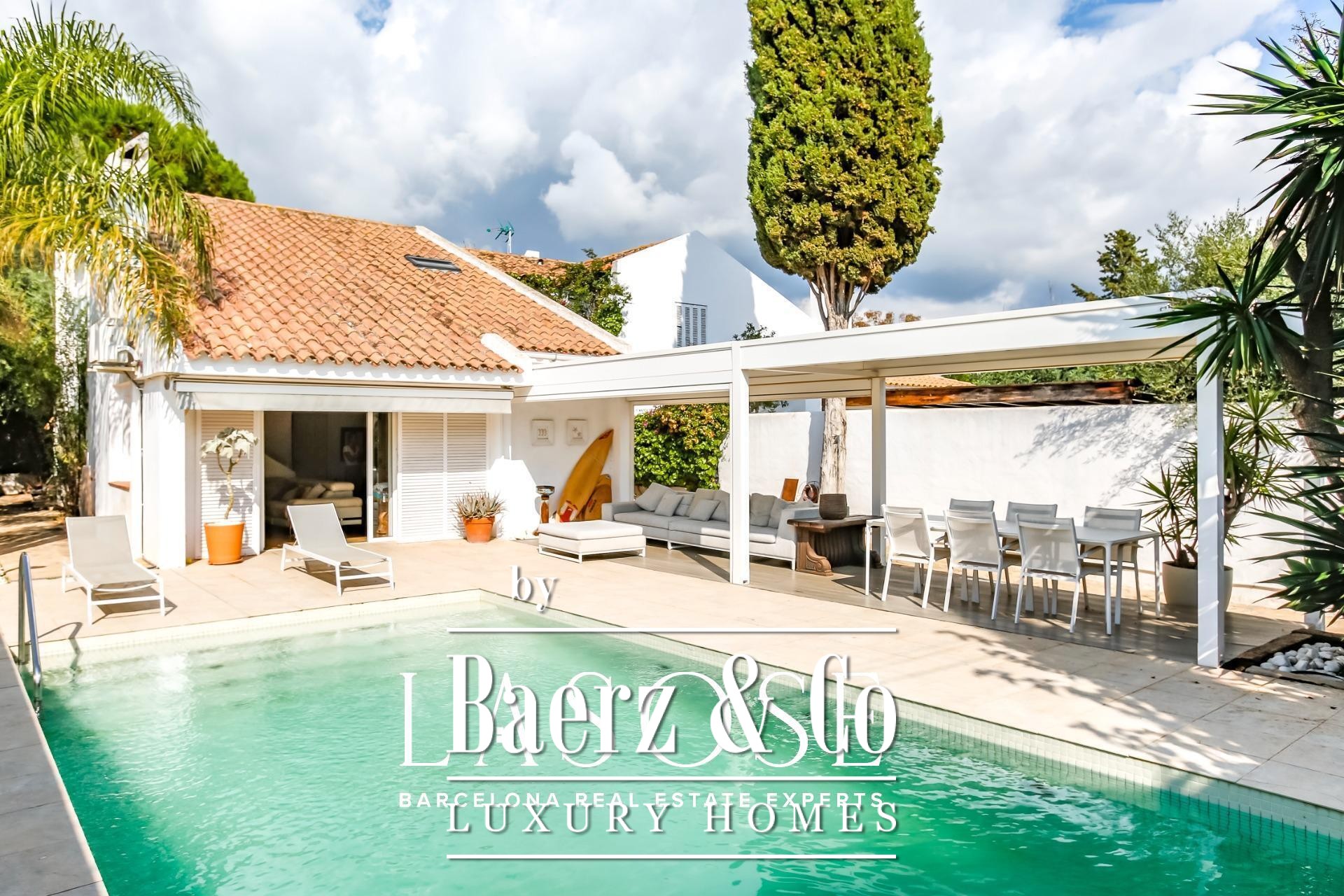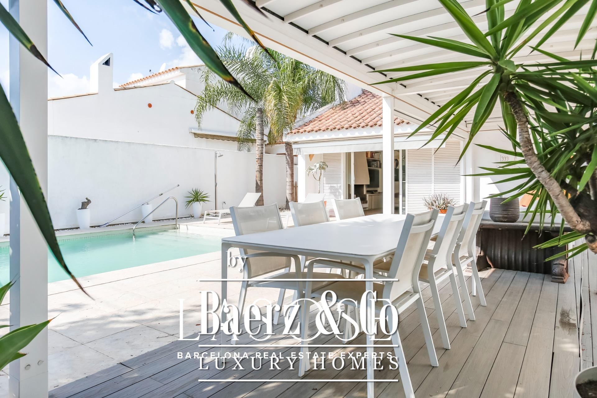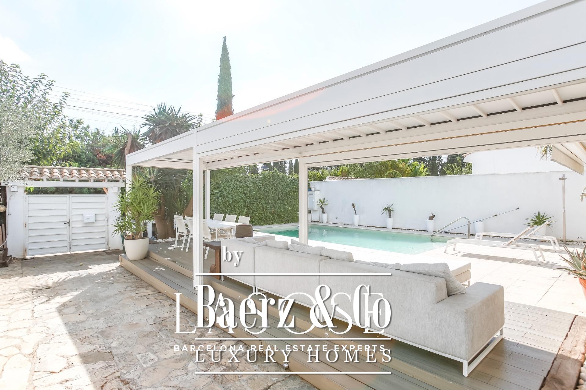 Detached house Sant Pere de Ribes offers an understated, Mediterranean aesthetic set within the exclusive enclave of Los Viñedos. The residence presents 155 m² of considered living space on a 355 m² plot, offering four bedrooms and two bathrooms, thoughtfully arranged for privacy and fluidity. Light flows through expansive sliding windows, connecting interior spaces with lush gardens, lounge terraces, and a private swimming pool—an invitation to daily calm and quiet gatherings alike.