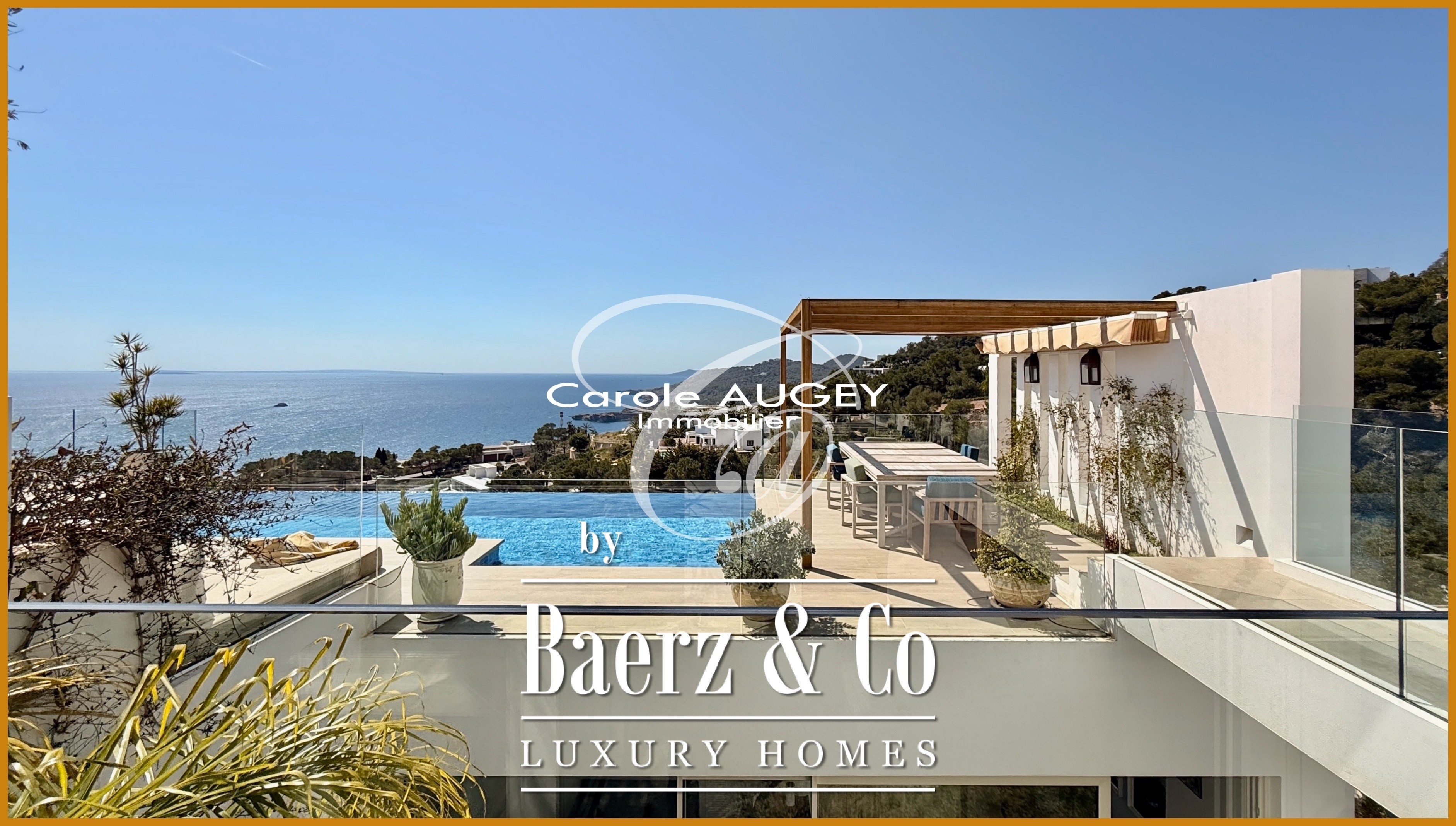 Every element is designed to immerse you in an evolving seascape. Reimagined by several architects and completed in 2023, this villa is sold fully furnished and fully legalised, offering exceptional quality with complete seclusion. Over 400 m² of built space and approximately 345 m² of living area flow seamlessly toward panoramic terraces, a south-west orientation filling each room with natural light.