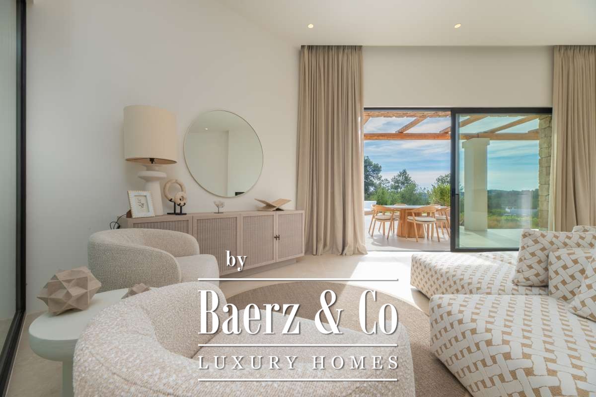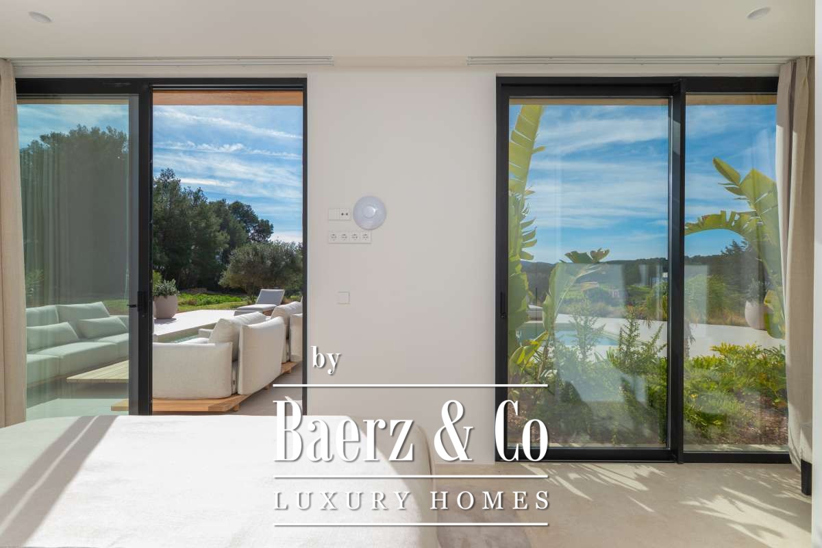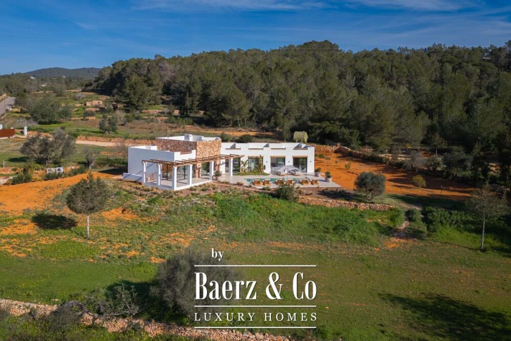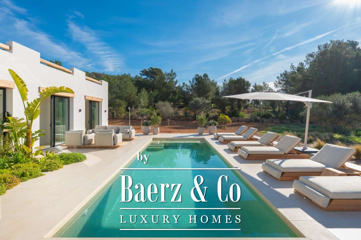 The villa is realized with eco-conscious materials, double glazing, underfloor heating, air conditioning, and parking. Landscaped gardens, plans for an additional guest house, and original Ibicenco structures within the courtyard complete the offering. Positioned minutes from Santa Gertrudis village and renowned international schools, with Ibiza Town and the airport within comfortable reach, this villa offers privacy and presence—an immaculate, flexible base for refined island living.