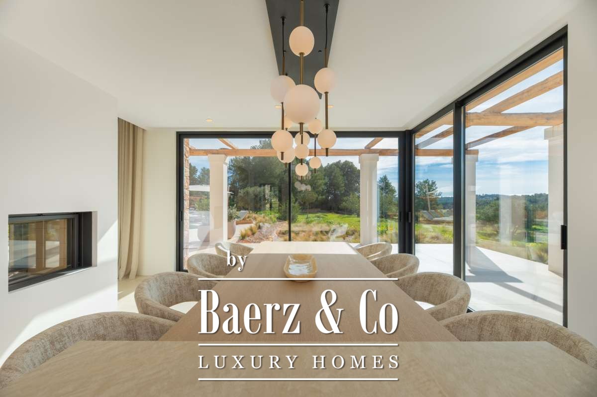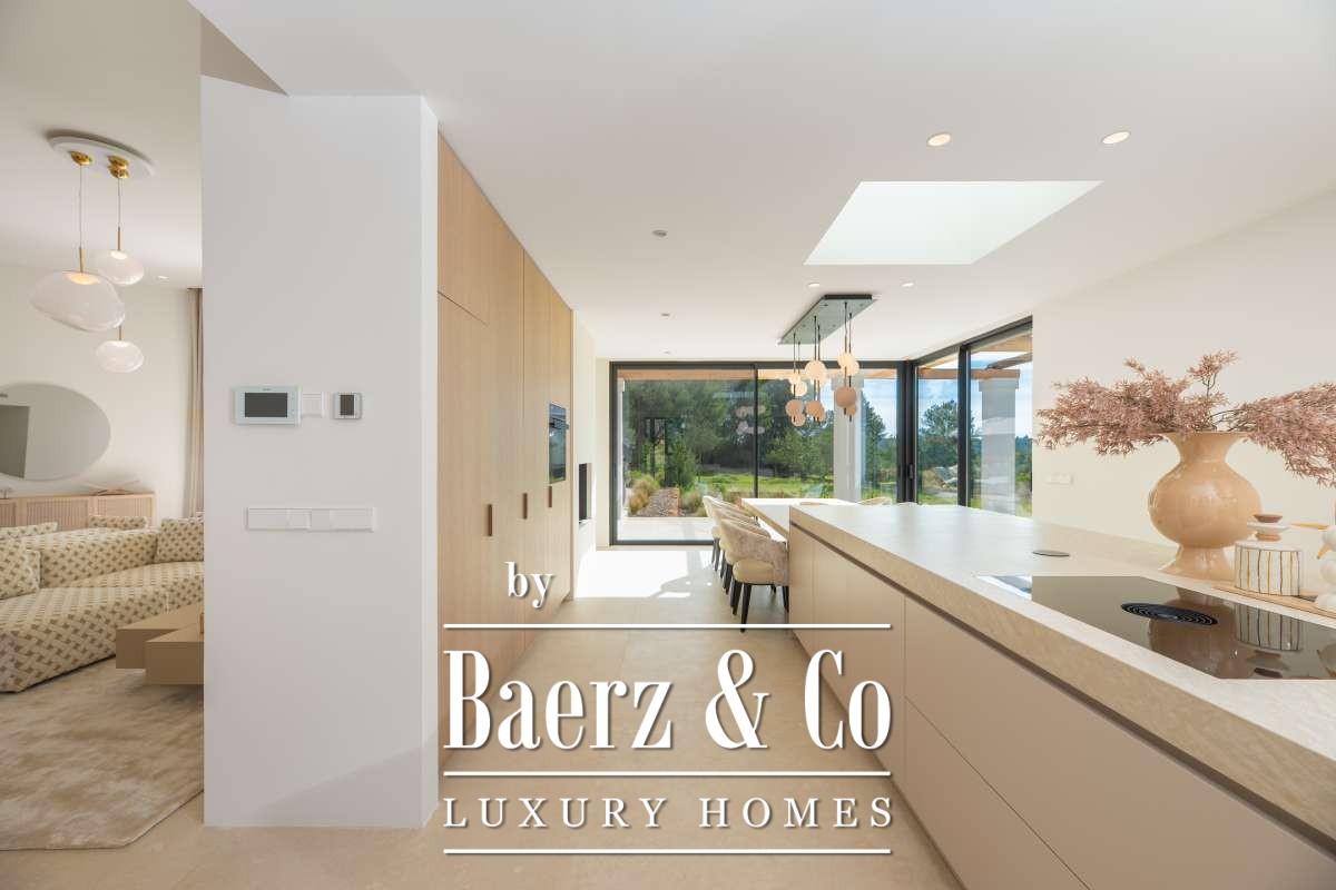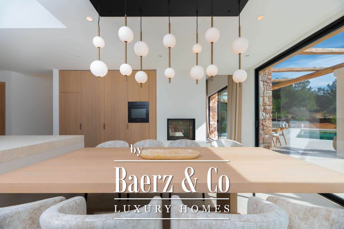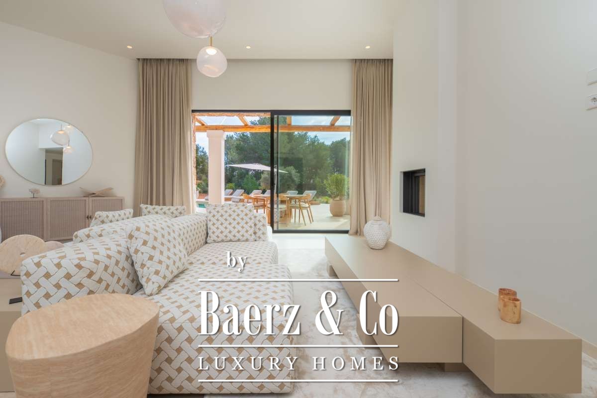 The villa is realized with eco-conscious materials, double glazing, underfloor heating, air conditioning, and parking. Landscaped gardens, plans for an additional guest house, and original Ibicenco structures within the courtyard complete the offering. Positioned minutes from Santa Gertrudis village and renowned international schools, with Ibiza Town and the airport within comfortable reach, this villa offers privacy and presence—an immaculate, flexible base for refined island living.