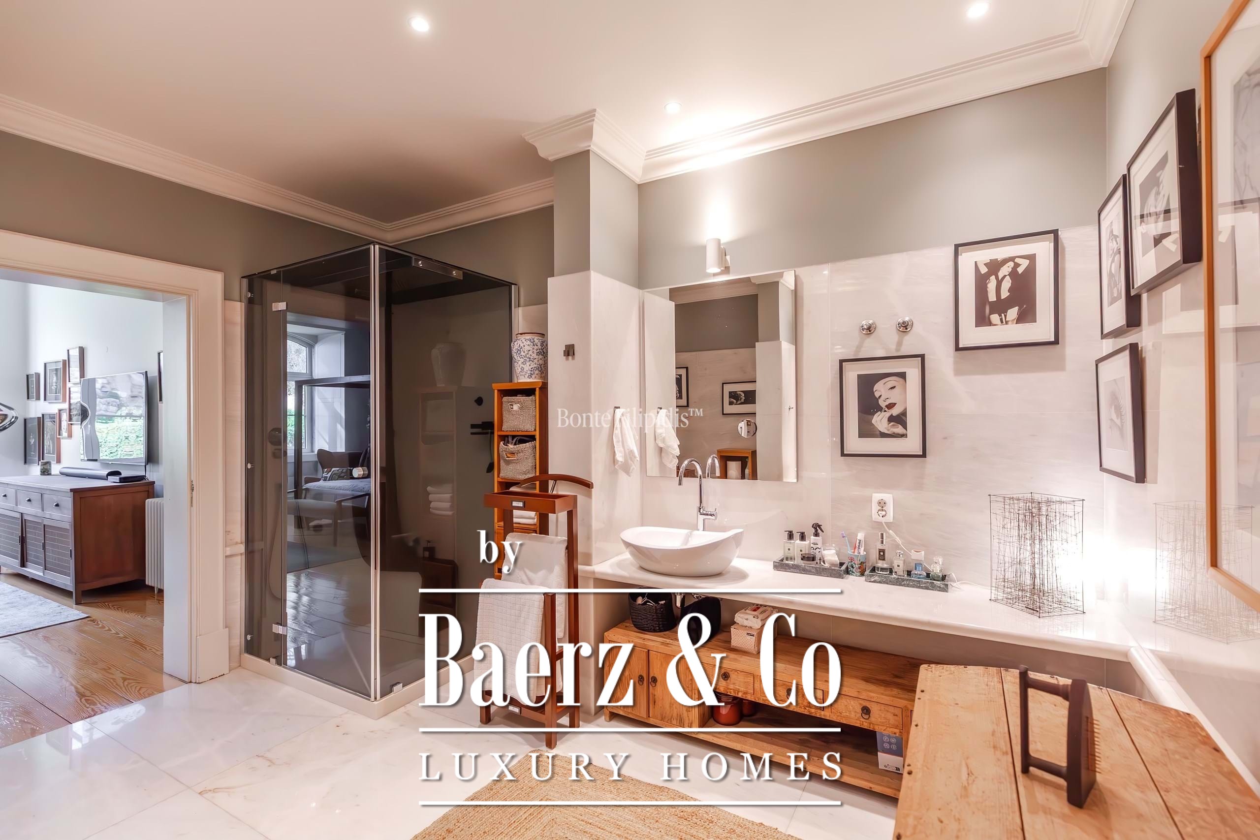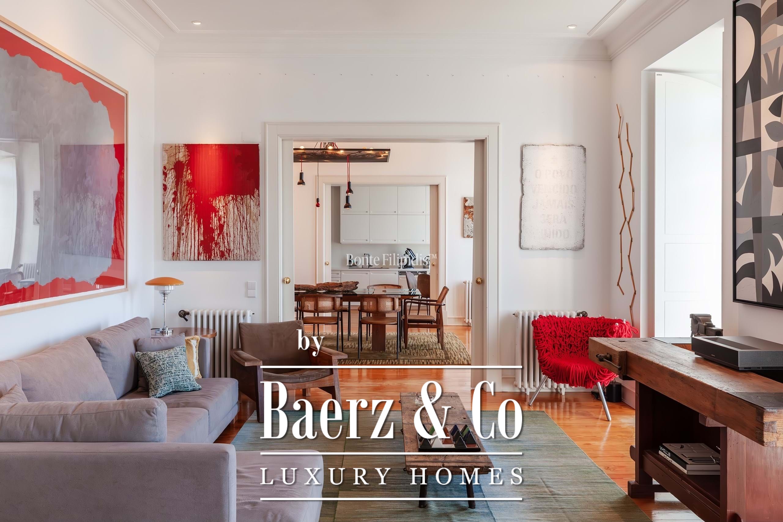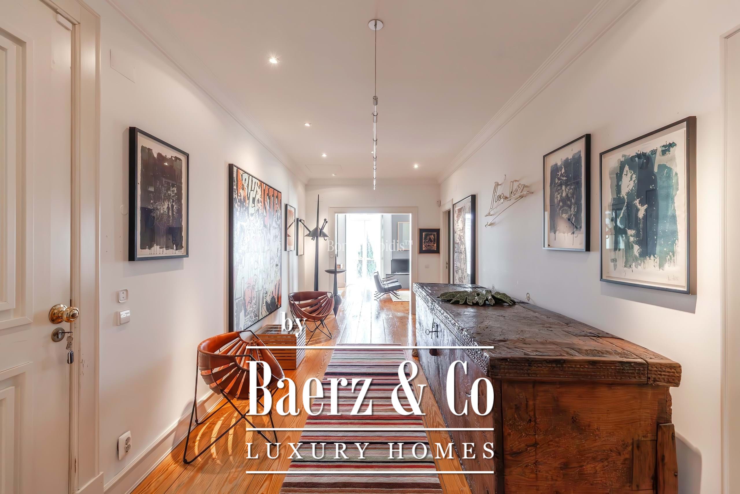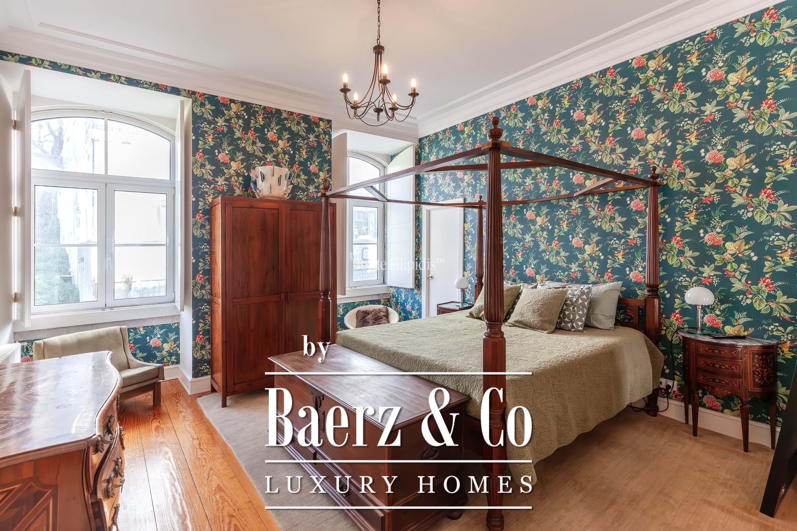 The private wing holds four bedrooms and five bathrooms, with the main suite offering an en suite bathroom and a walk-in closet. All bathrooms include underfloor heating, complemented by quality finishes and selected art pieces throughout the apartment. Modern amenities include air conditioning, a home automation system, an alarm, a 100-inch 4K projector, and two interior parking spaces, a rare advantage in this storied quarter. Features extend to a central sound system, laundry, and city, river, and garden views. Proximity to transport, restaurants, shopping, and cultural attractions completes this appealing city home. 4 bedroom apartment Santa Maria Maior merges historic charm with contemporary comfort and style.