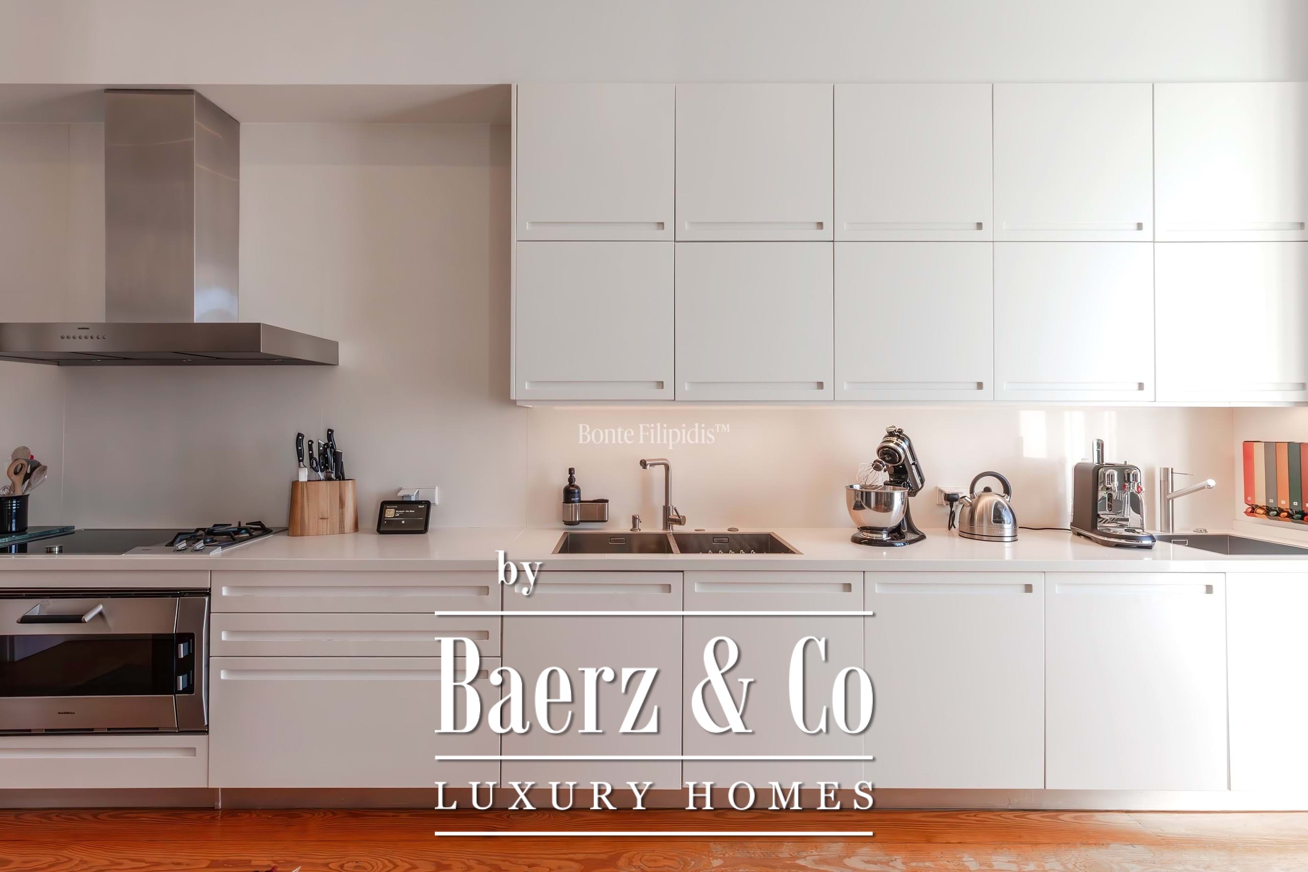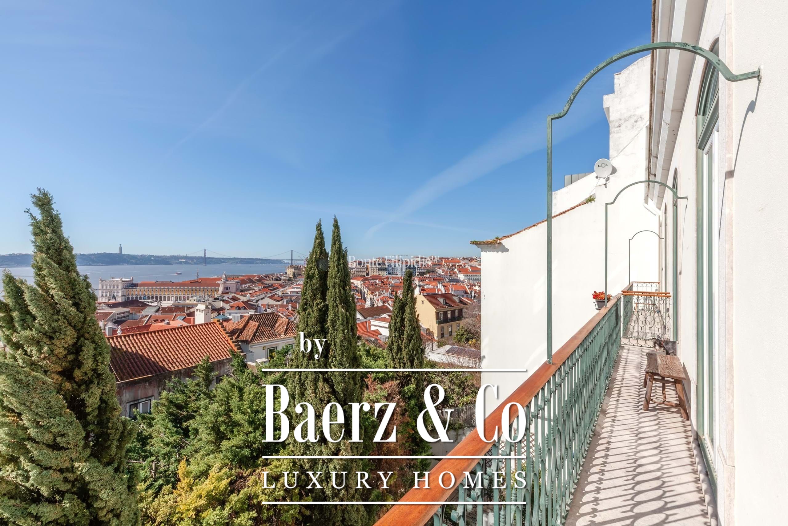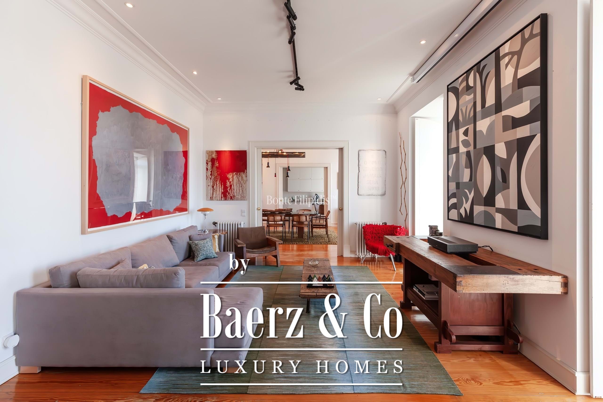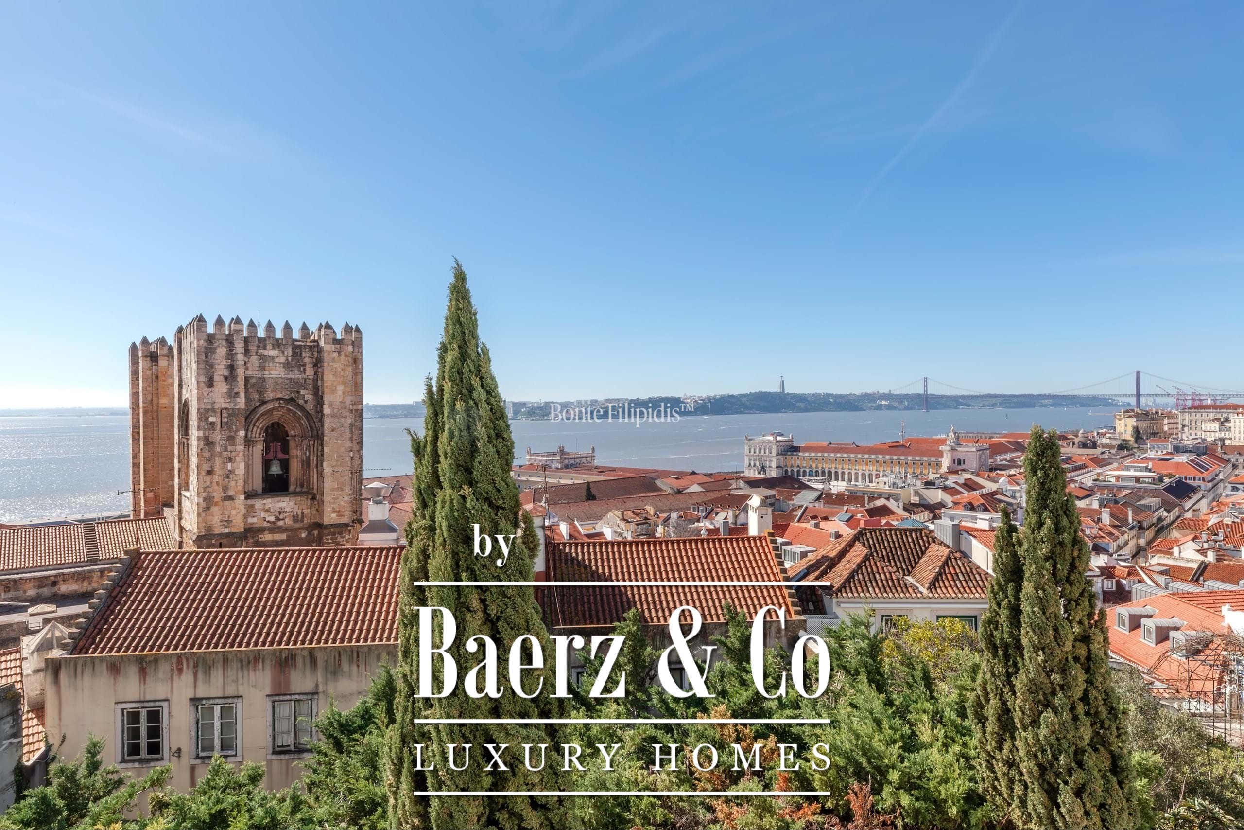 4 bedroom apartment Santa Maria Maior offers sophisticated living in the heart of Lisbon’s historic center. With a generous 353 m², this fully furnished residence balances natural light and panoramic views, including Lisbon Cathedral rooftops and the Tagus River. Seven south-facing windows illuminate spacious living and dining areas, with the 44.9 m² living room featuring a fireplace and high ceilings, and adjoining a 22.5 m² dining room. The 18 m² kitchen is fully equipped and seamlessly connected to social spaces, while a 12 m² office provides a private workspace.