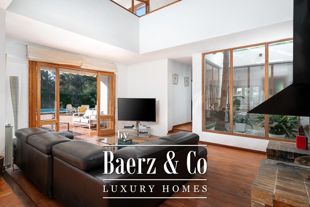 This Mediterranean villa Santa Ponça stands just minutes from the marina, set on a generous 1,224 m² plot. The constructed area reaches 330 m² with approximately 229 m² of living space arranged over two calm, purposeful floors. Across the ground level, a spacious living room centres on an elegant wood-burning fireplace, while a modern kitchen with dining area and separate entrance complements daily rhythms. Four bedrooms, including an en suite, and two well-finished bathrooms offer privacy and functionality.