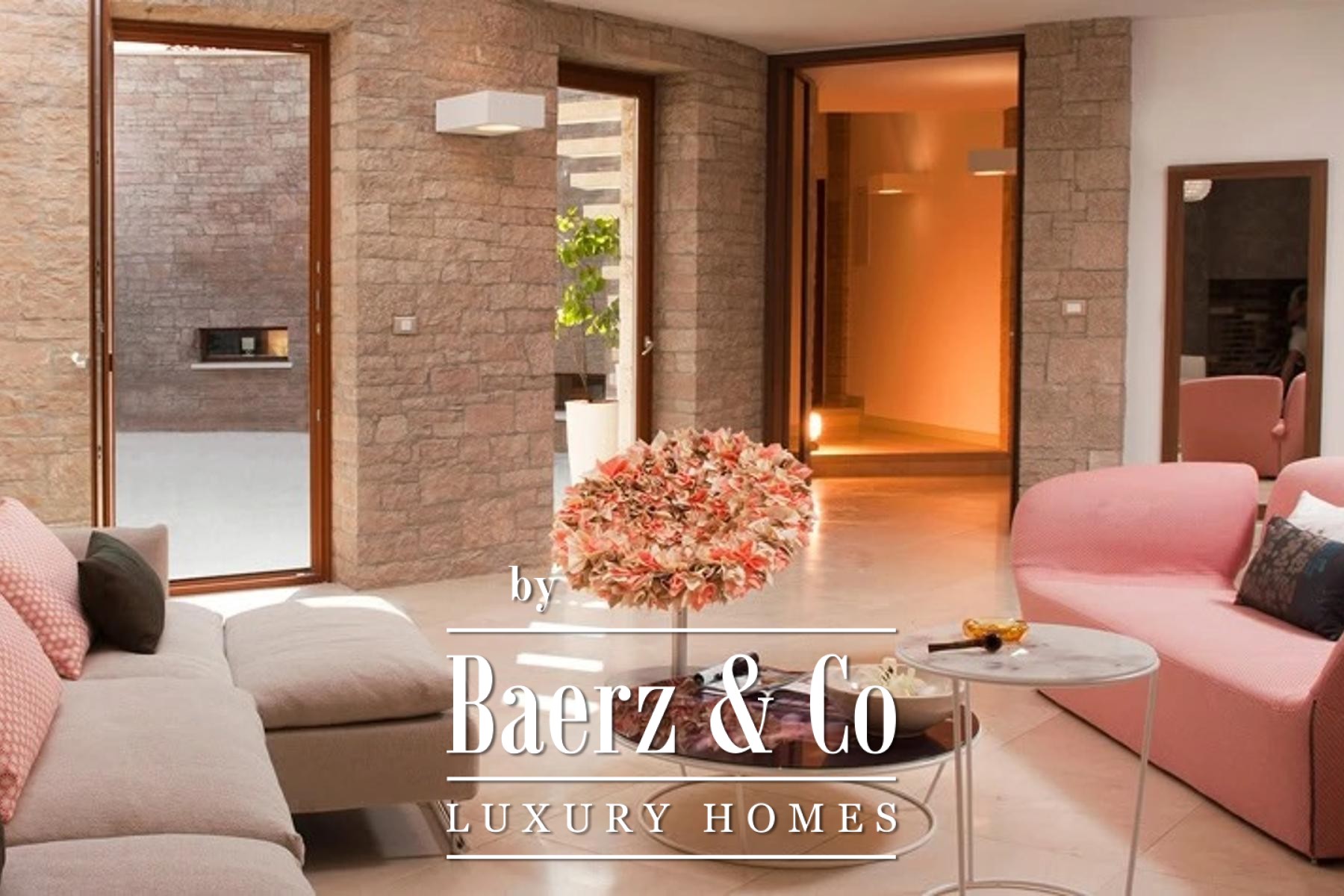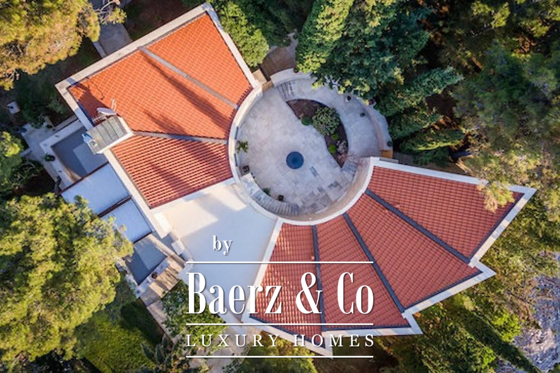 Brač, Povlja, luxury villa in an oasis of peace 35 meters from the sea.On the quiet and picturesque northeastern coast of Brač, one of the most beautiful Dalmatian islands, there is an exceptional villa that combines modern luxury, comfort and the natural beauty of the Mediterranean landscape.On a plot of 4106 m2, the villa has 576 m2 of living space, with two garages and a separate staff house, which ensures complete privacy and practicality for all the needs of the owner and guests.The villa was built with special attention to detail and the use of the highest quality materials, and its modern, yet unobtrusive design fits perfectly into the natural ambiance of the island. Its location on the top of a hill offers a beautiful panoramic view of the sea and the surrounding landscape, while at the same time being just a few steps away, only 35 meters from the sea.The floral motif, carefully incorporated into the architectural and decorative elements, gives the villa a recognizable character and a refined Mediterranean atmosphere.The villa is surrounded by a private garden with lush vegetation and colorful flowers, creating an oasis of peace and an ideal place for relaxation, morning coffee or evening gatherings under the starry sky. A spacious terrace stretches along the south side