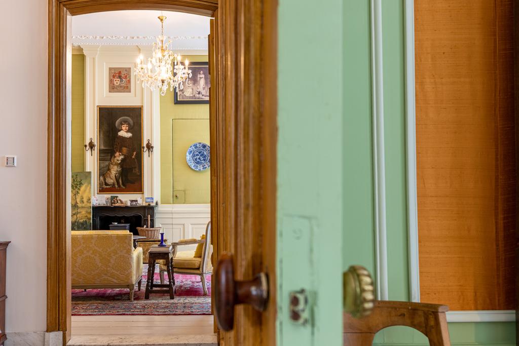 The interior is rich in period details, including ornate fireplaces, damask wall coverings, refined staircases and bespoke finishes.