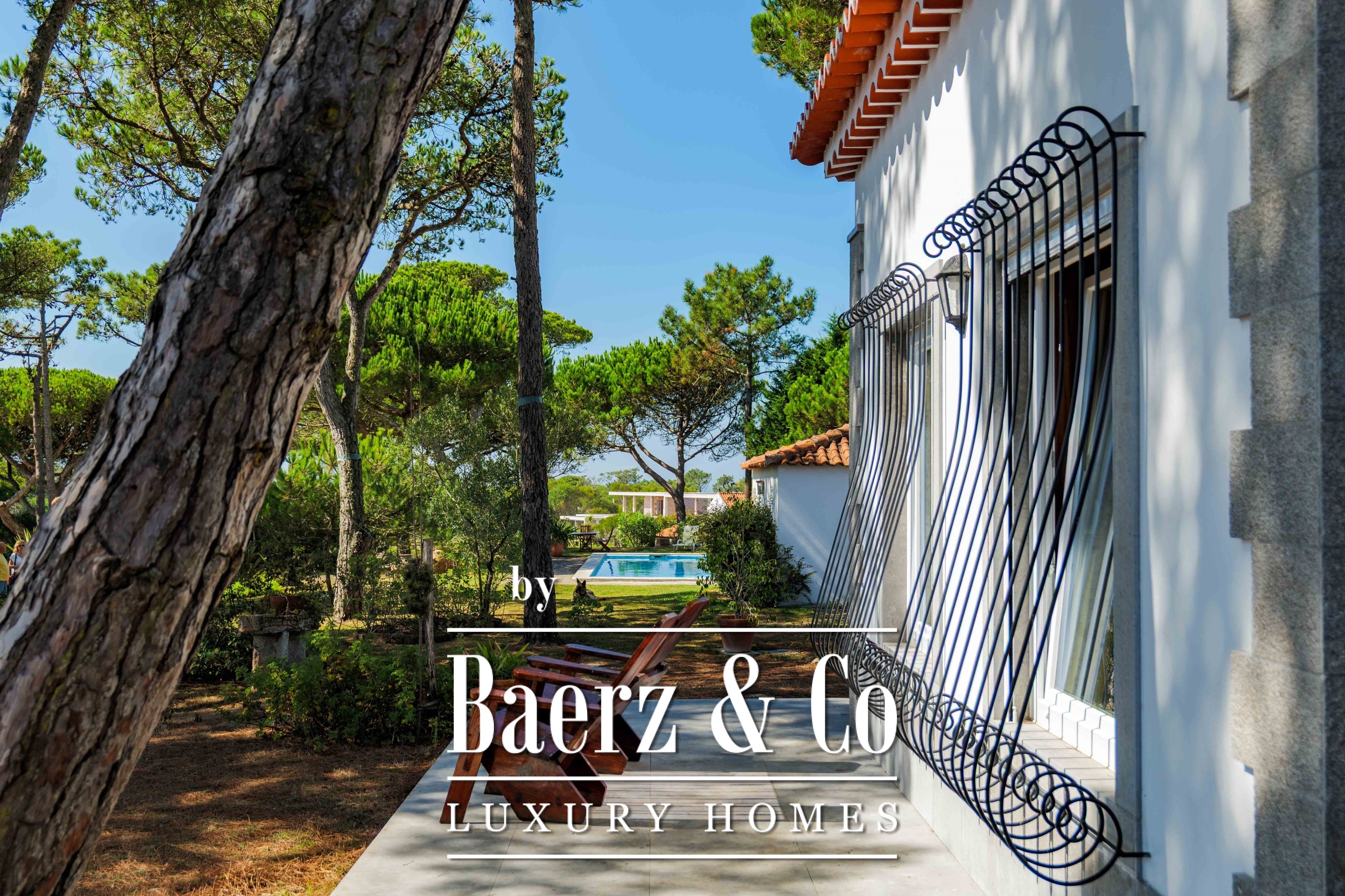 Villa Sintra with garden and sea views blends twentieth-century Portuguese architecture with contemporary sophistication. Set on 2,341 m² of landscaped gardens just five minutes from Praia do Magoito, the main house and guest accommodation are surrounded by mature pine trees under spacious skies.