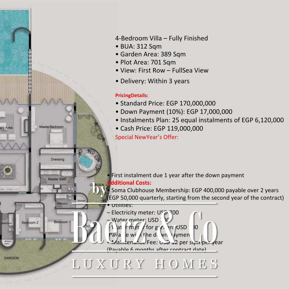 Each room is designed to draw in the natural light, reflecting a sensibility for both beauty and function. The experience of daily life unfolds across generous balconies, tranquil patios, and serene garden spaces. The private swimming pool provides a place for relaxation, set against the open sky and endless blue horizon, while carefully planned parking ensures seamless arrival and departure.