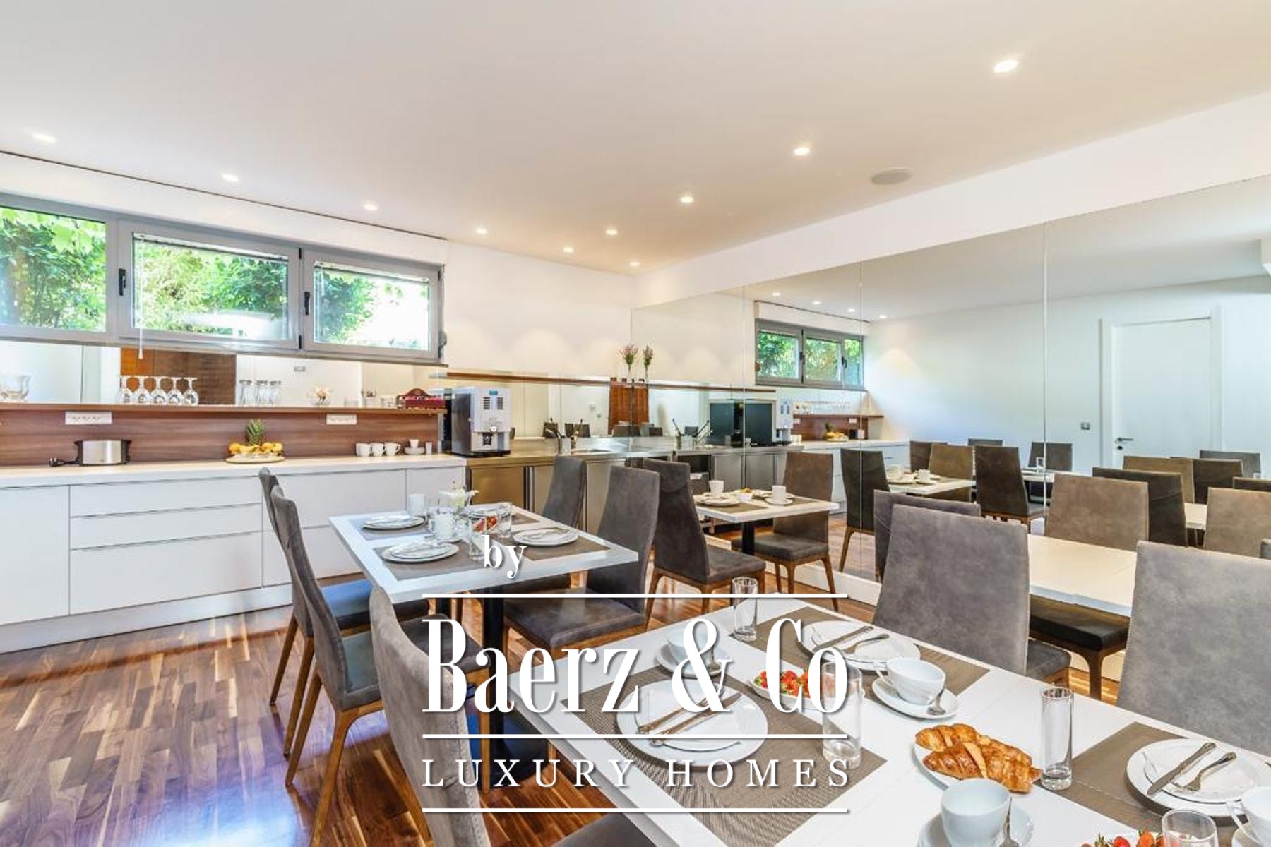 Amenities include a reception, a dedicated restaurant and kitchen, Finnish sauna, jacuzzi, gym, and thoughtful storage and laundry facilities. There are 3 guest and staff toilets, 6 outdoor parking spaces, and 4 garage spaces. The outdoor pool and landscaped garden cover a combined 494 m², creating a tranquil haven for relaxation.
