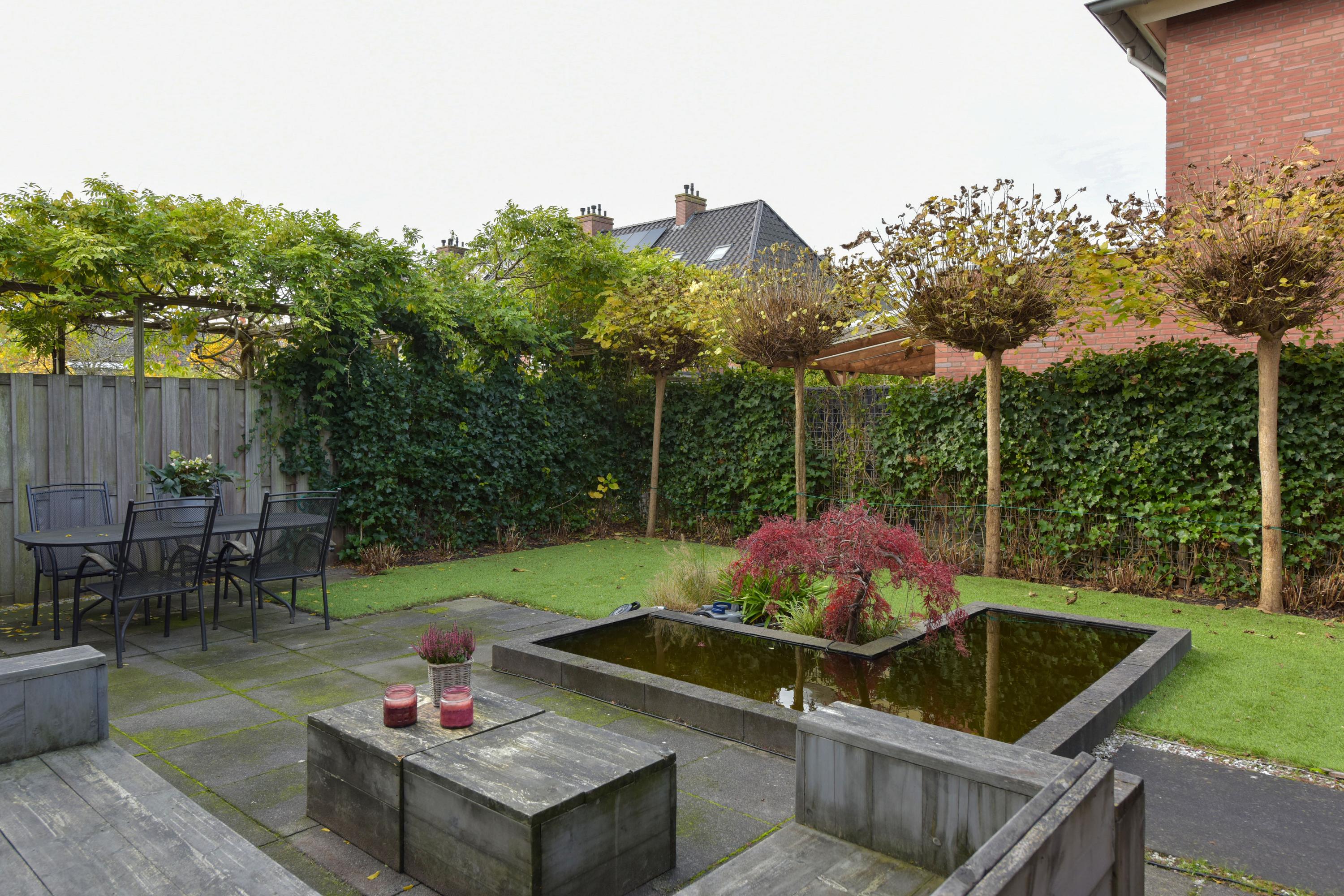 * Broad, sunny garden with terraces, pond, back entrance, and space for a jacuzzi