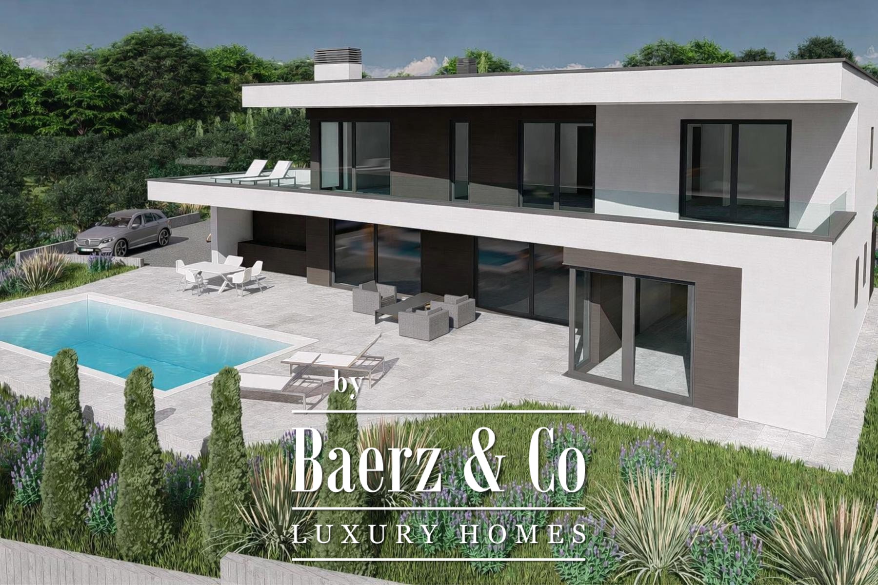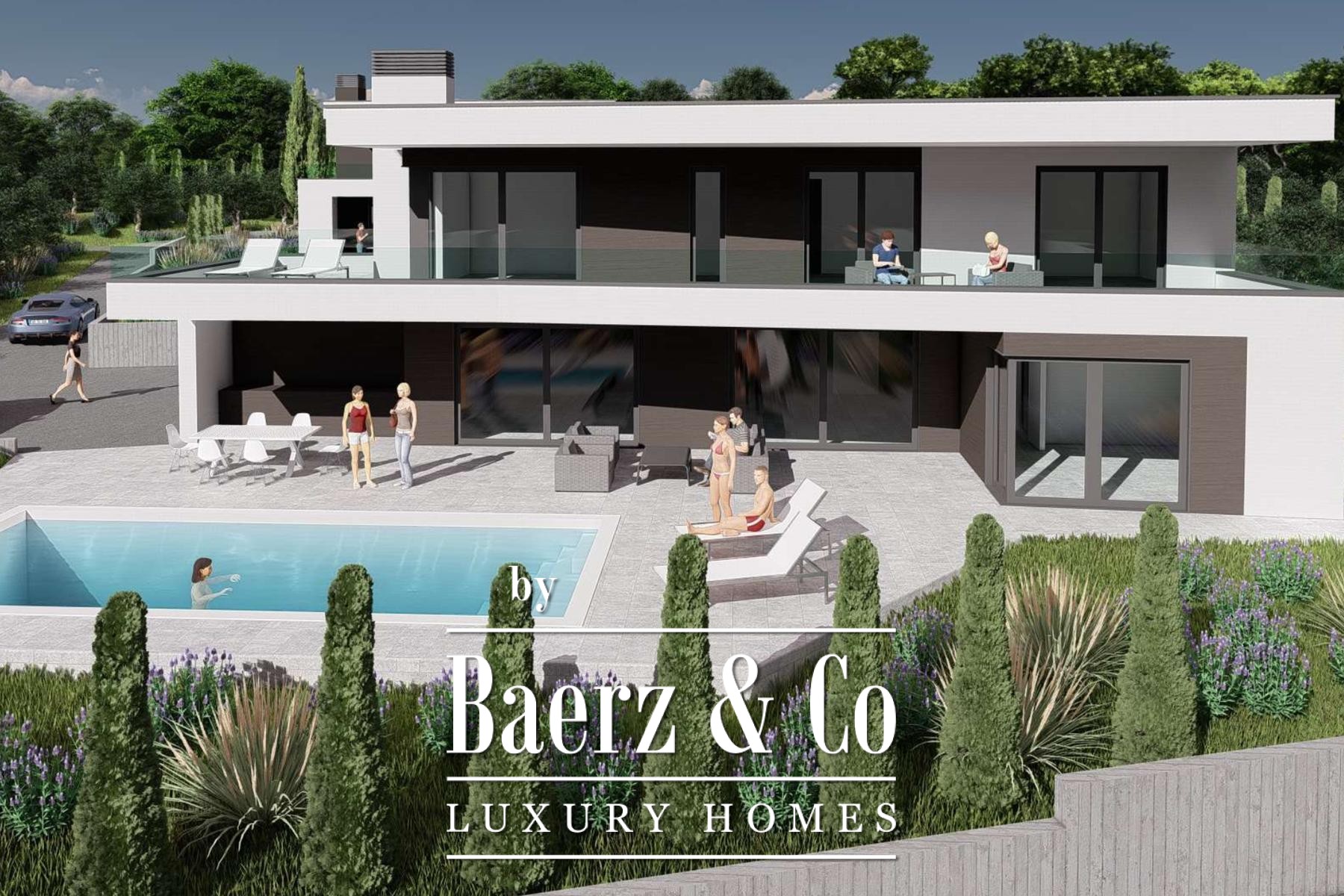 Modern villa Umag draws immediate attention with its commanding position, promising unobstructed panoramic sea views and a genuine connection to the Istrian landscape. This contemporary residence offers 222 m² of sophisticated living space across two levels, thoughtfully curated on a generous 815 m² plot.